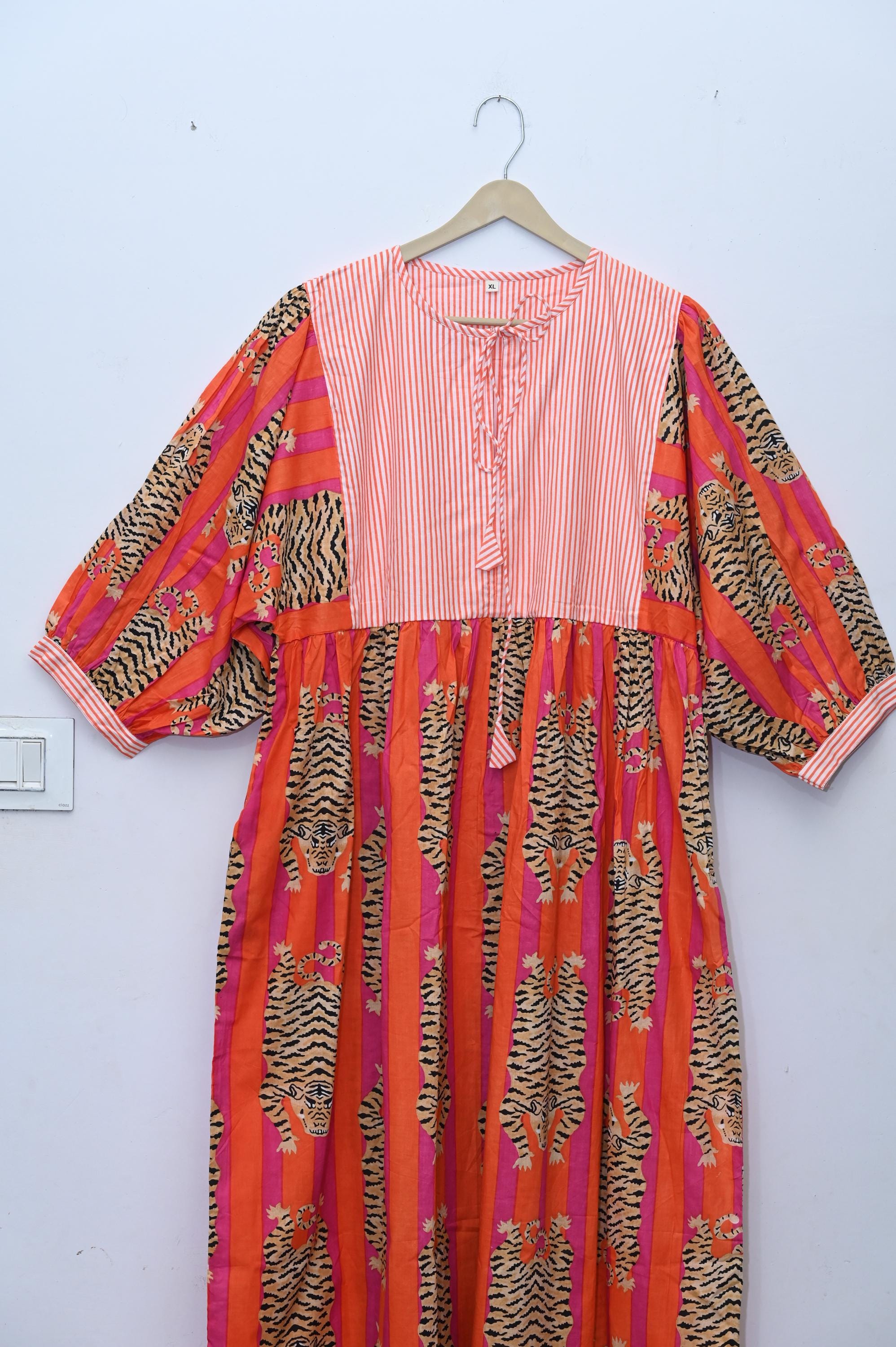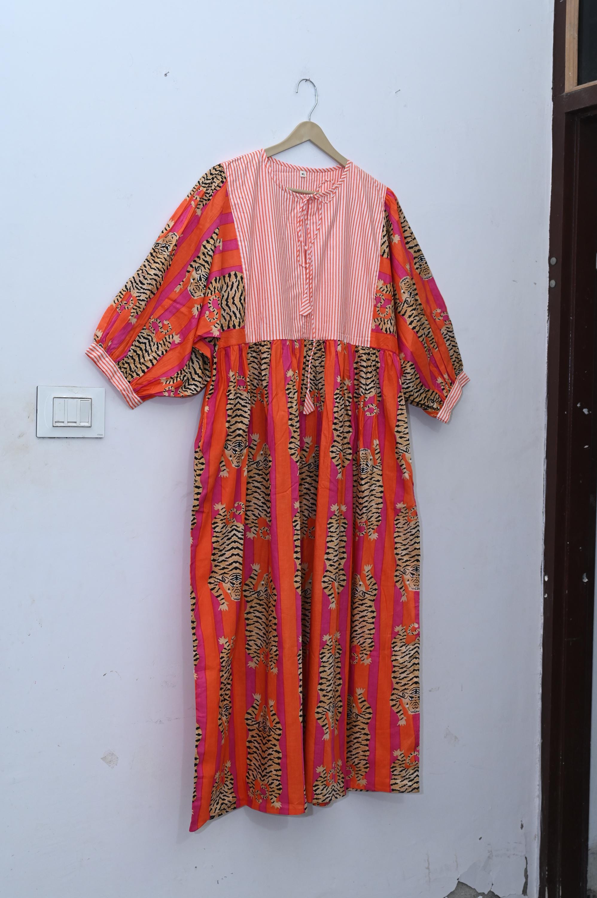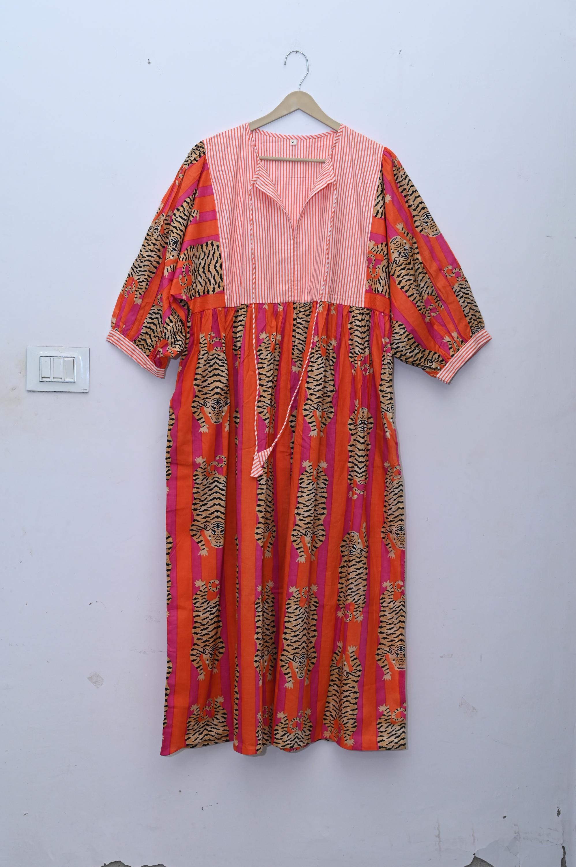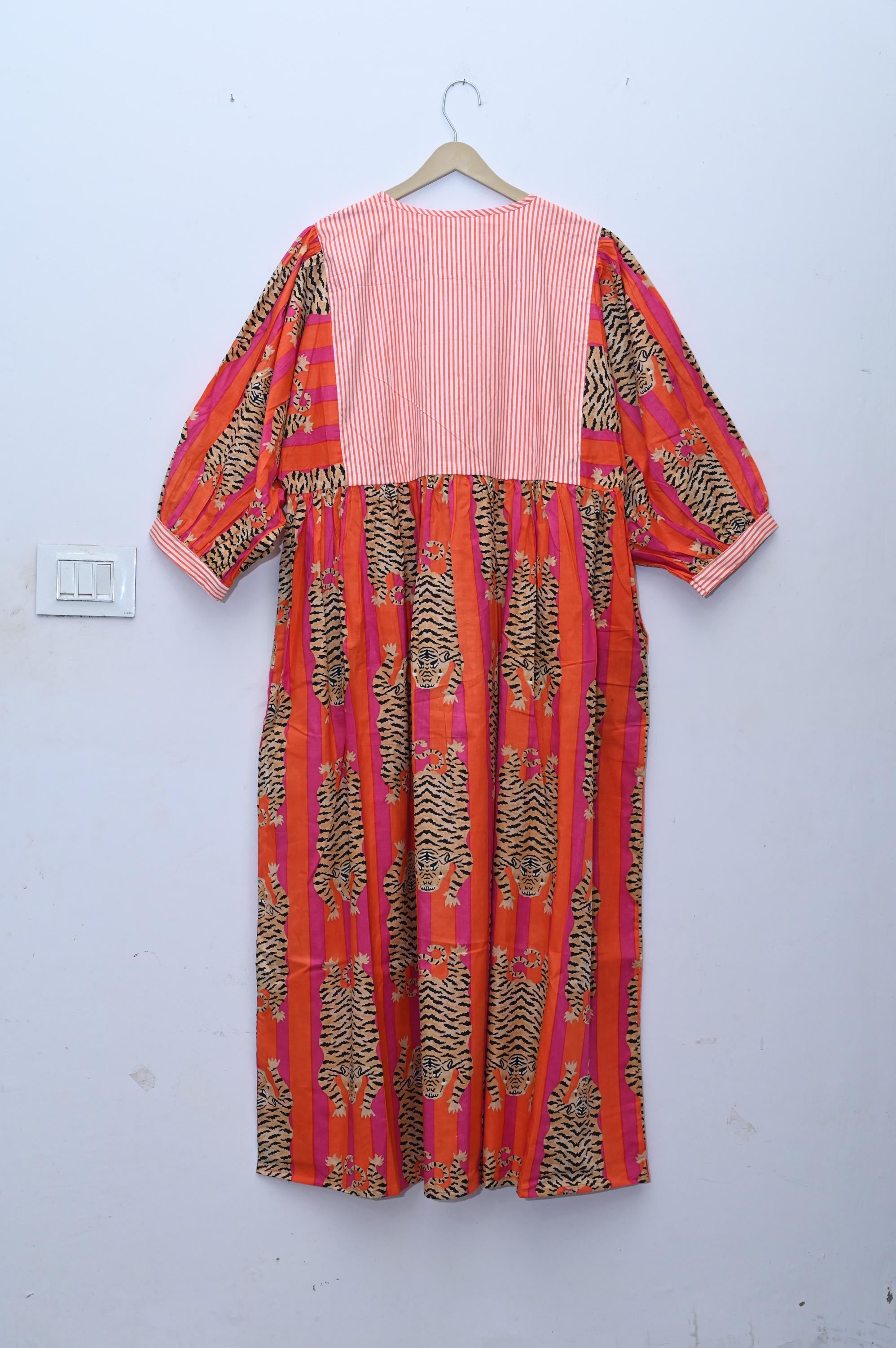 Handmade Floral Cotton Midi Dress: Bohemian Summer Tunic