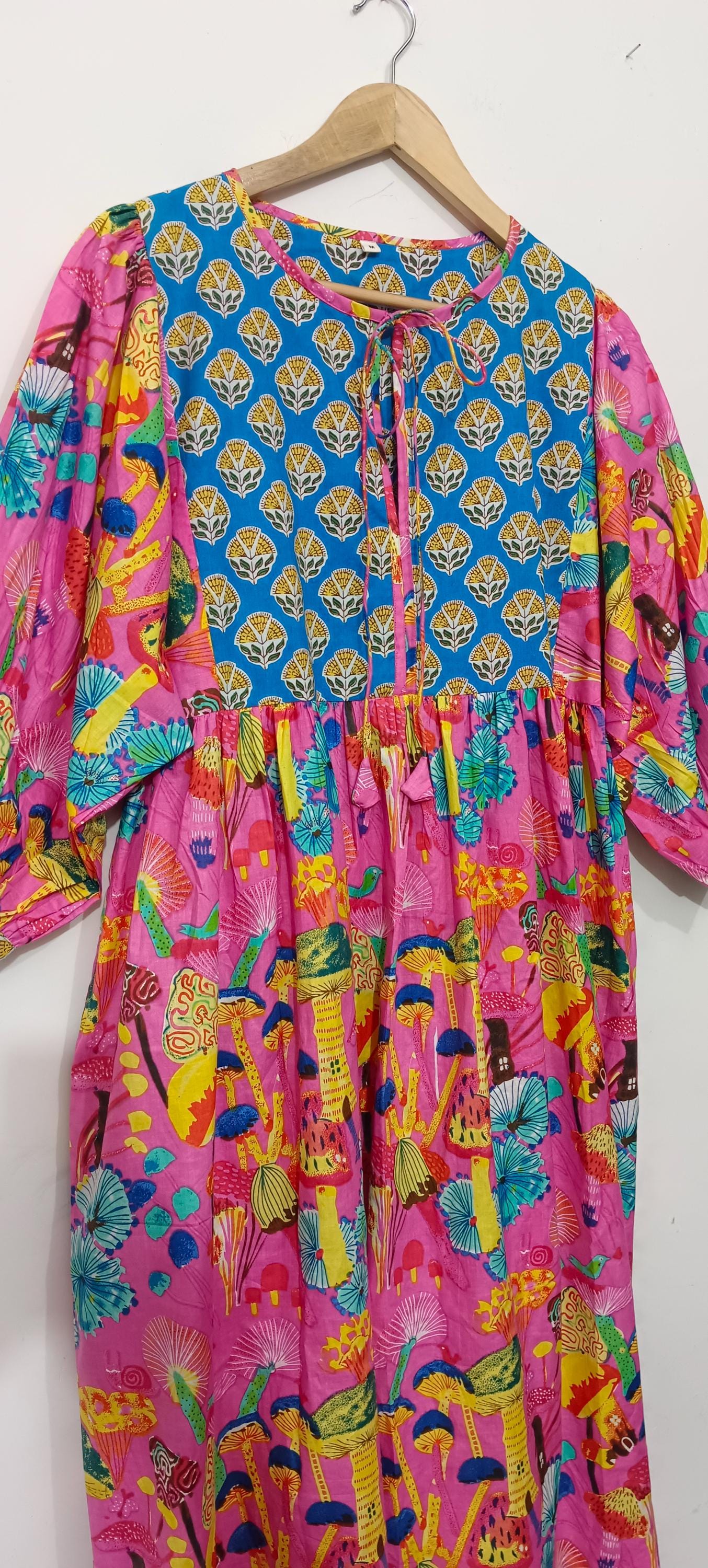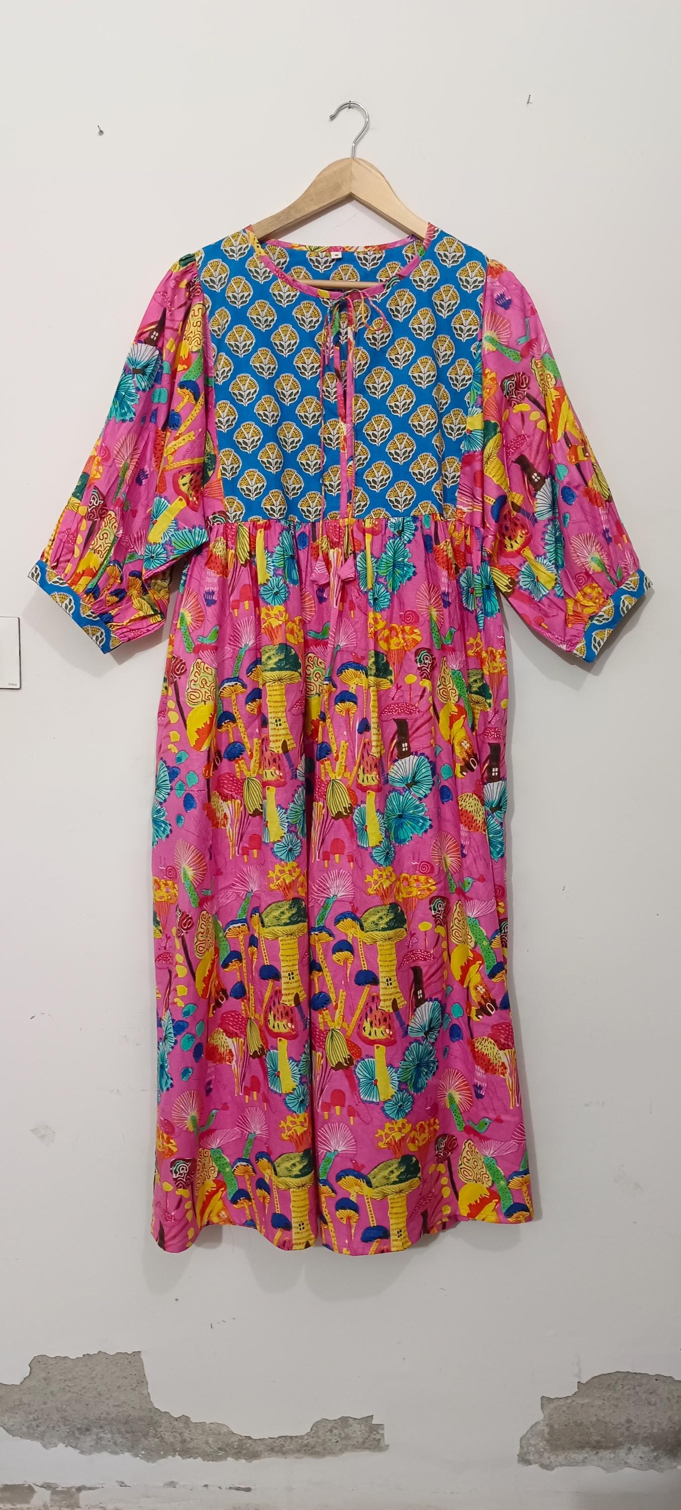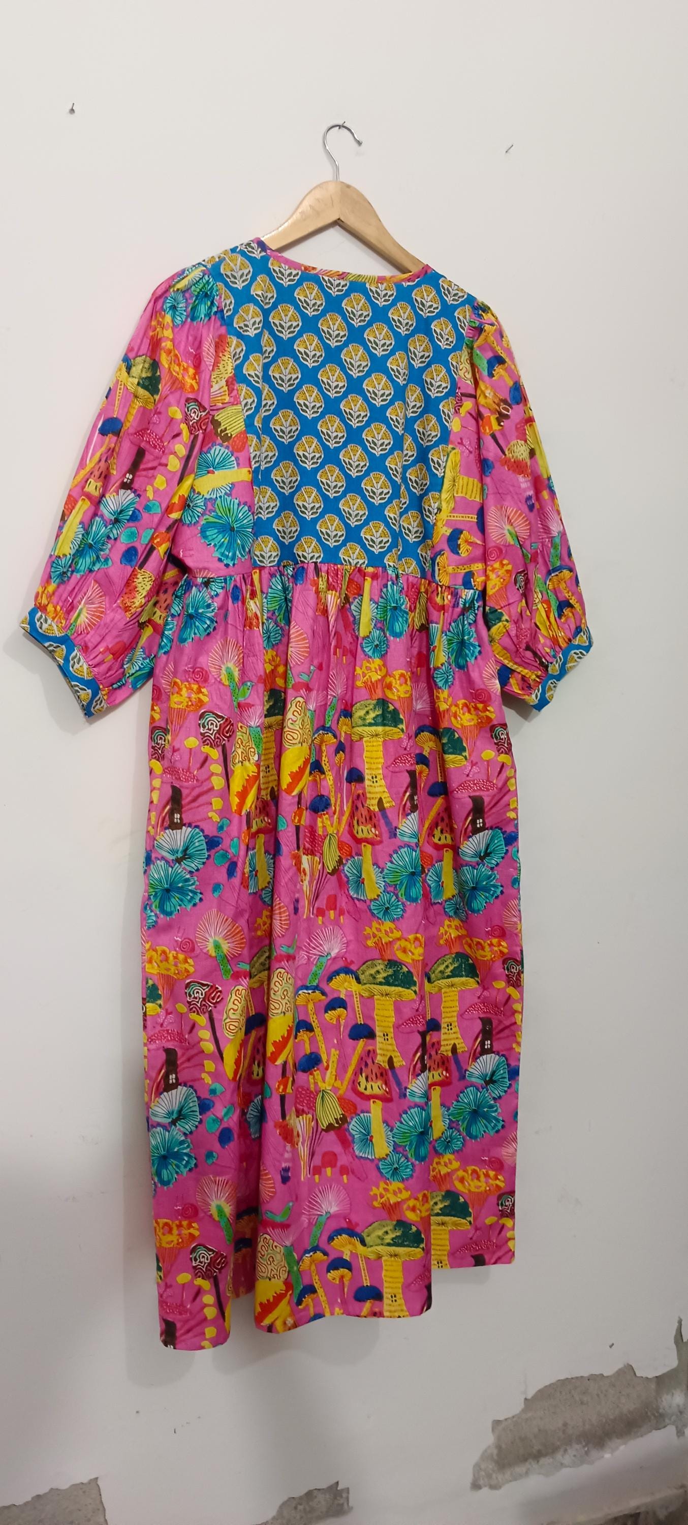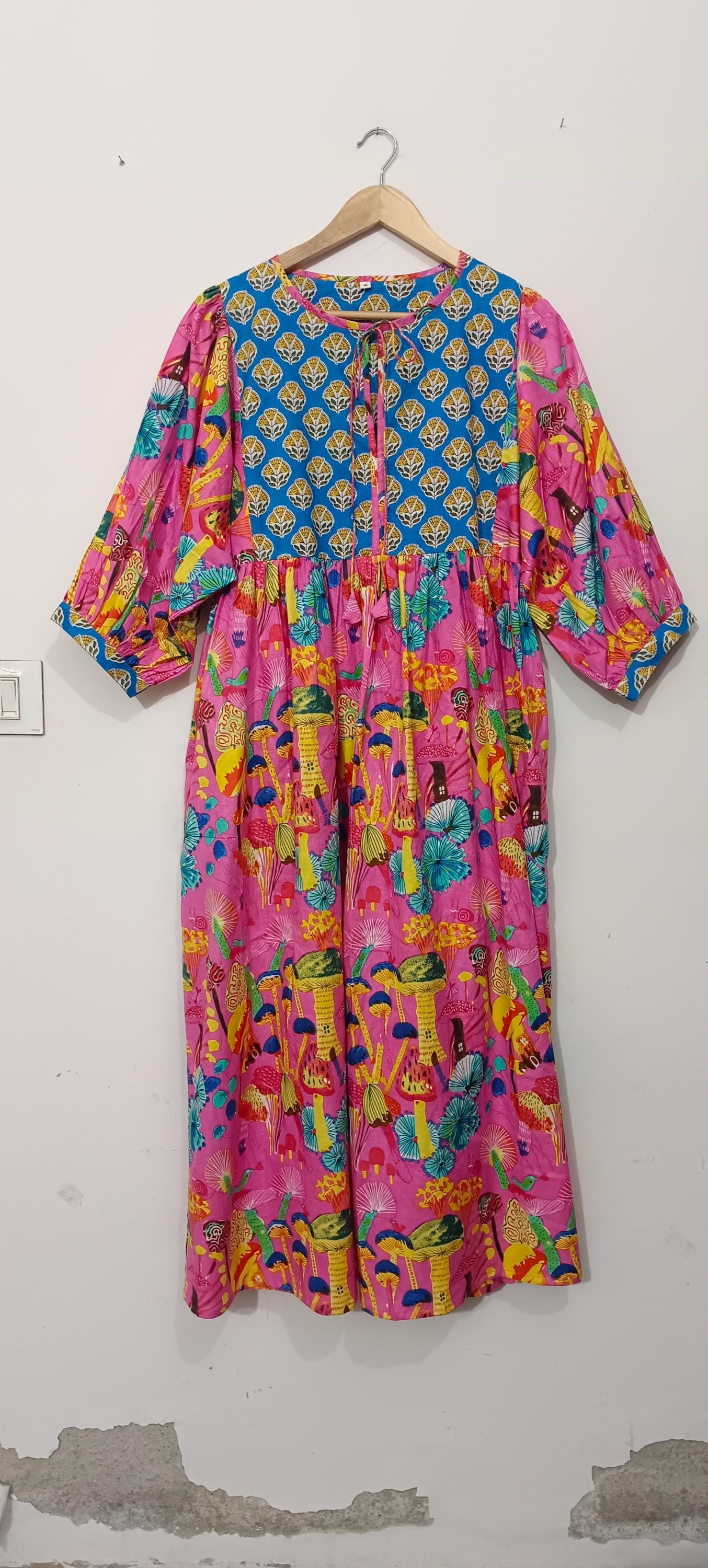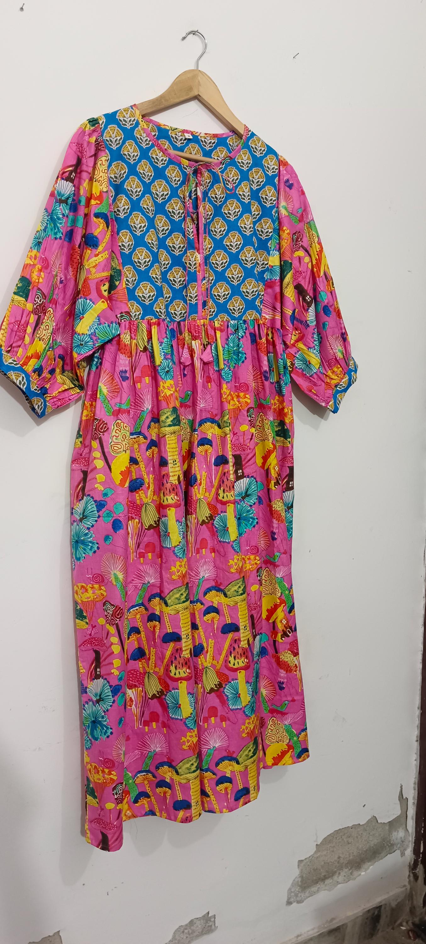 ❤ Floral Handmade Midi Dress, Bohemian Cotton Dress, Dresses for Women, Gift For Your Loved short tunics String Closer, Flower Cotton Dress