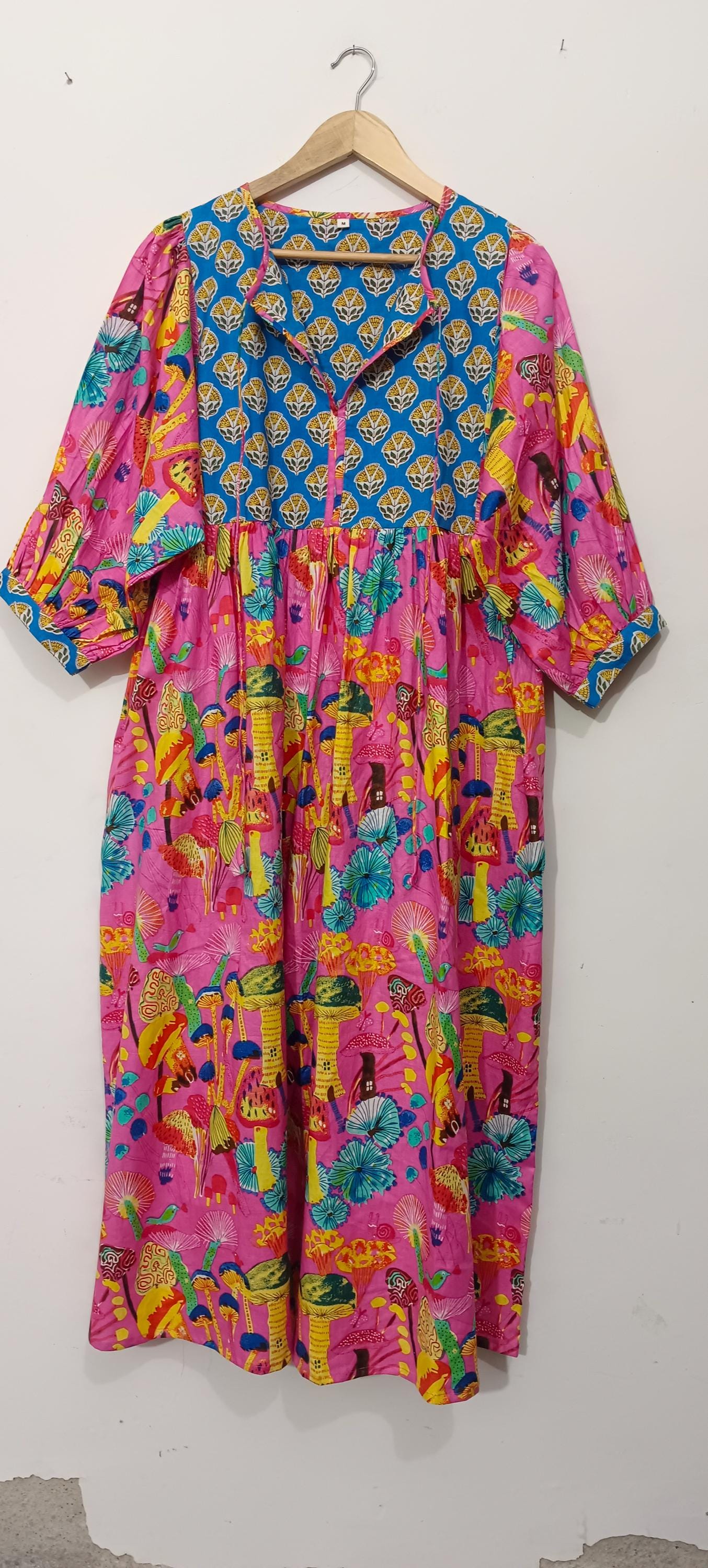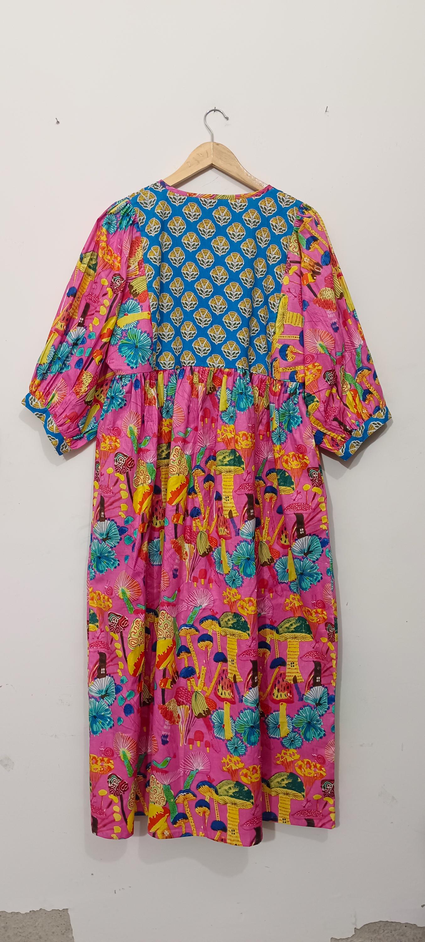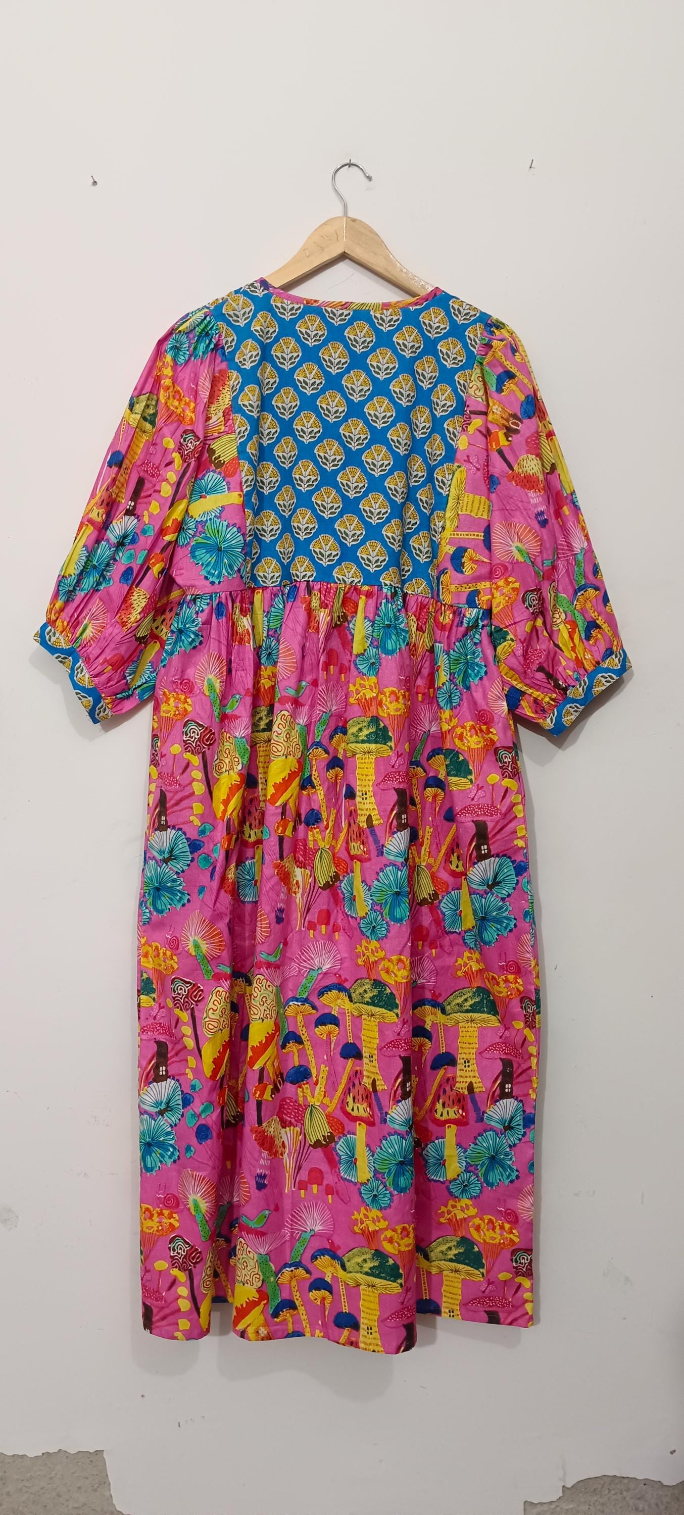 Handmade Floral Cotton Midi Dress: Bohemian Summer Tunic