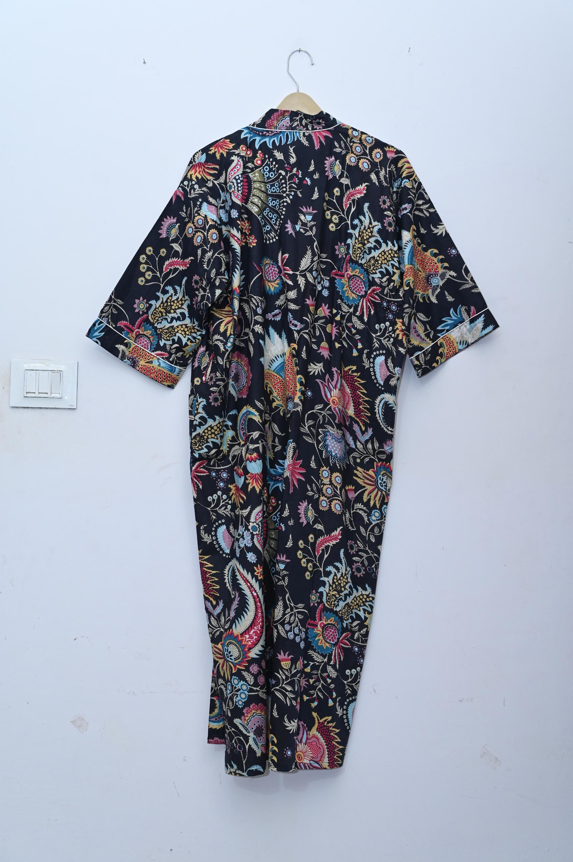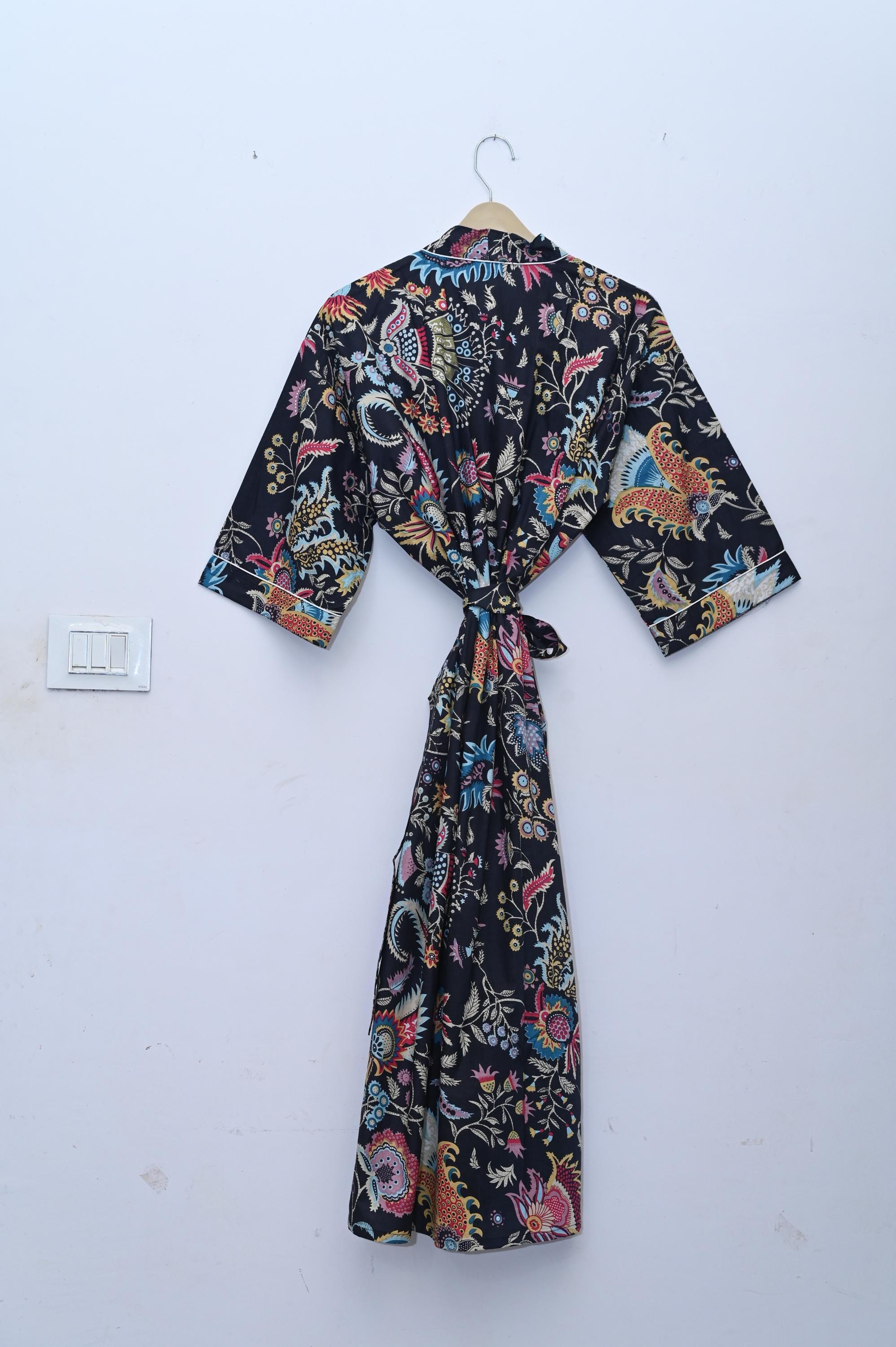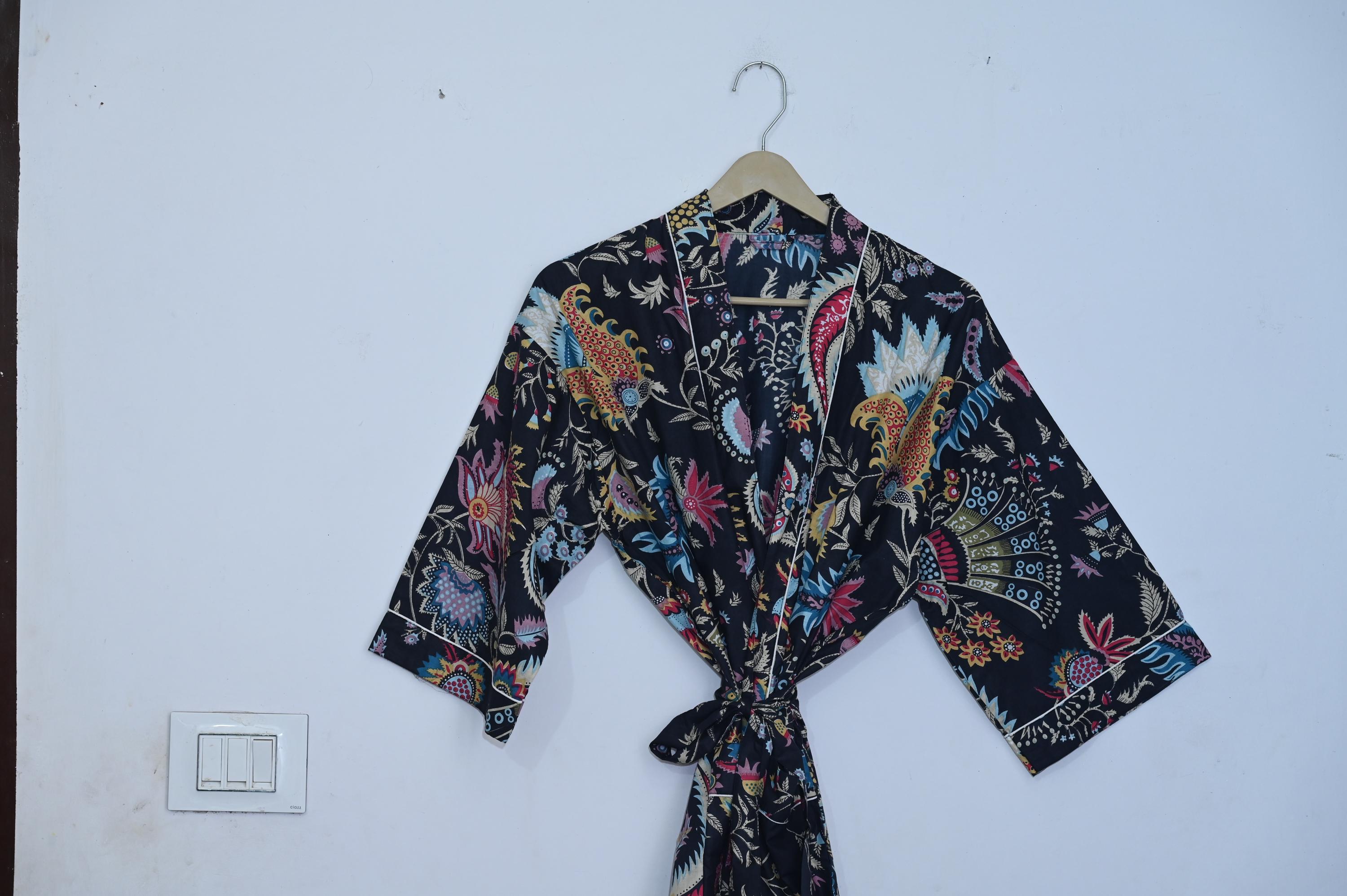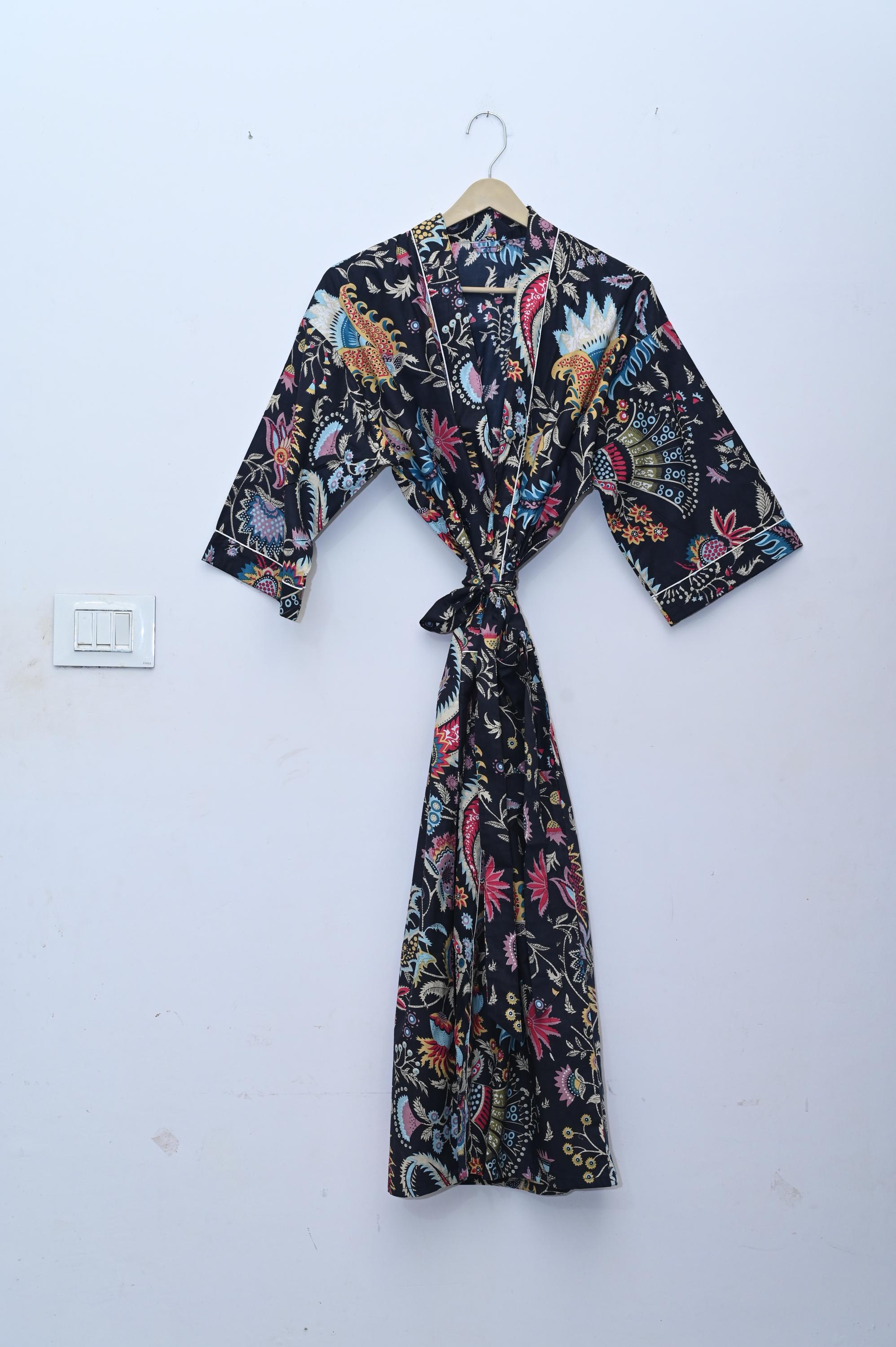 Cotton Kimono Robes Dressing Gown,Block Print Bridesmaid, Summer Nightwear,One Size