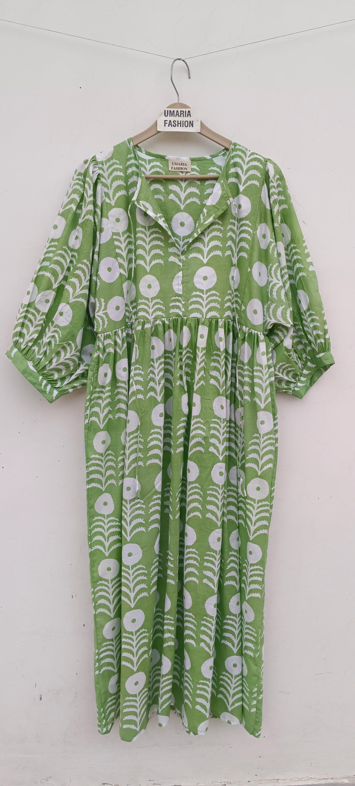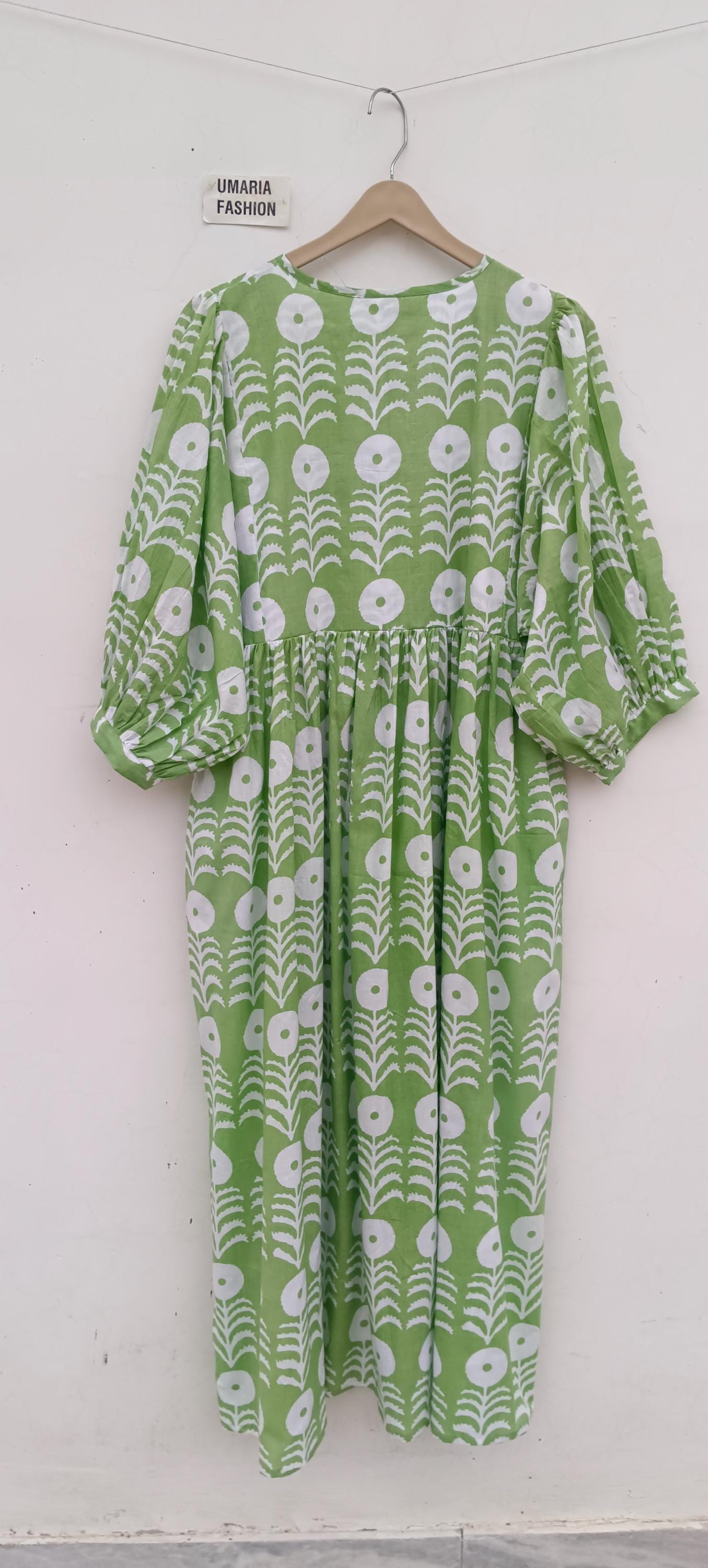 Handmade Floral Cotton Midi Dress, Bohemian Style