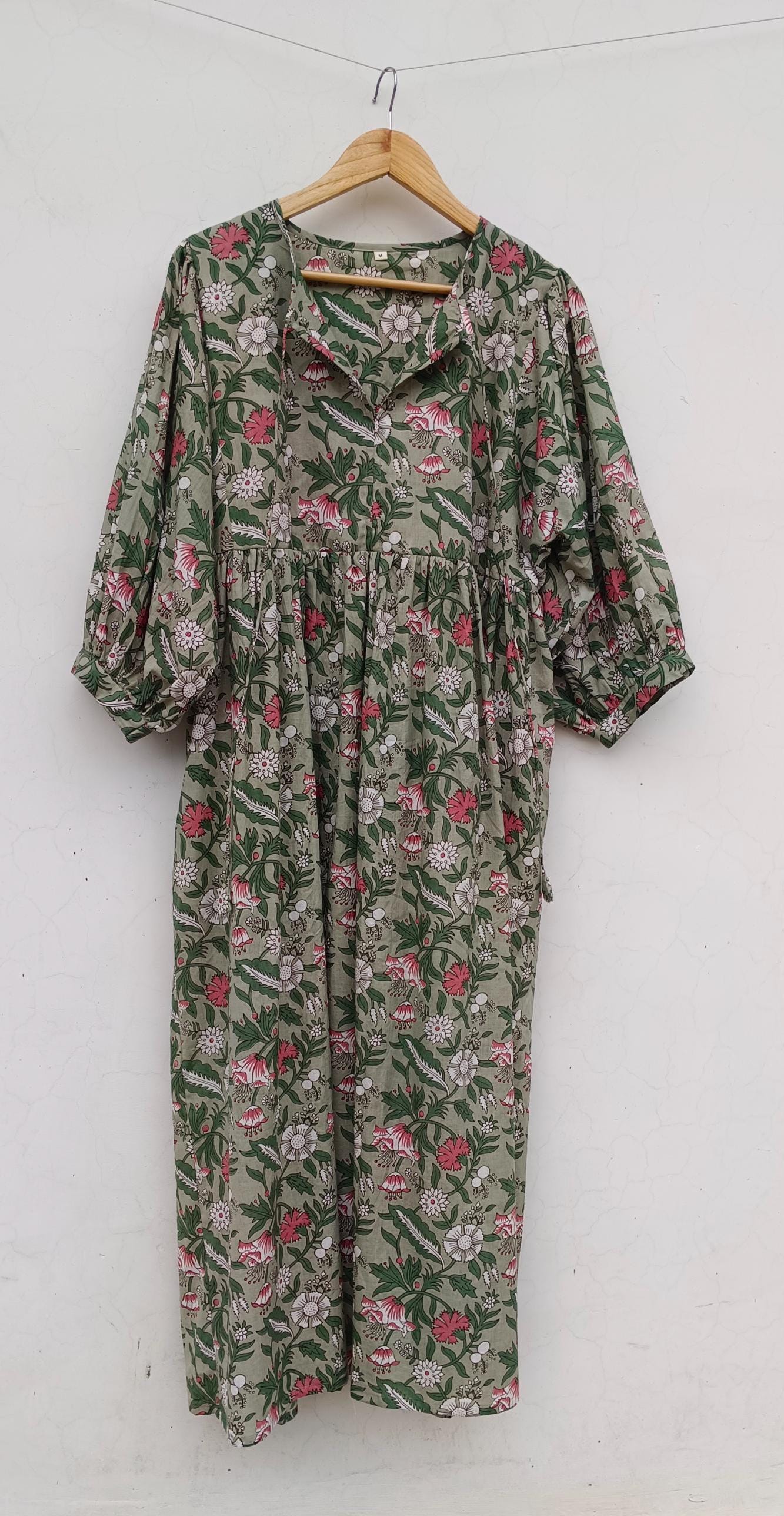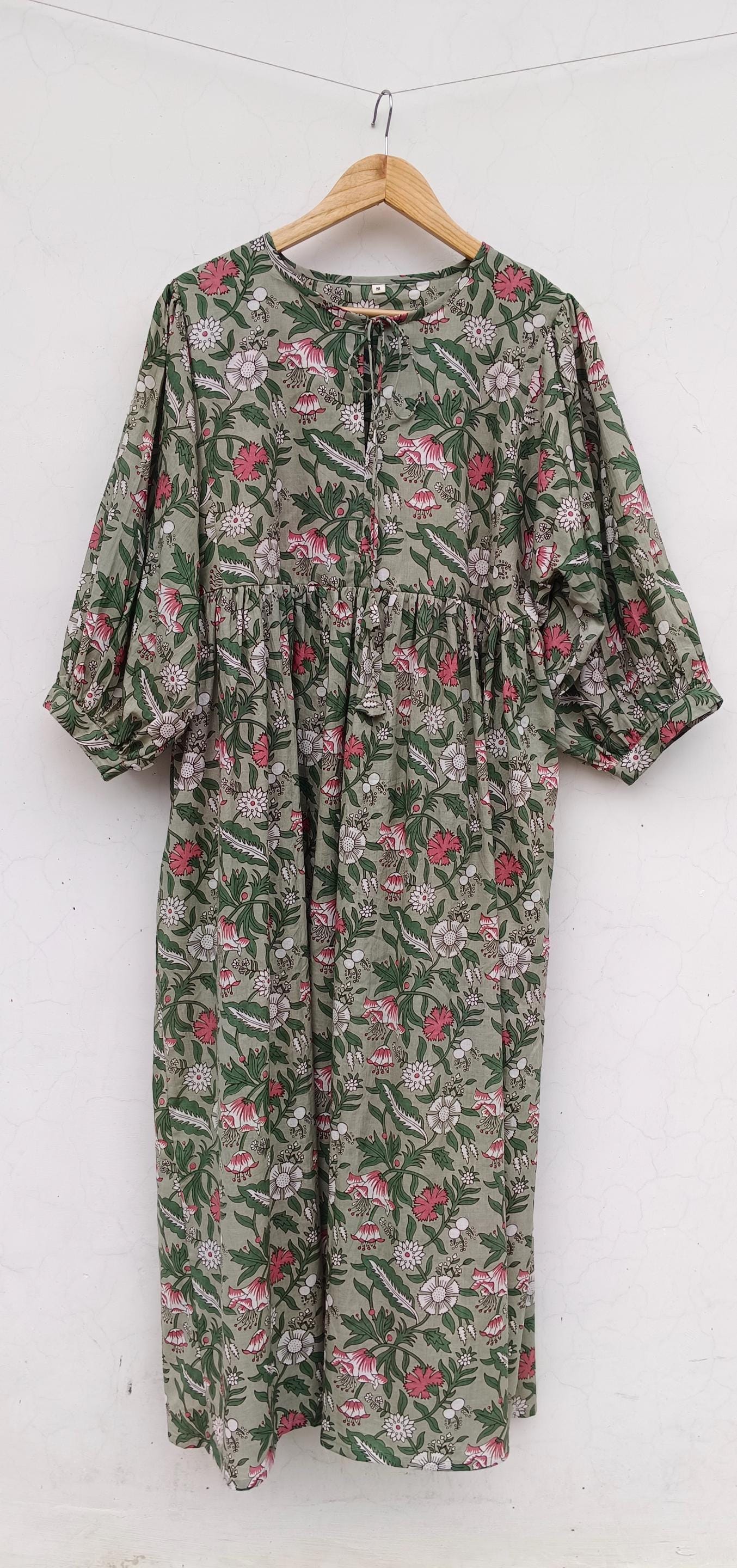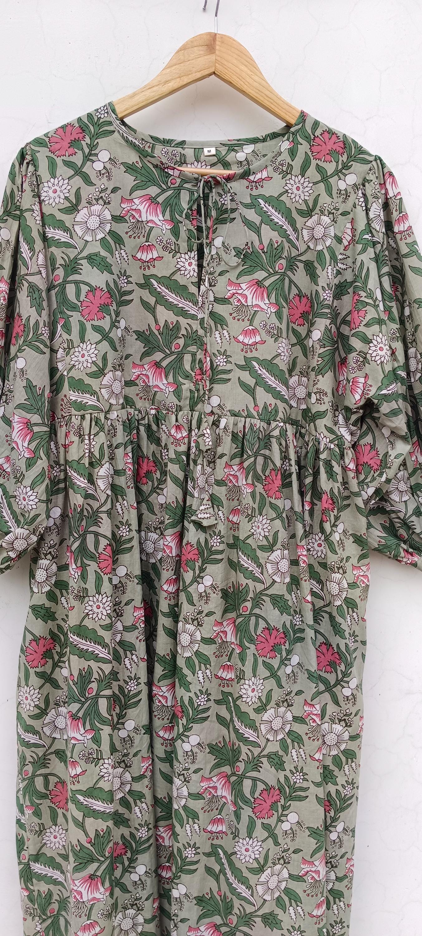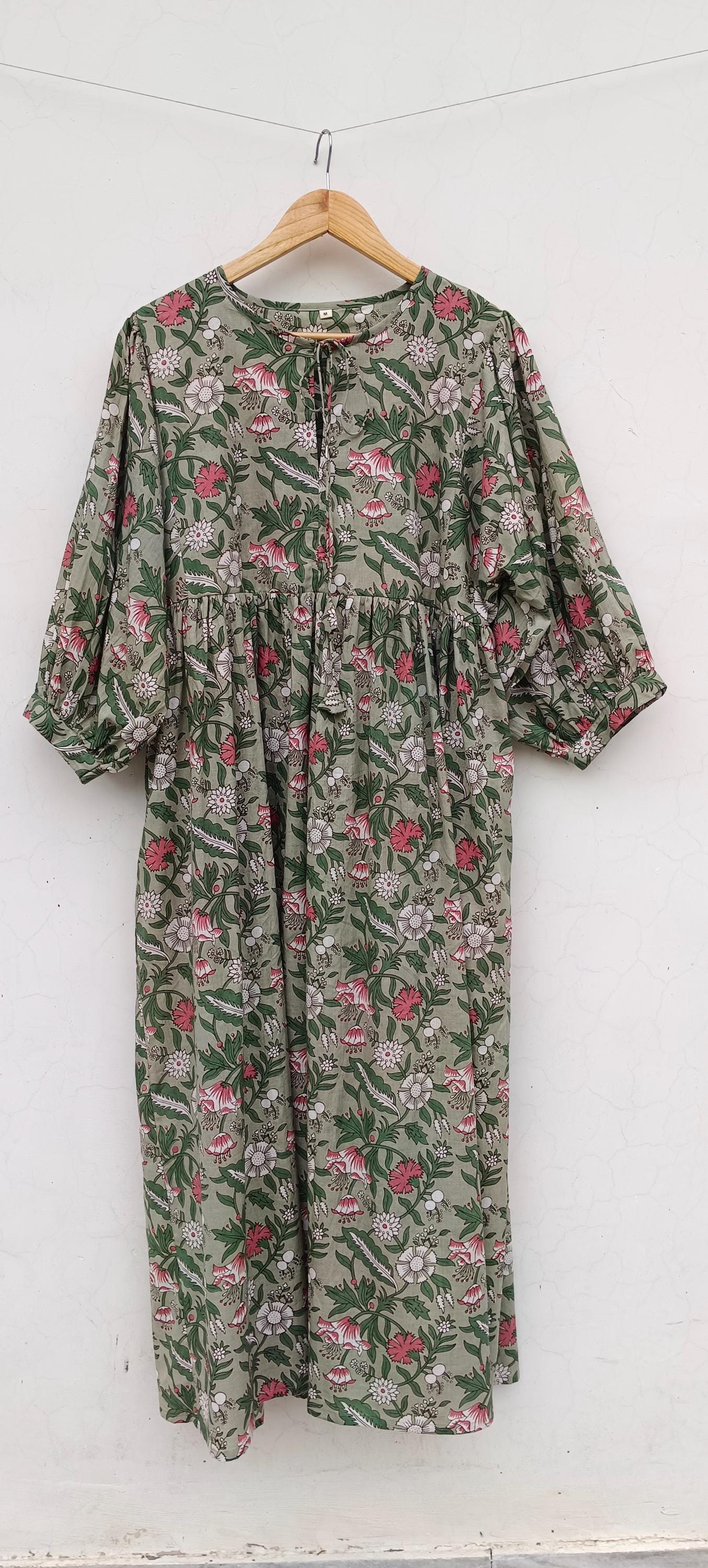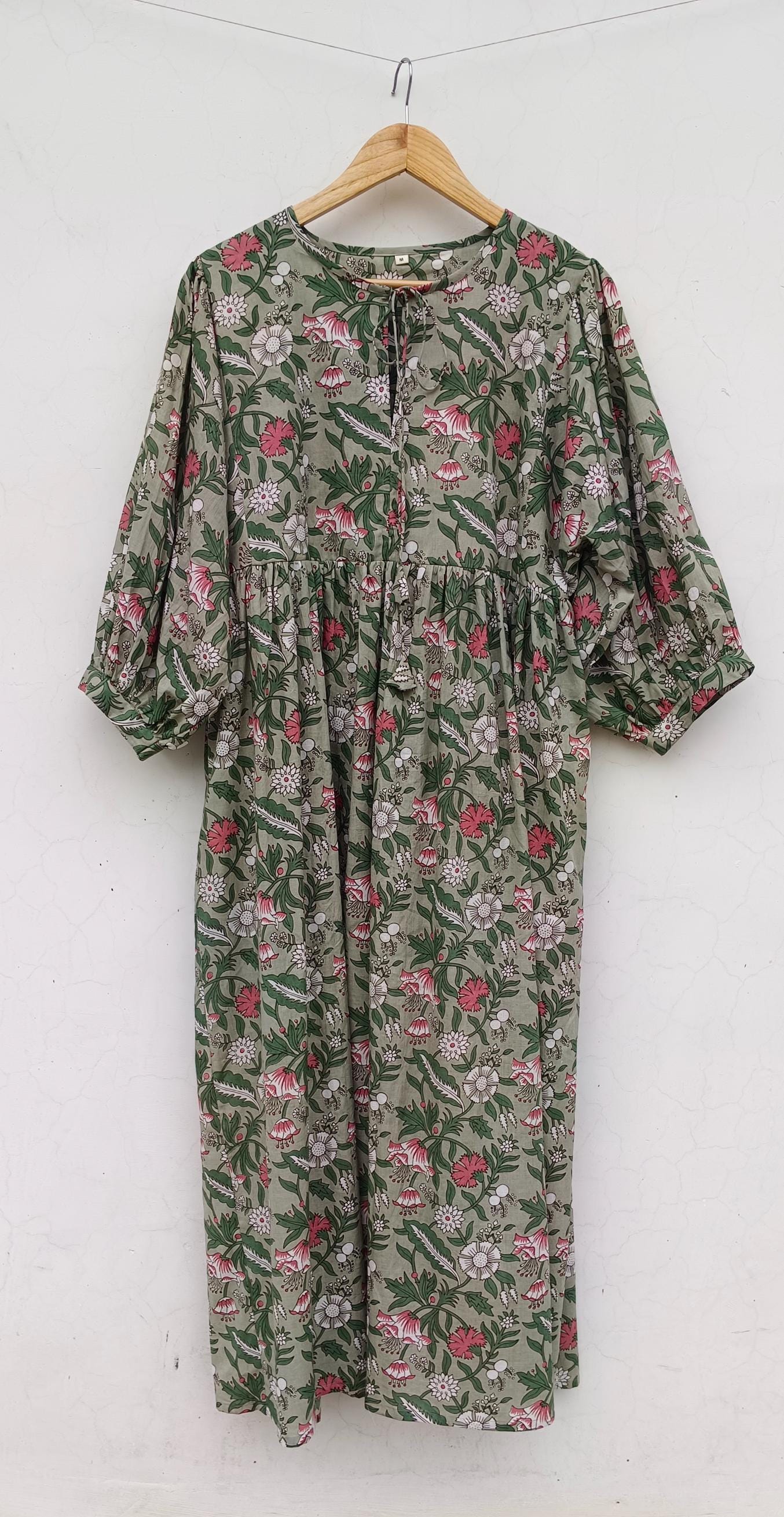 ❤ Floral Handmade Midi Dress, Bohemian Cotton Dress, Dresses for Women, Gift For Your Loved short tunics String Closer, Flower Cotton Dress