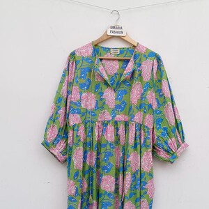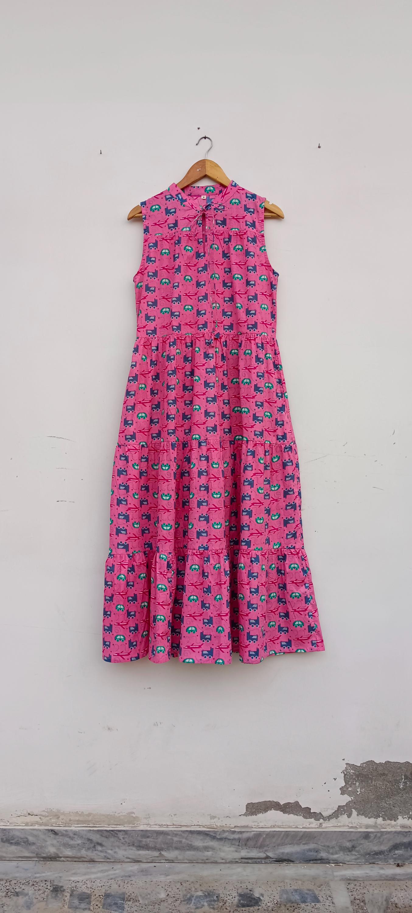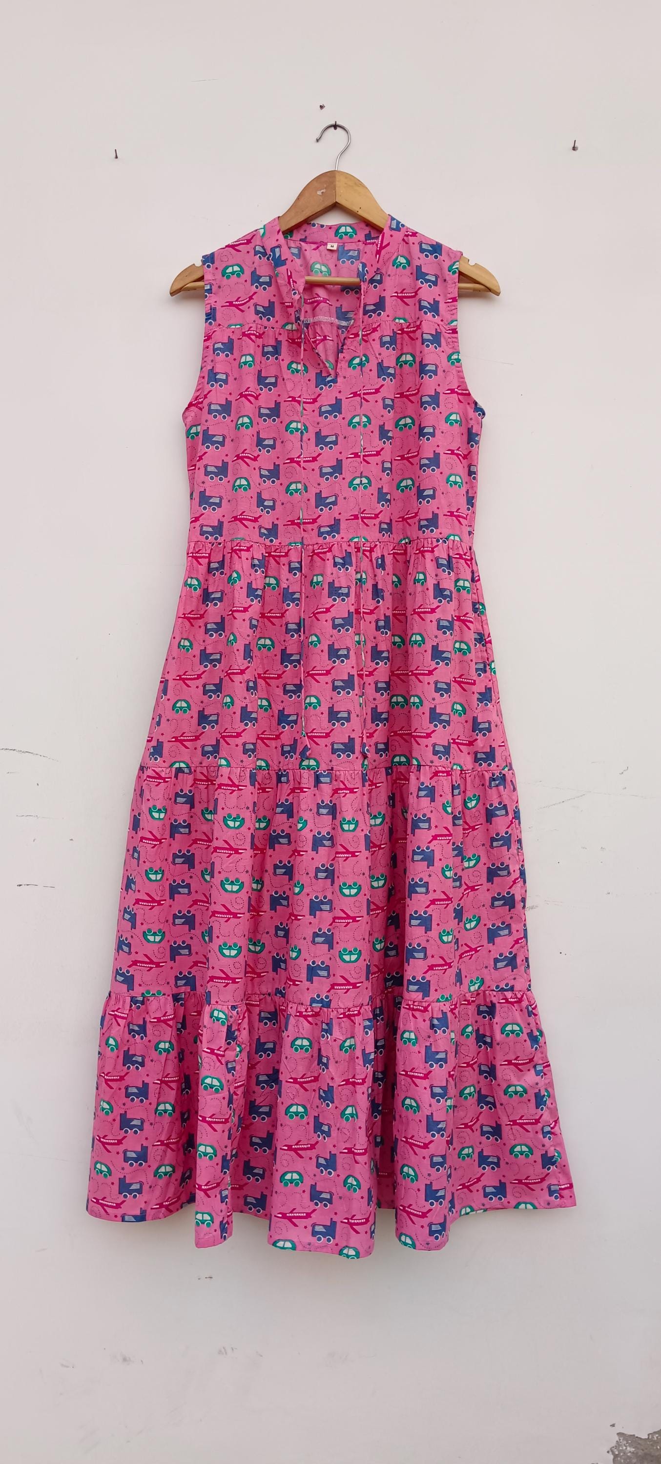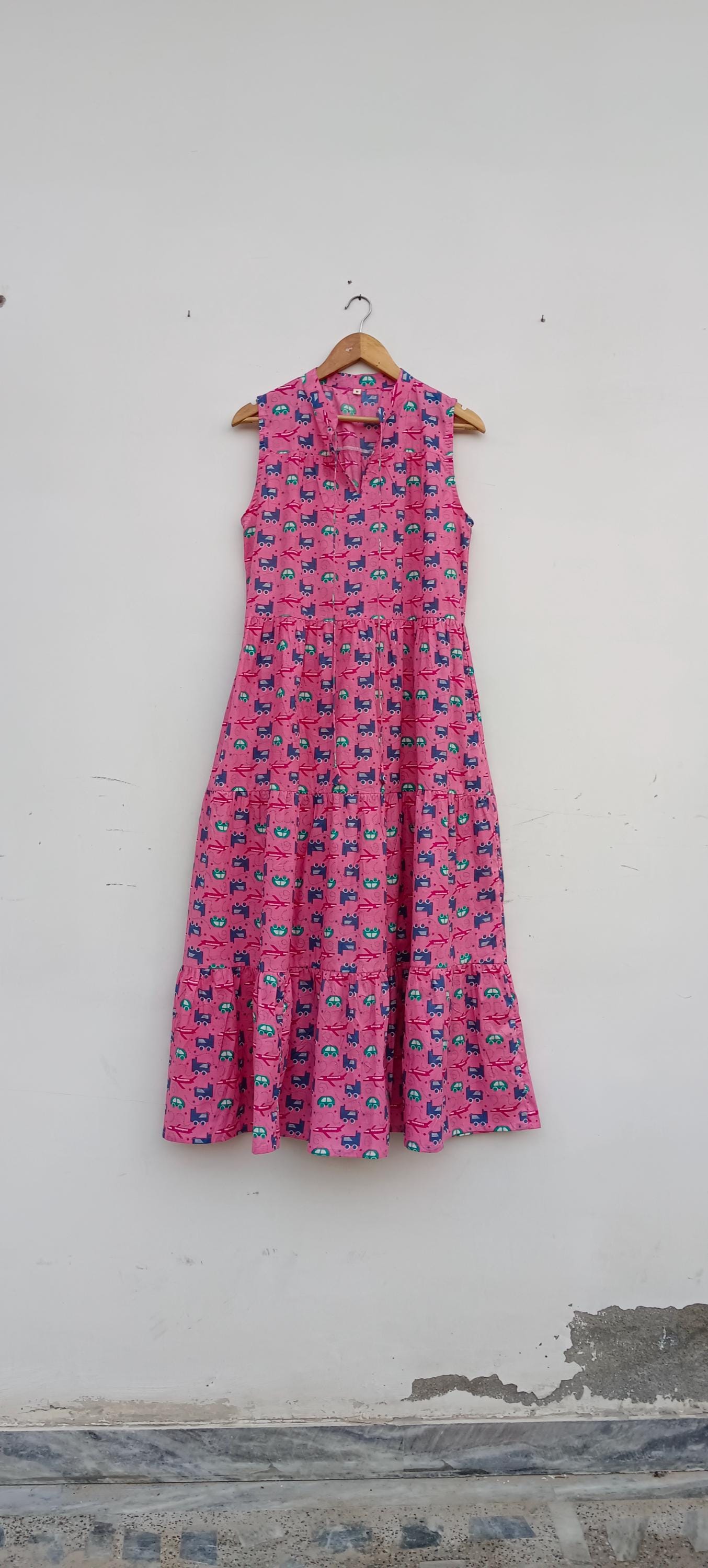 ❤ Beautiful Hand Print Floral Dress || Handblock Cotton Dress || Indian Print Dress || Cotton Block Dress || Block Print Dress || Tier dress