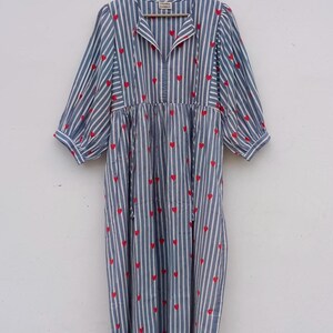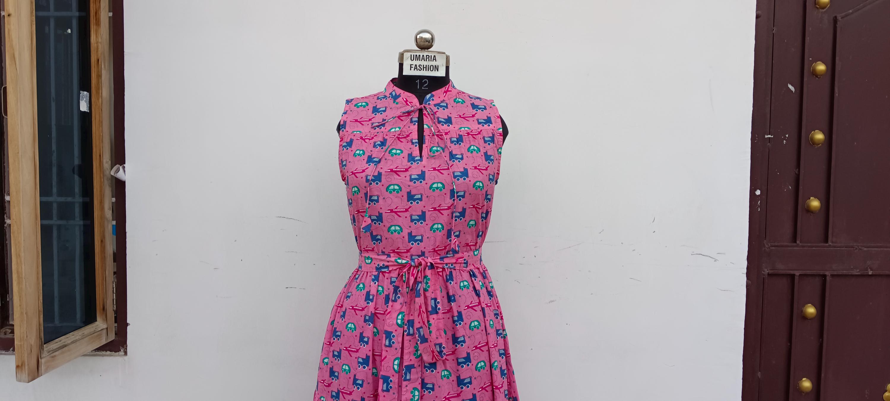 Hand Block Print Cotton Dress: Indian Tunic Gown with Pockets