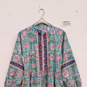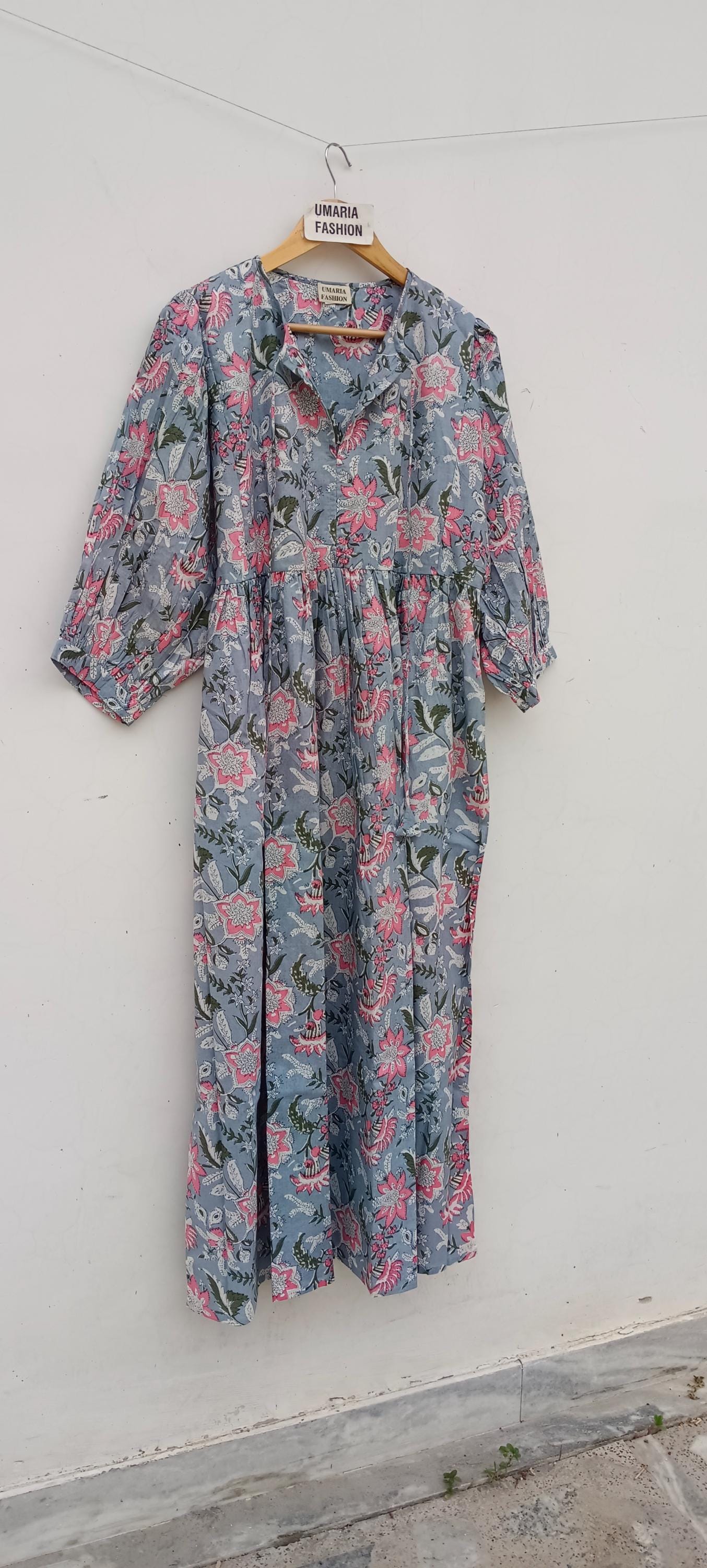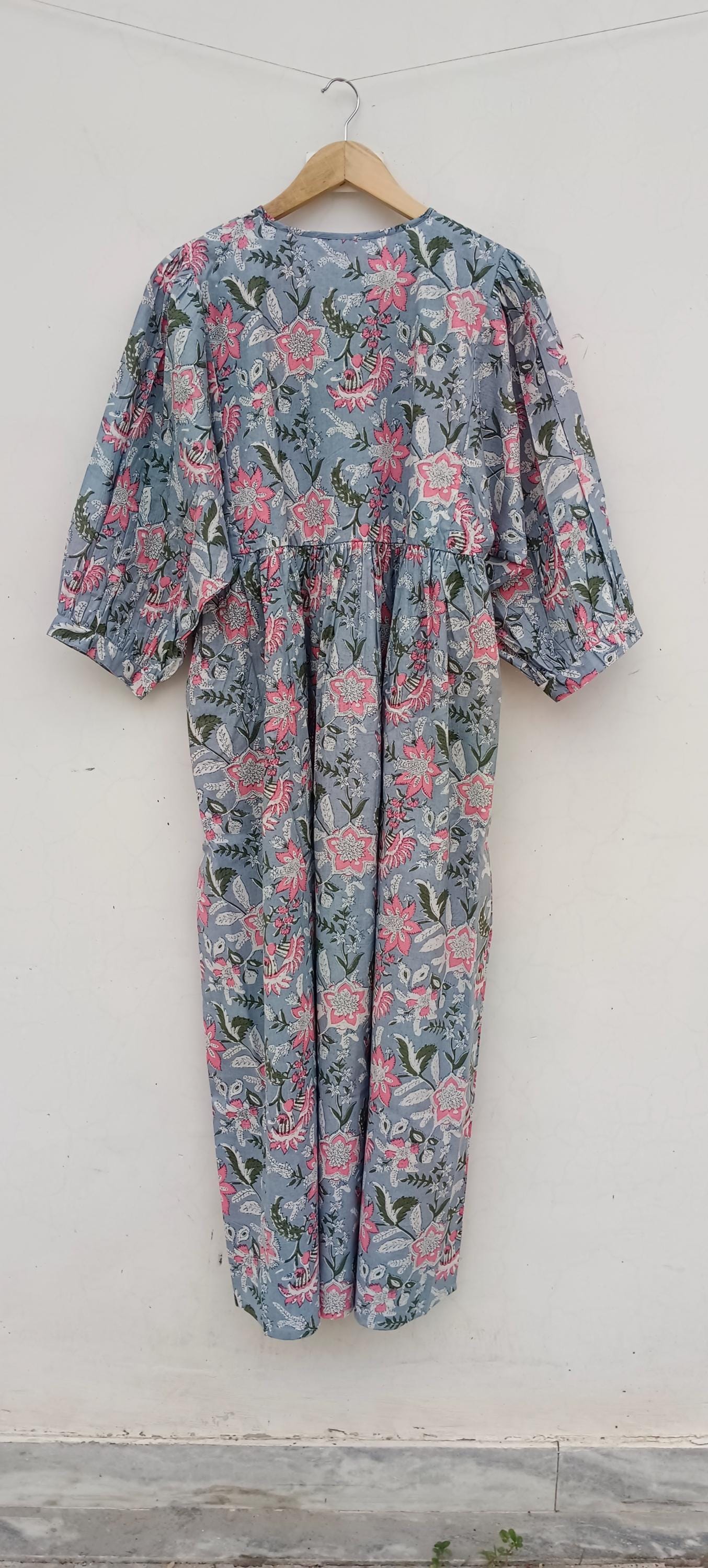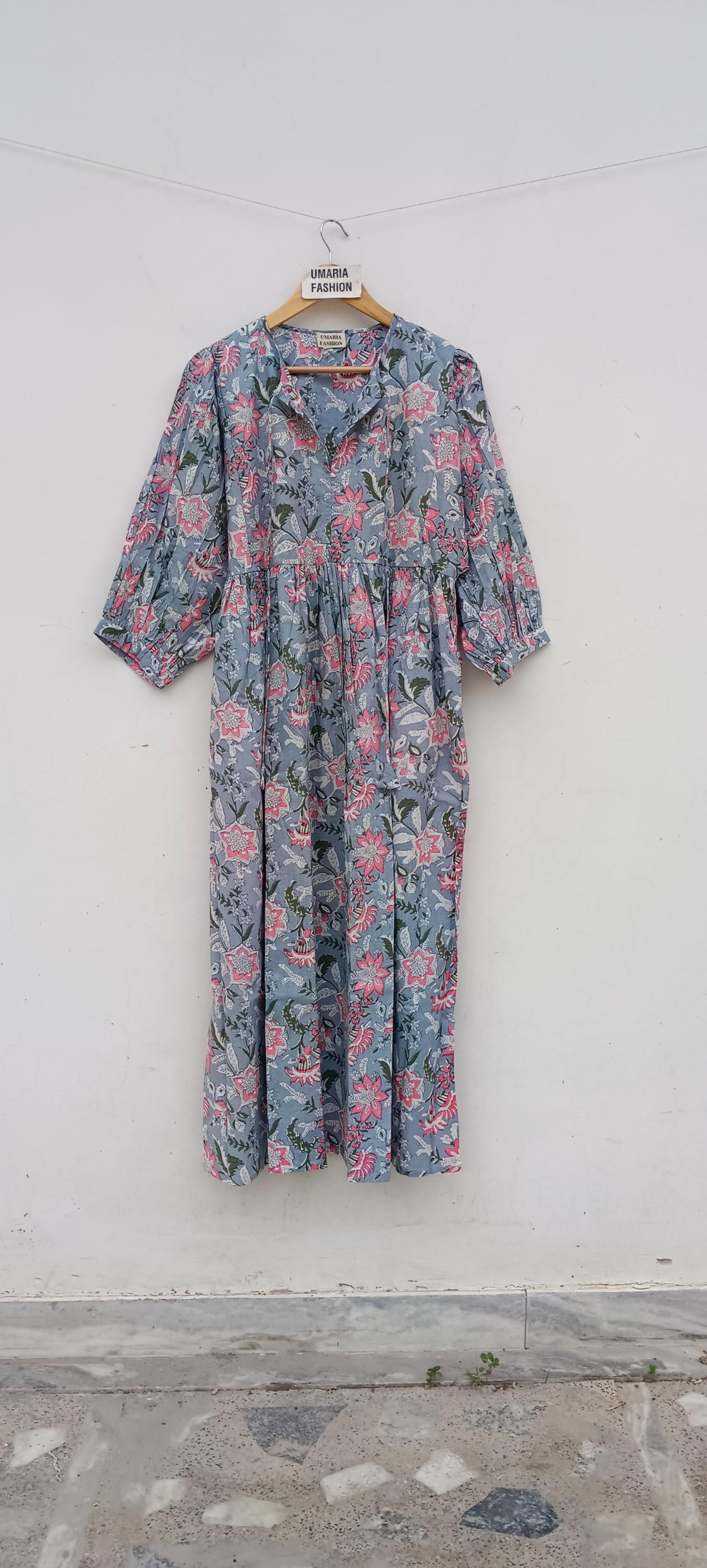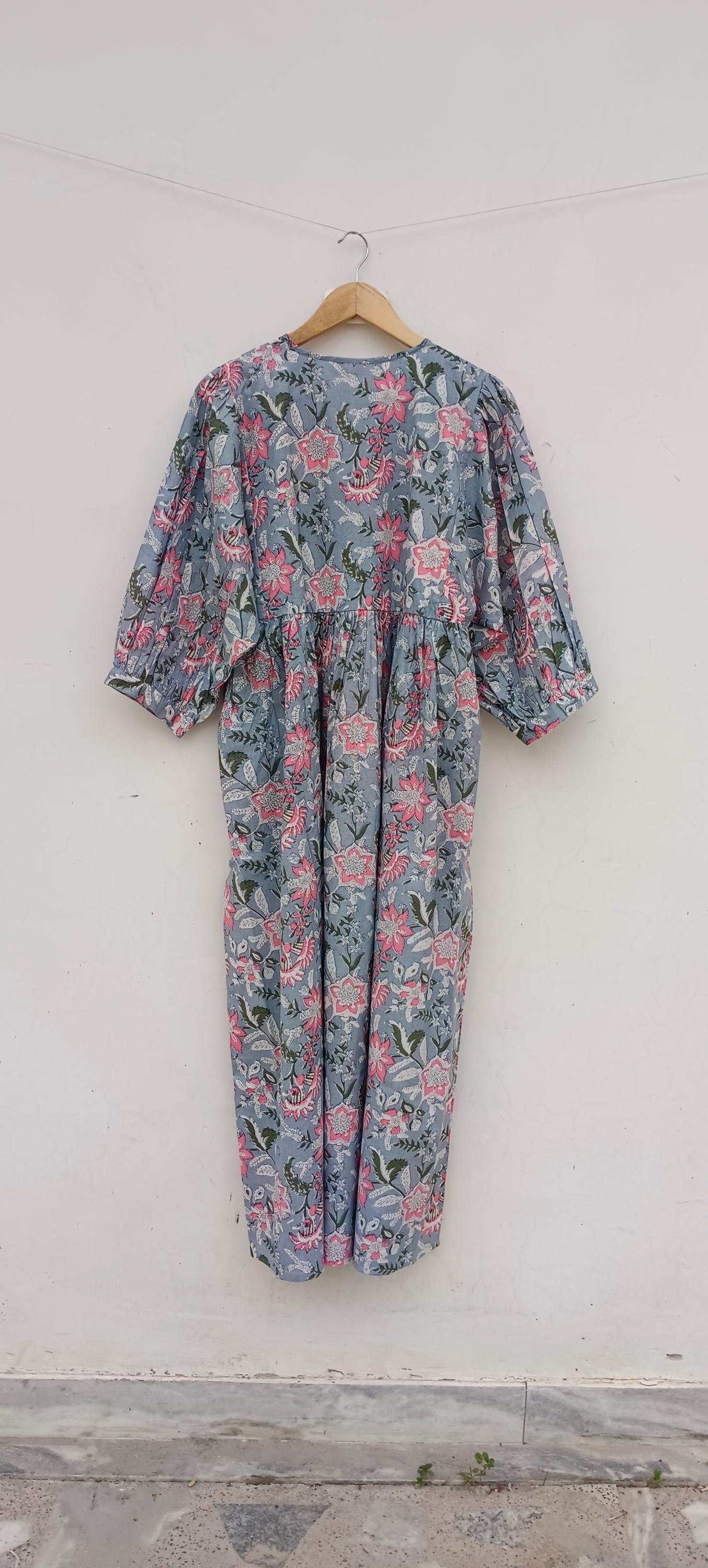 Handmade Floral Cotton Midi Dress: Bohemian Summer Tunic