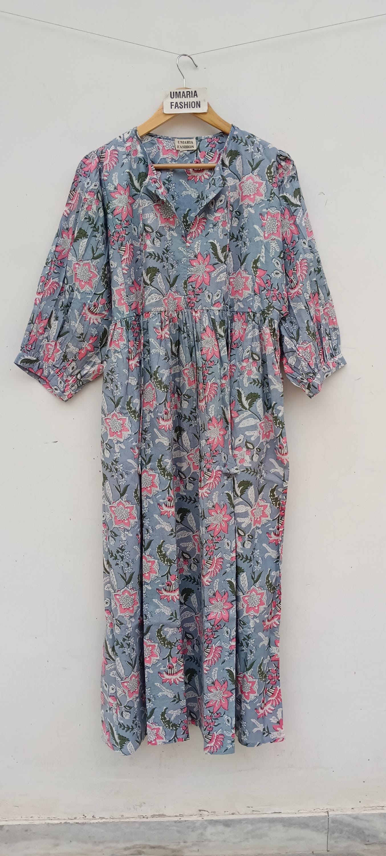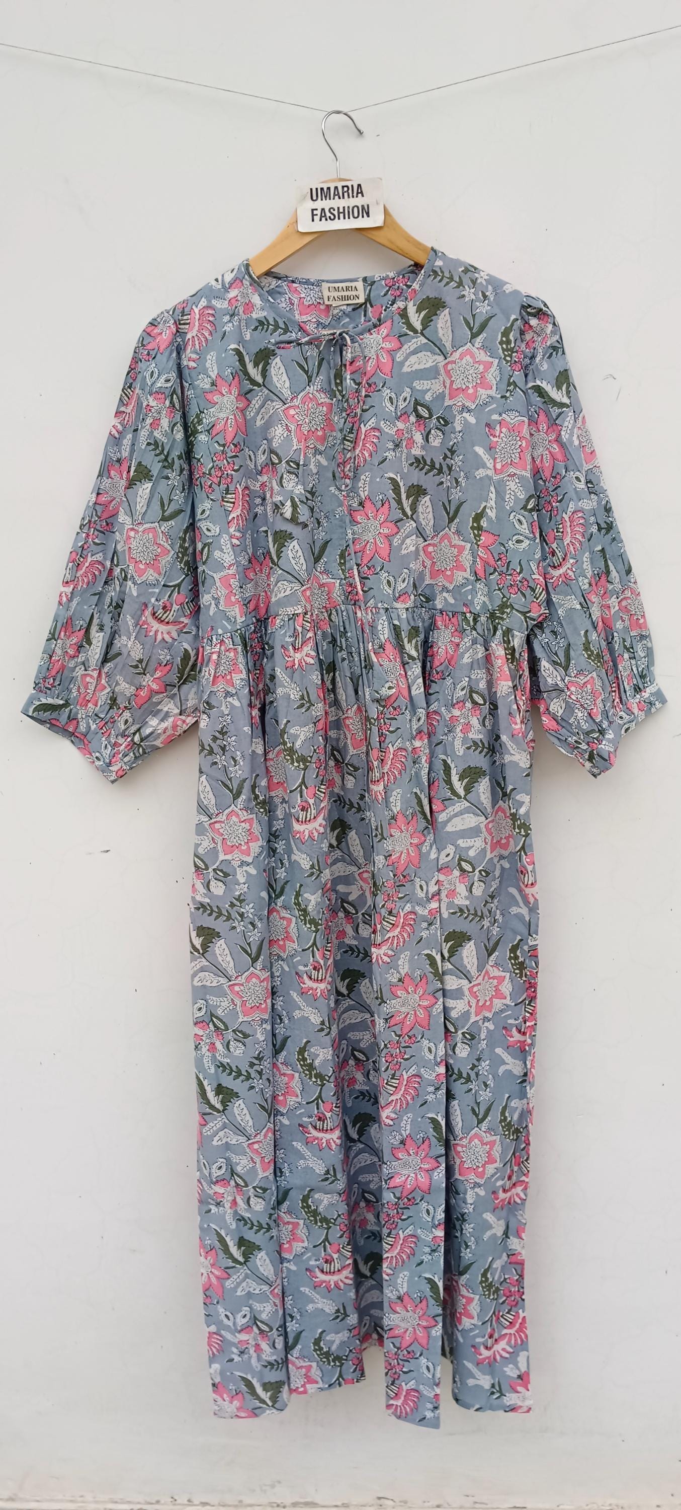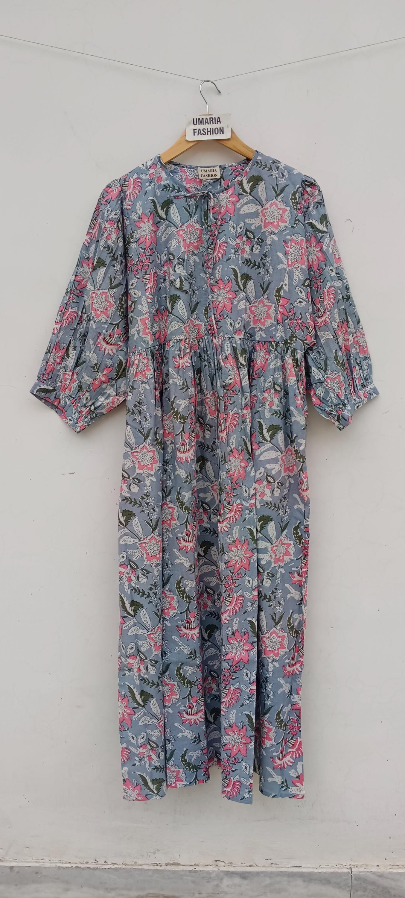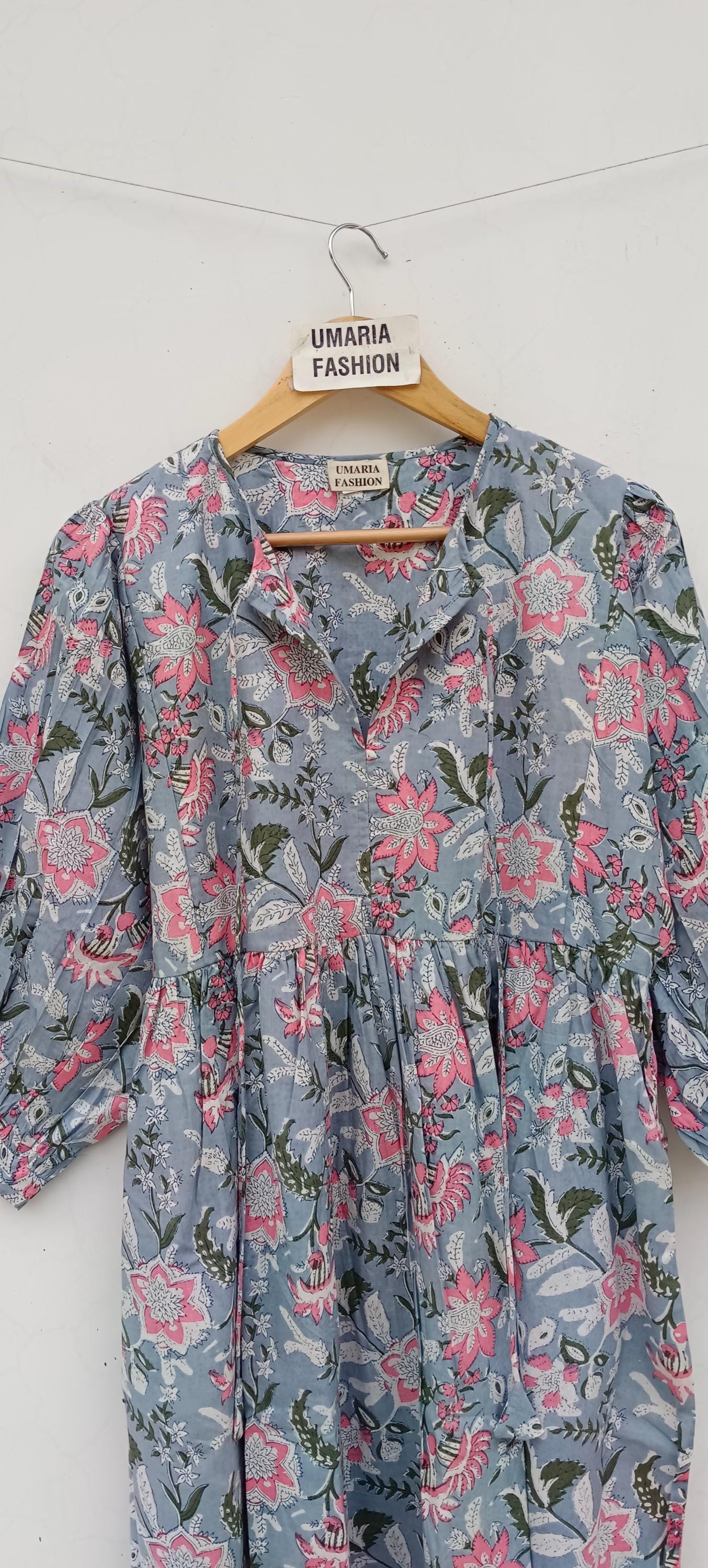 ❤ Floral Handmade Midi Dress, Bohemian Cotton Dress, Dresses for Women, Gift For Your Loved short tunics String Closer, Flower Cotton Dress