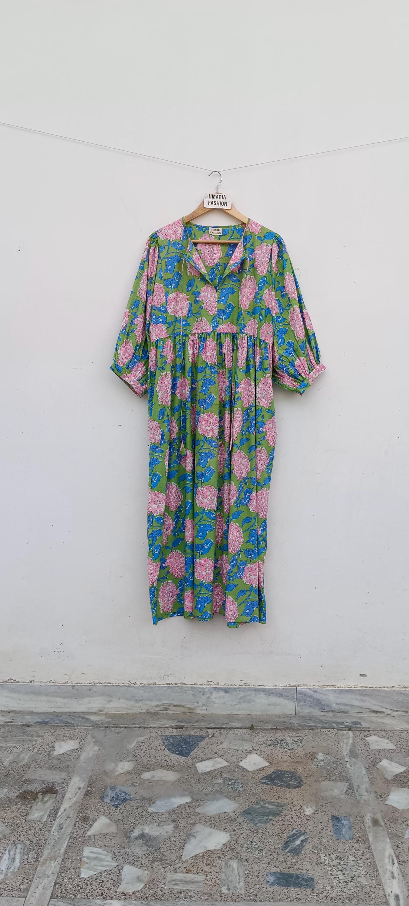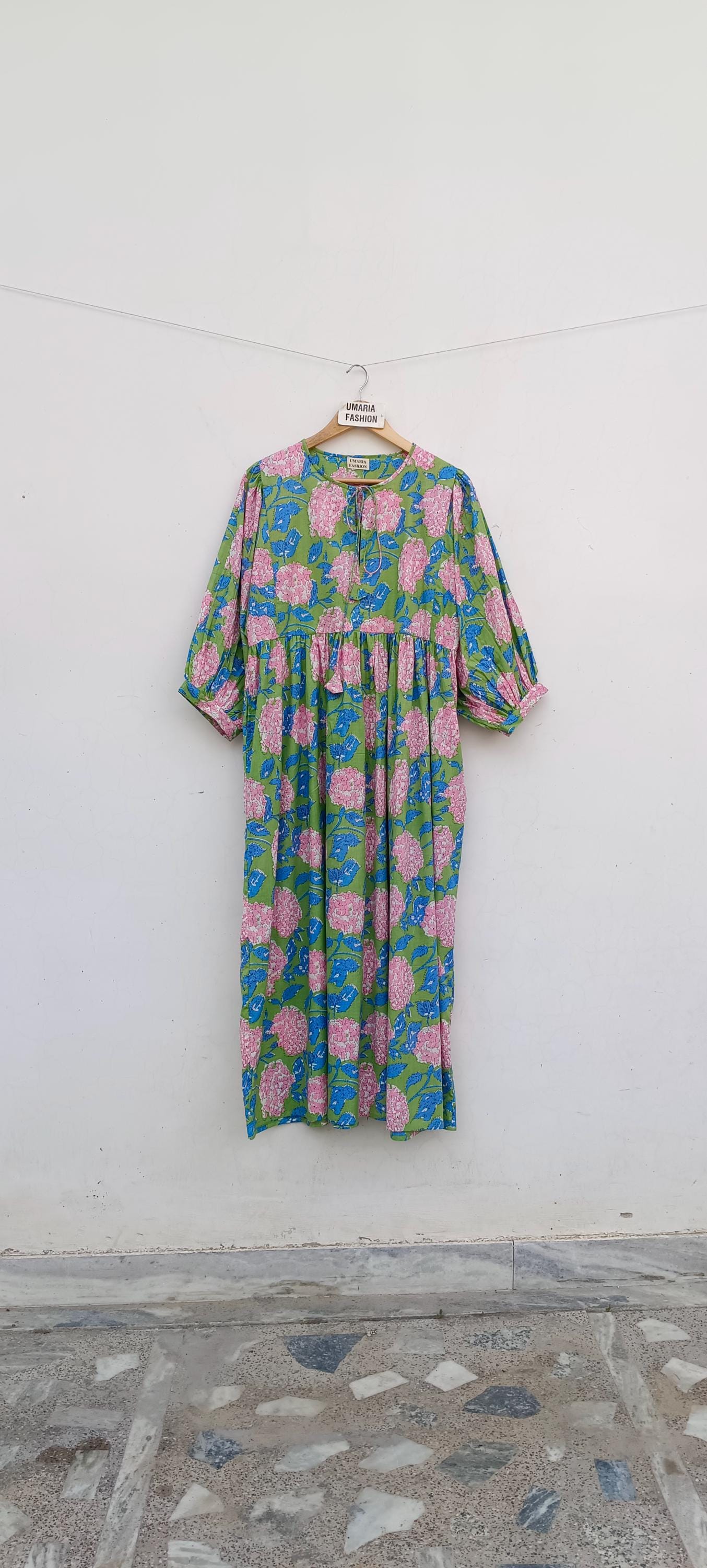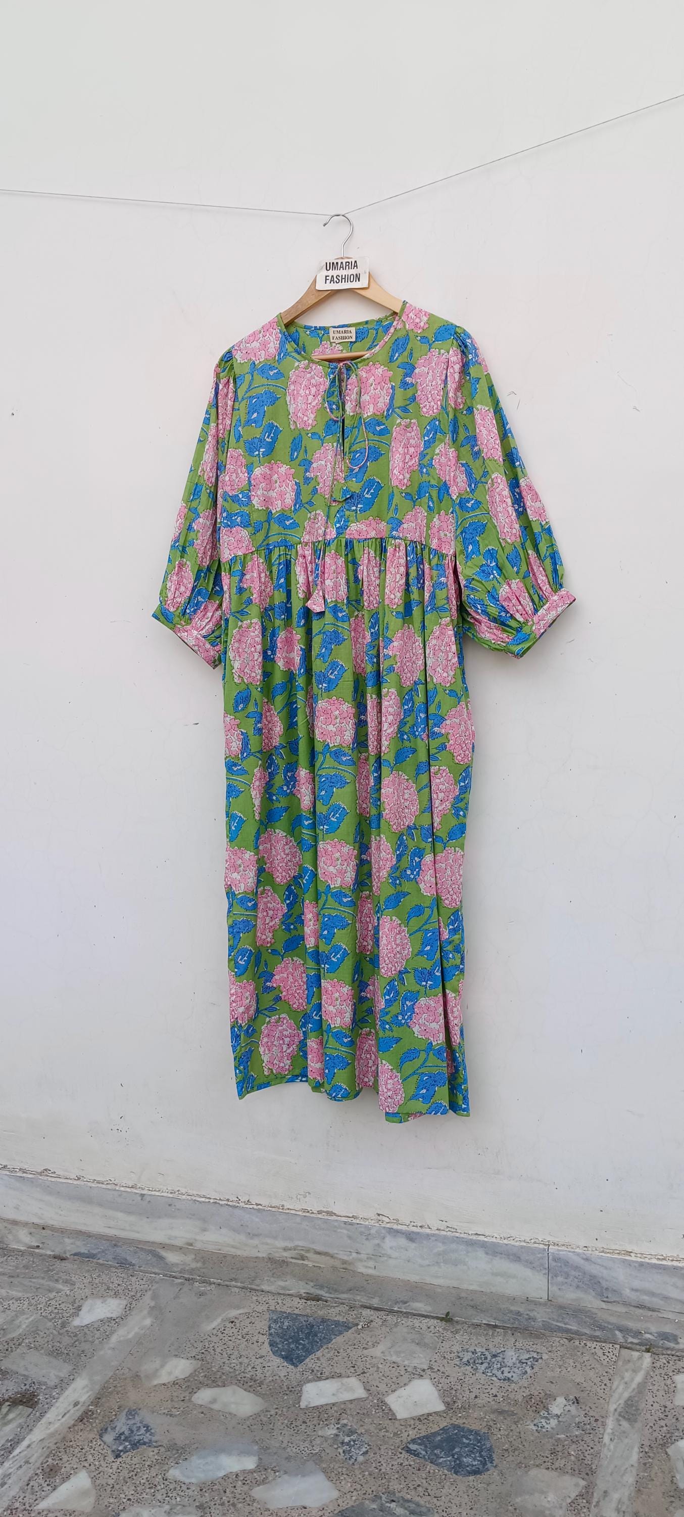 ❤ Floral Handmade Midi Dress, Bohemian Cotton Dress, Dresses for Women, Gift For Your Loved short tunics String Closer, Flower Cotton Dress
