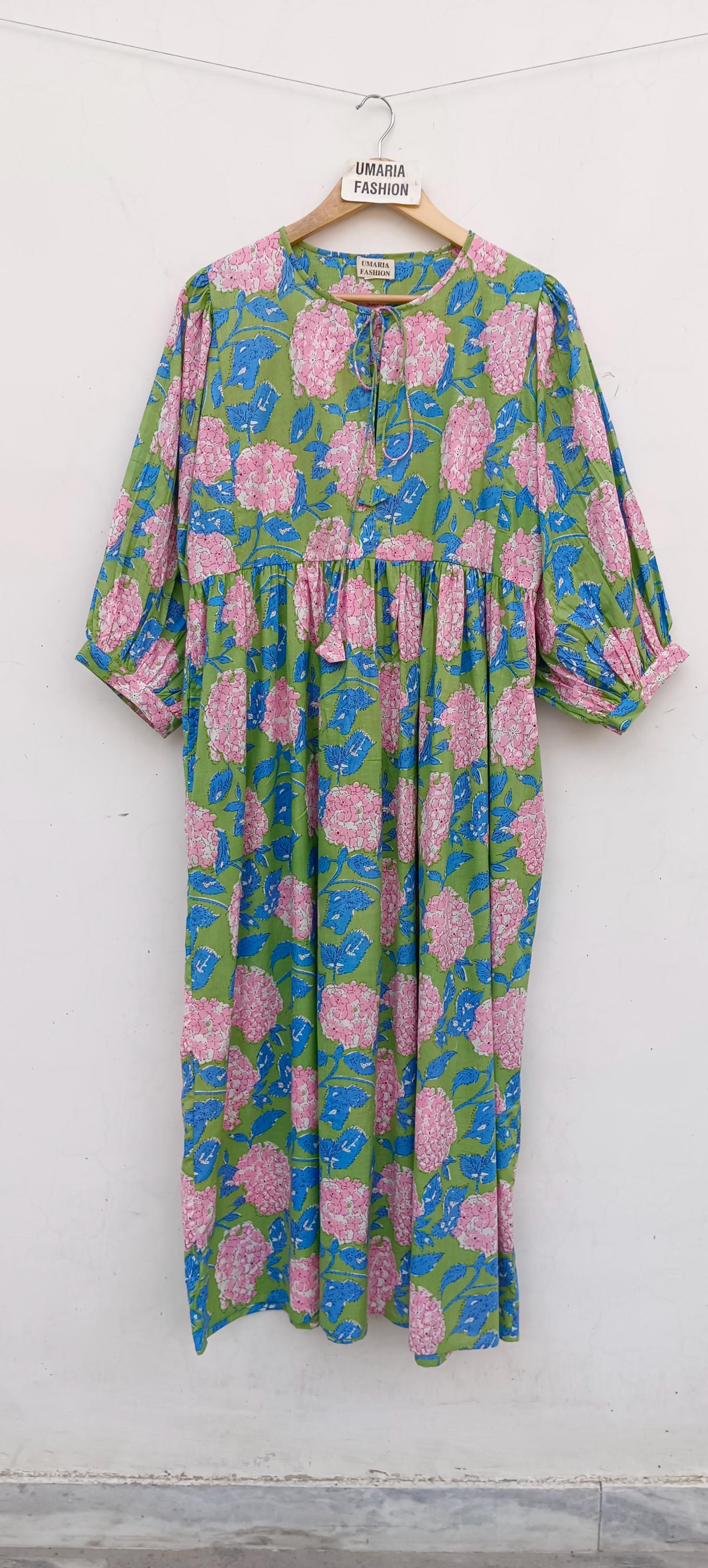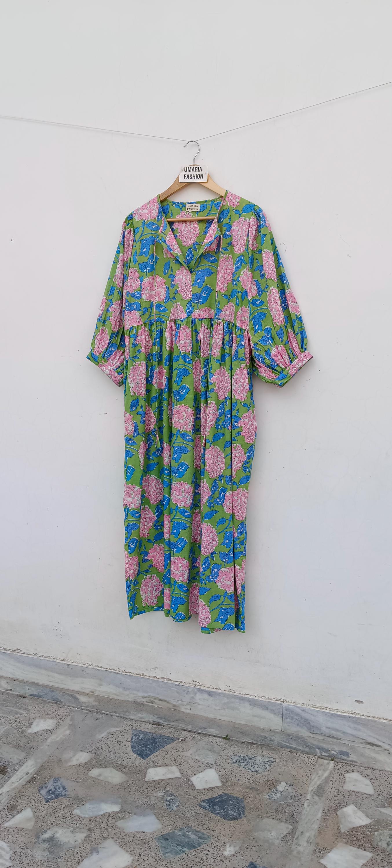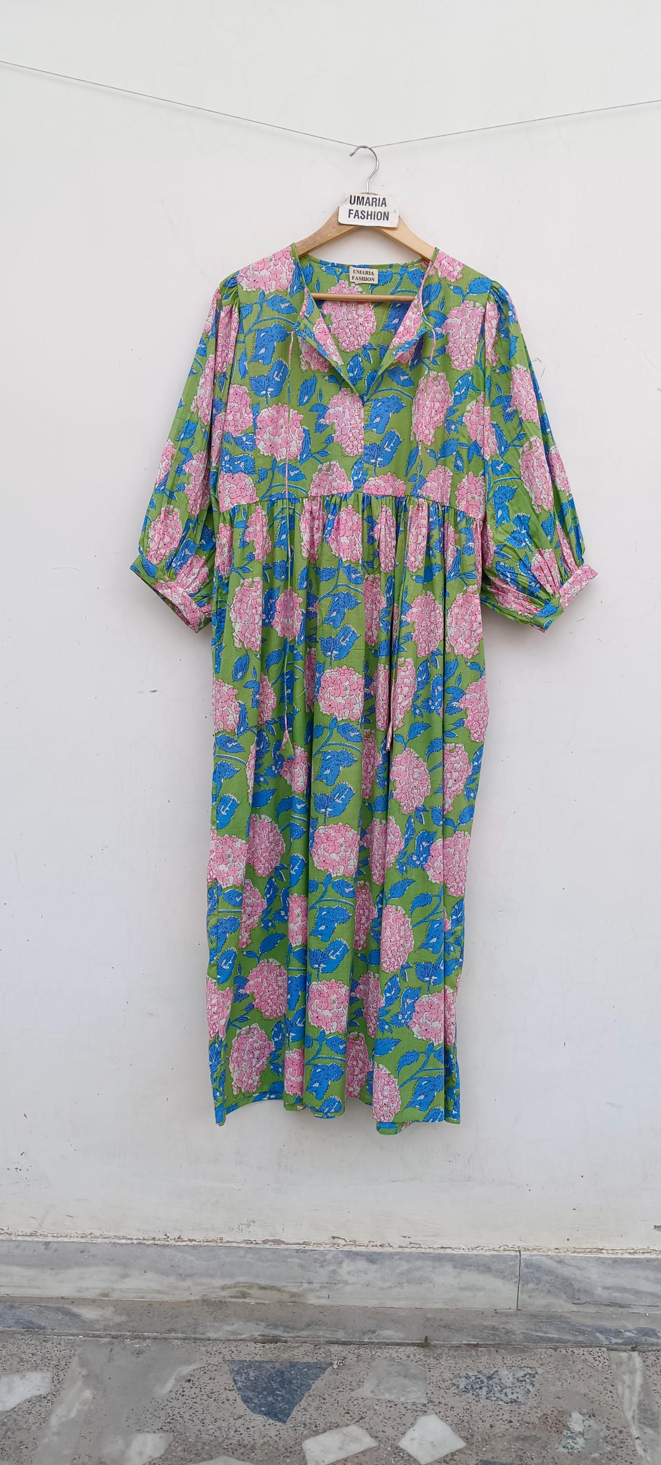 ❤ Floral Handmade Midi Dress, Bohemian Cotton Dress, Dresses for Women, Gift For Your Loved short tunics String Closer, Flower Cotton Dress