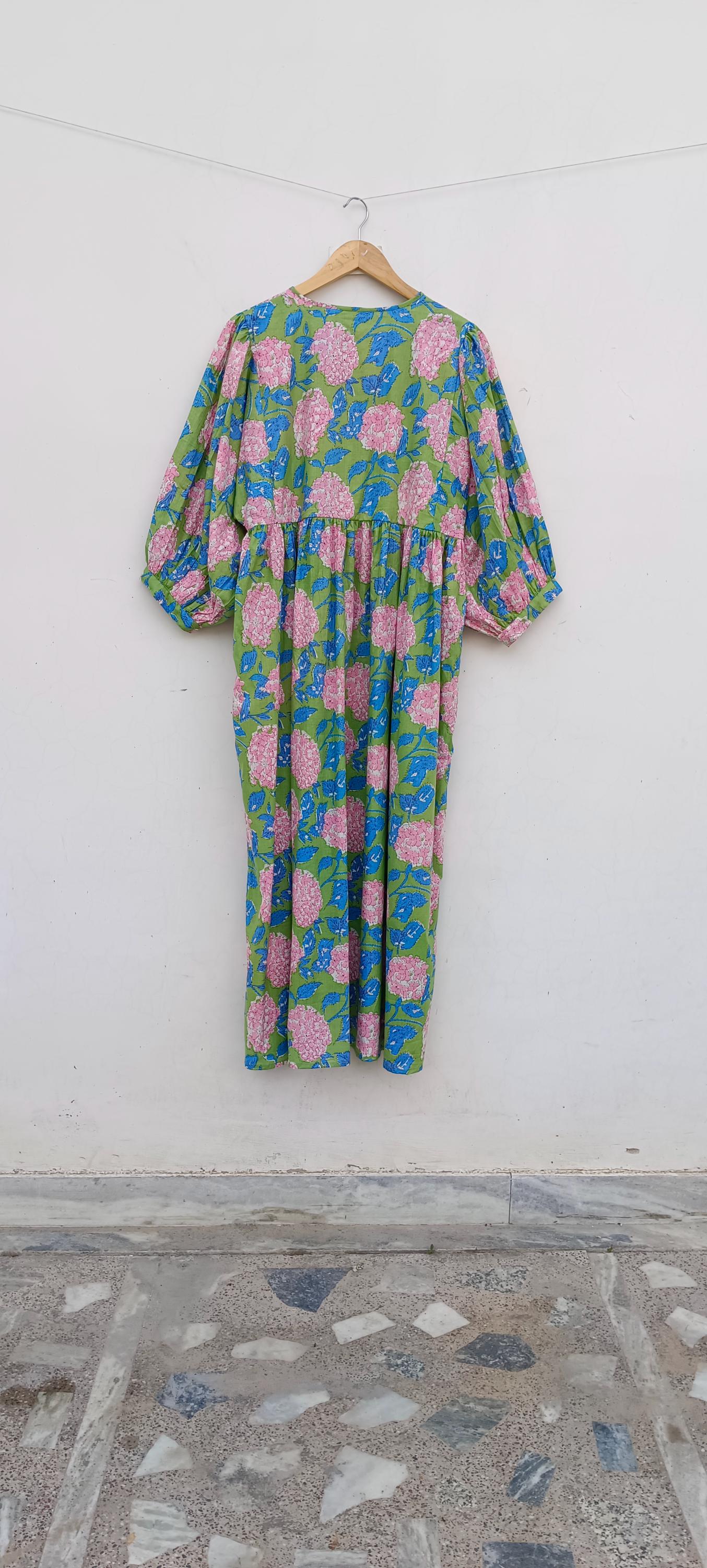 Handmade Floral Cotton Midi Dress: Bohemian Summer Dress