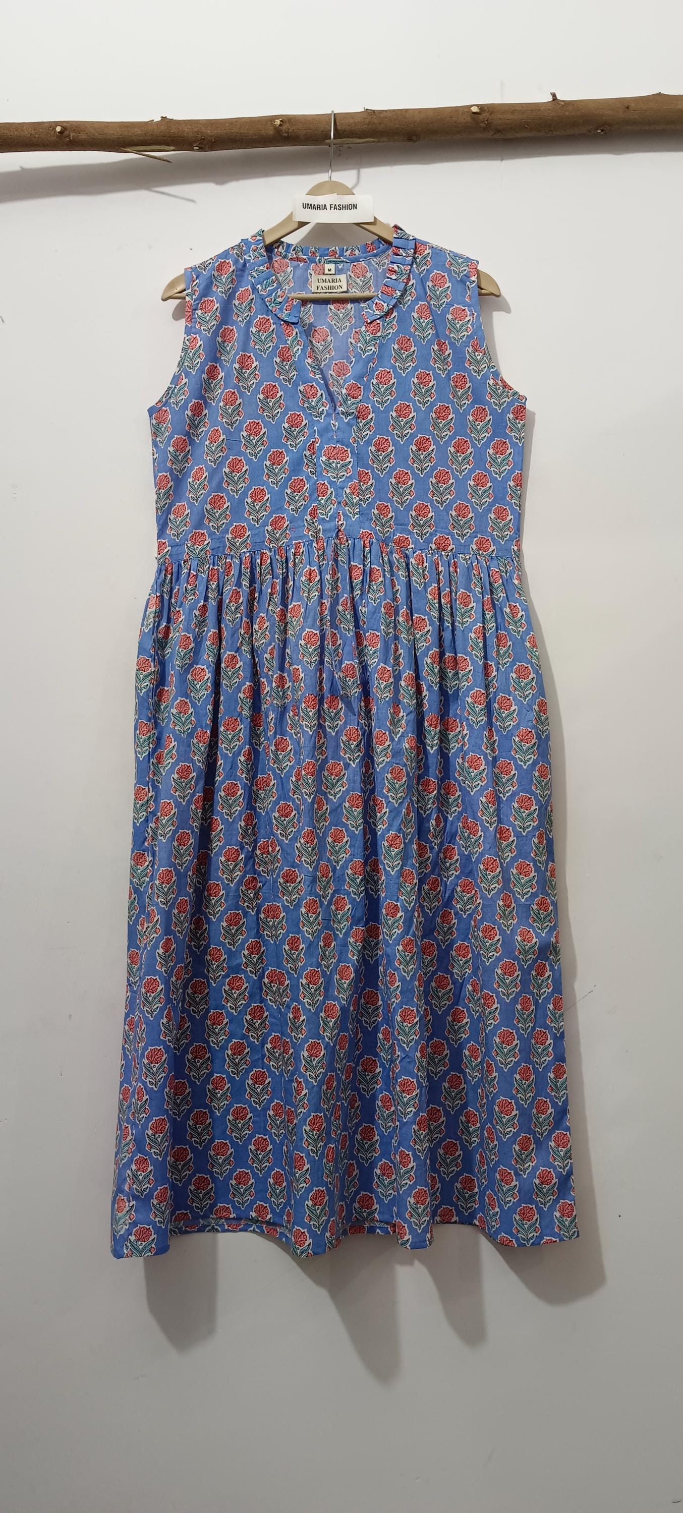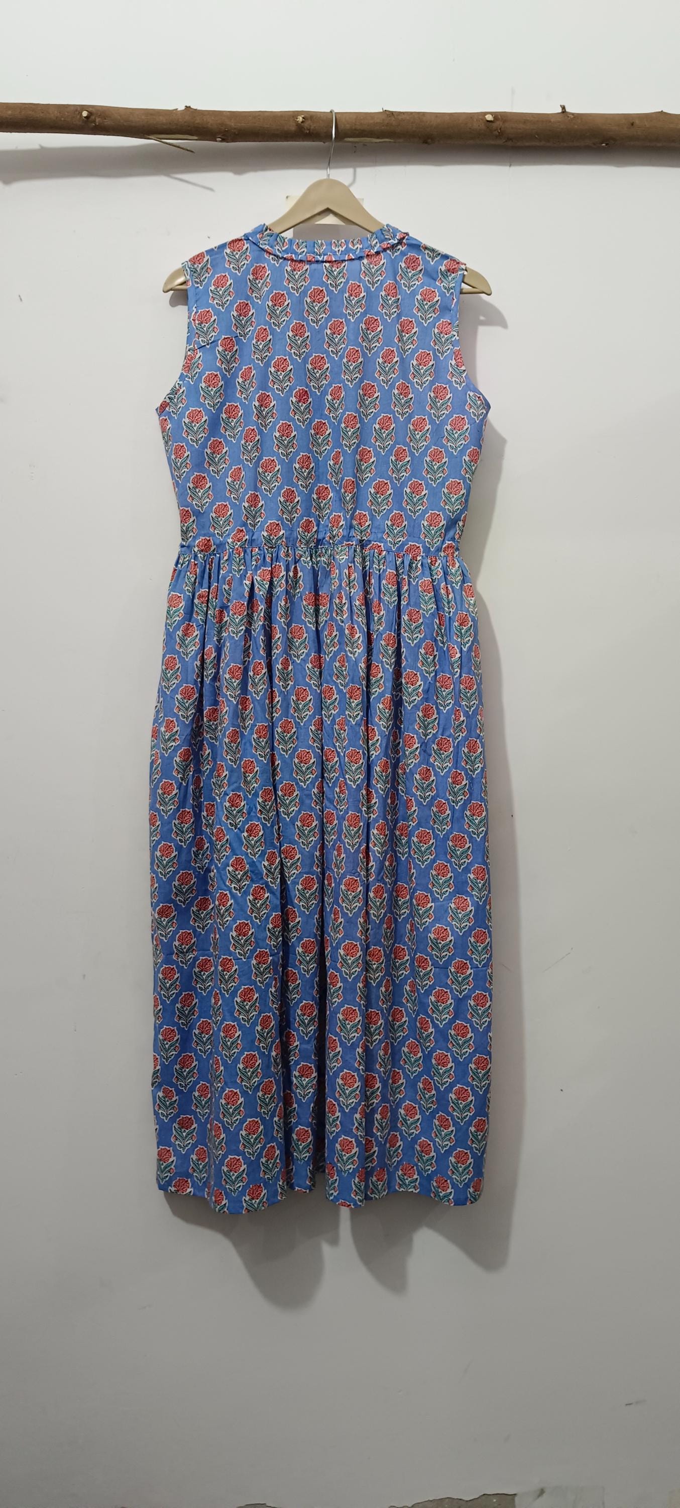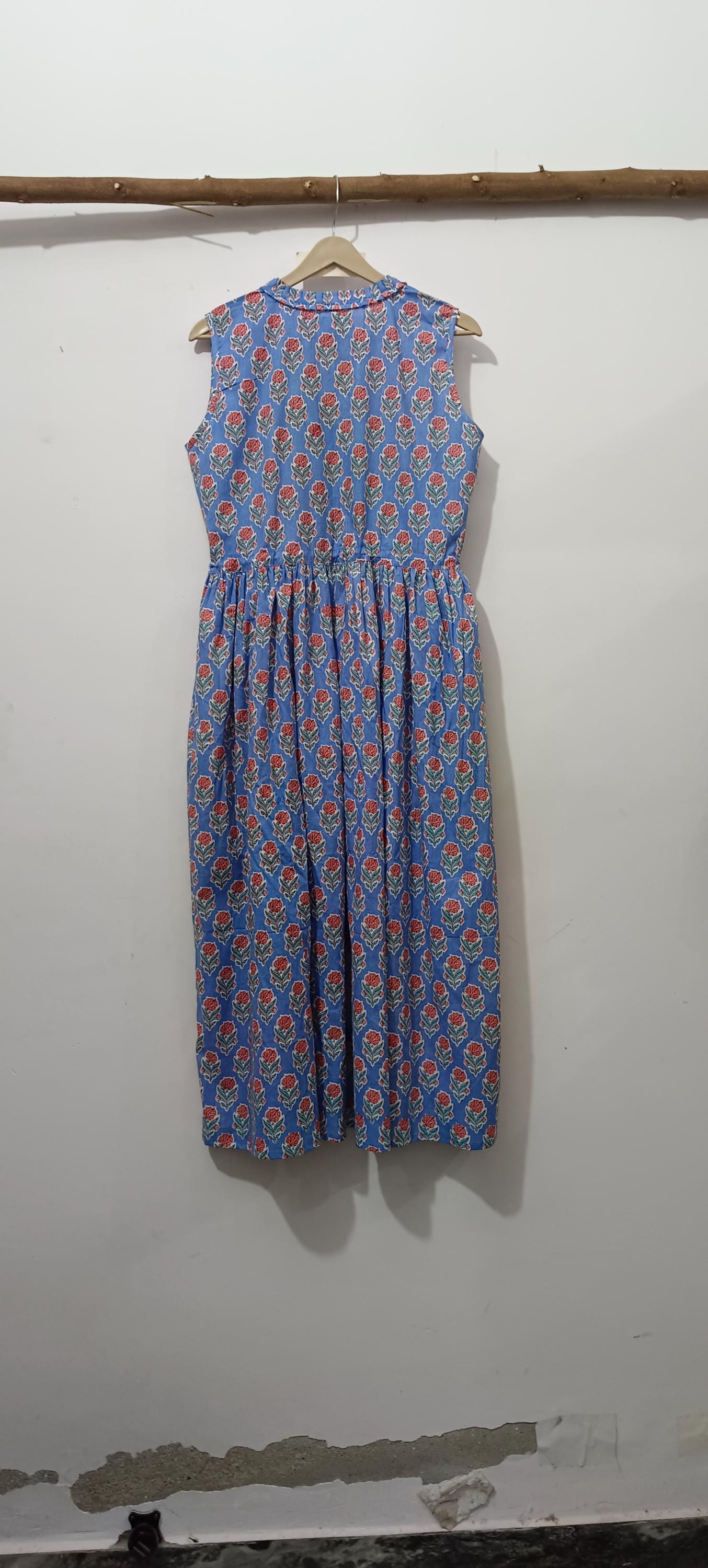 Floral Cotton Midi Dress: Bohemian Handmade Summer Dress