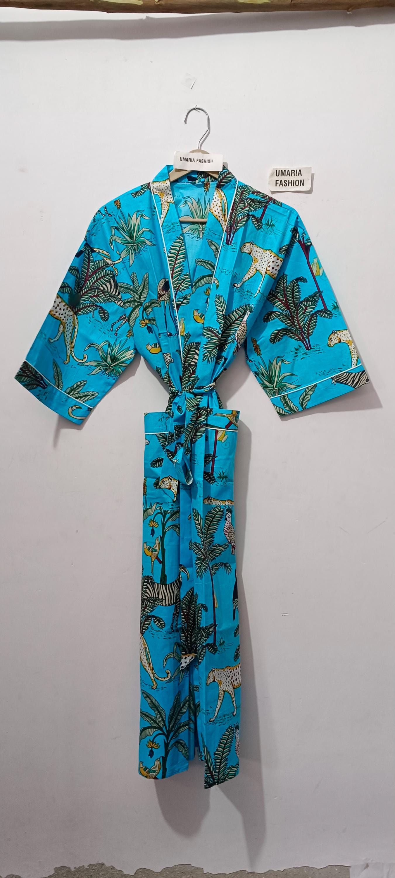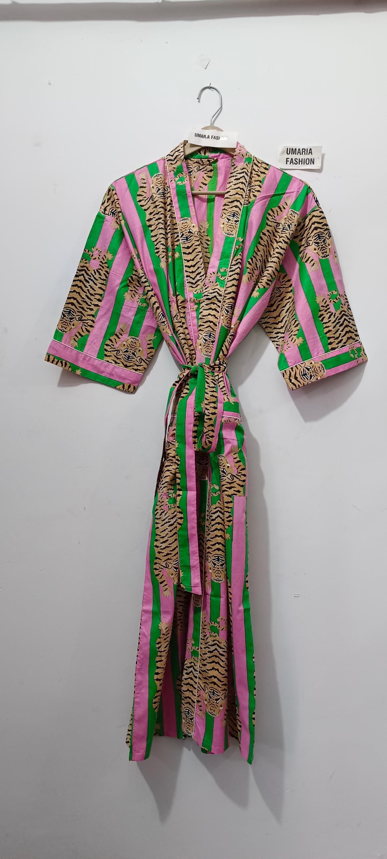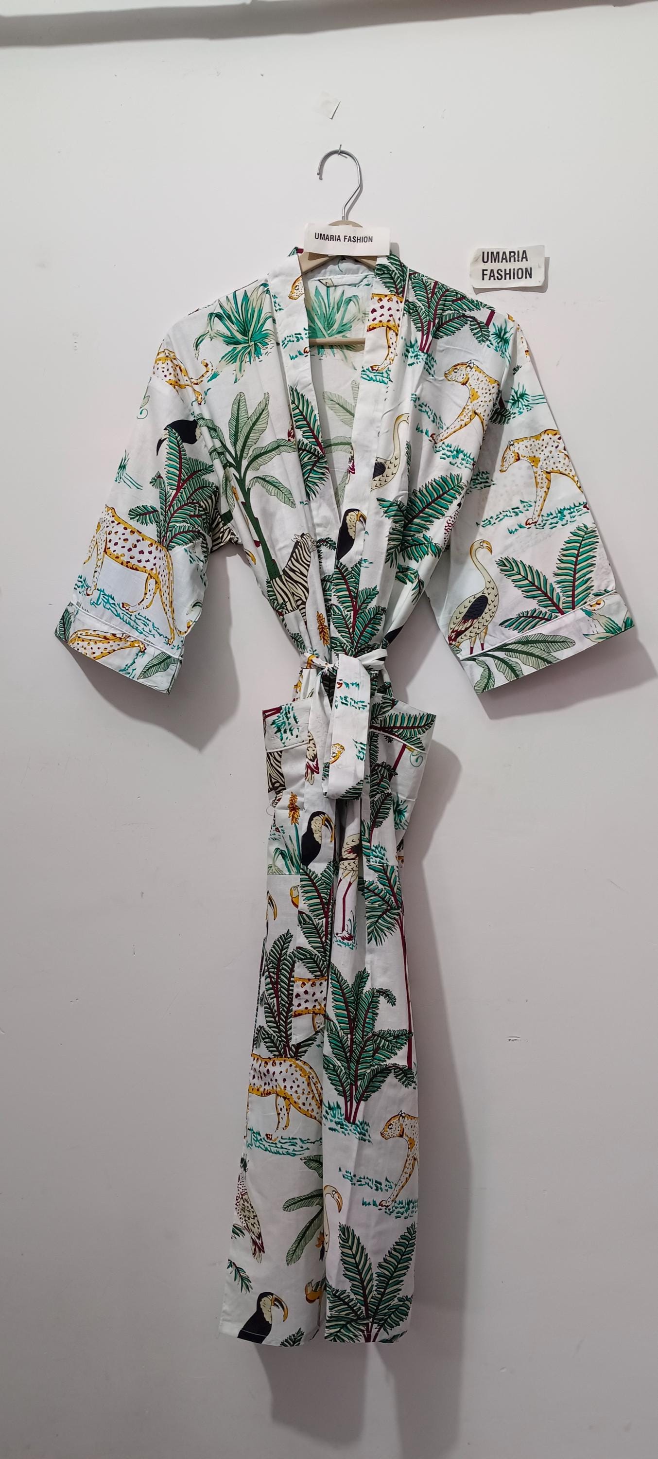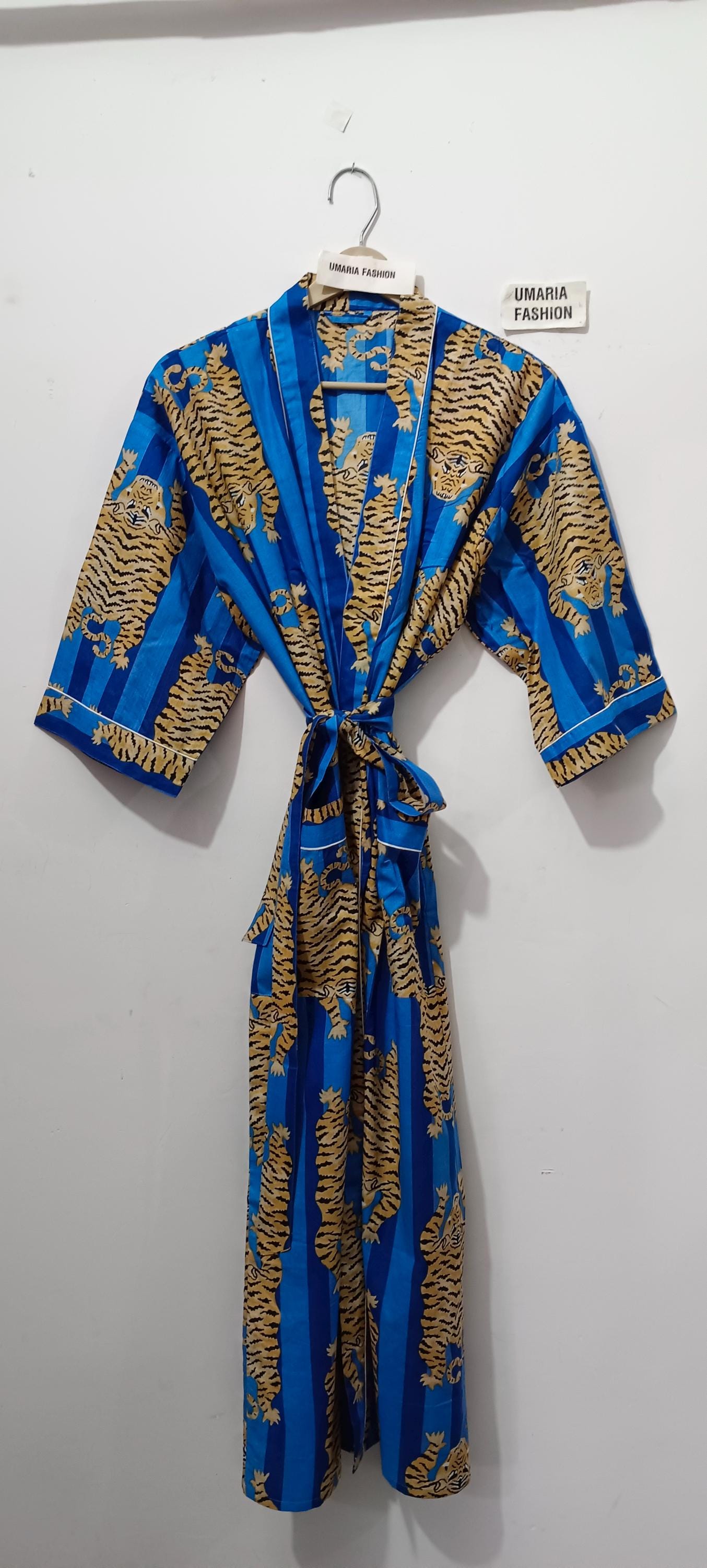 Cotton Kimono Robes Dressing Gown,Block Print Bridesmaid, Summer Nightwear,One Size