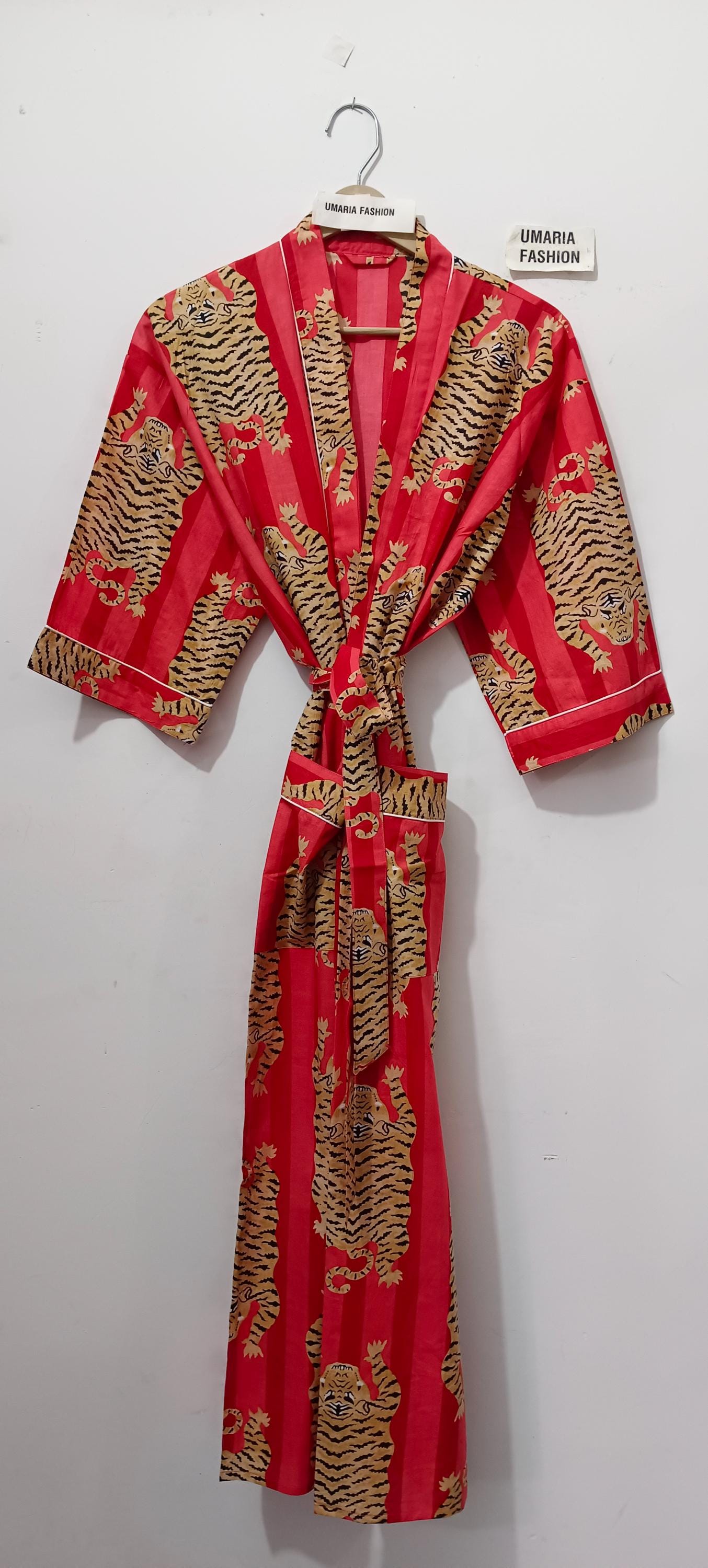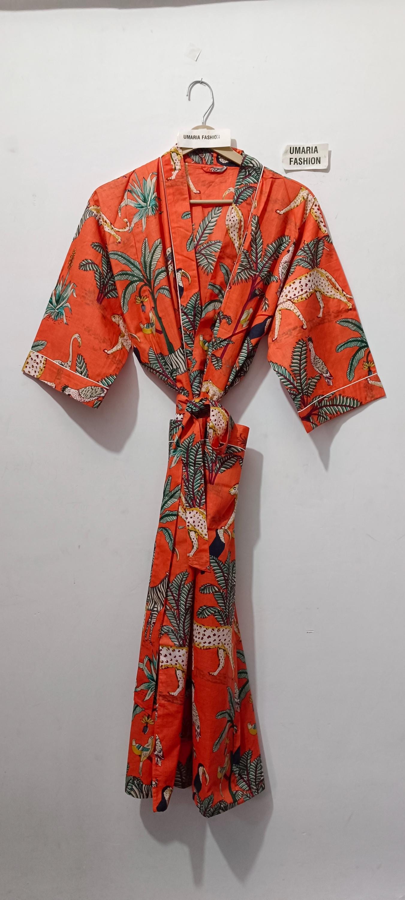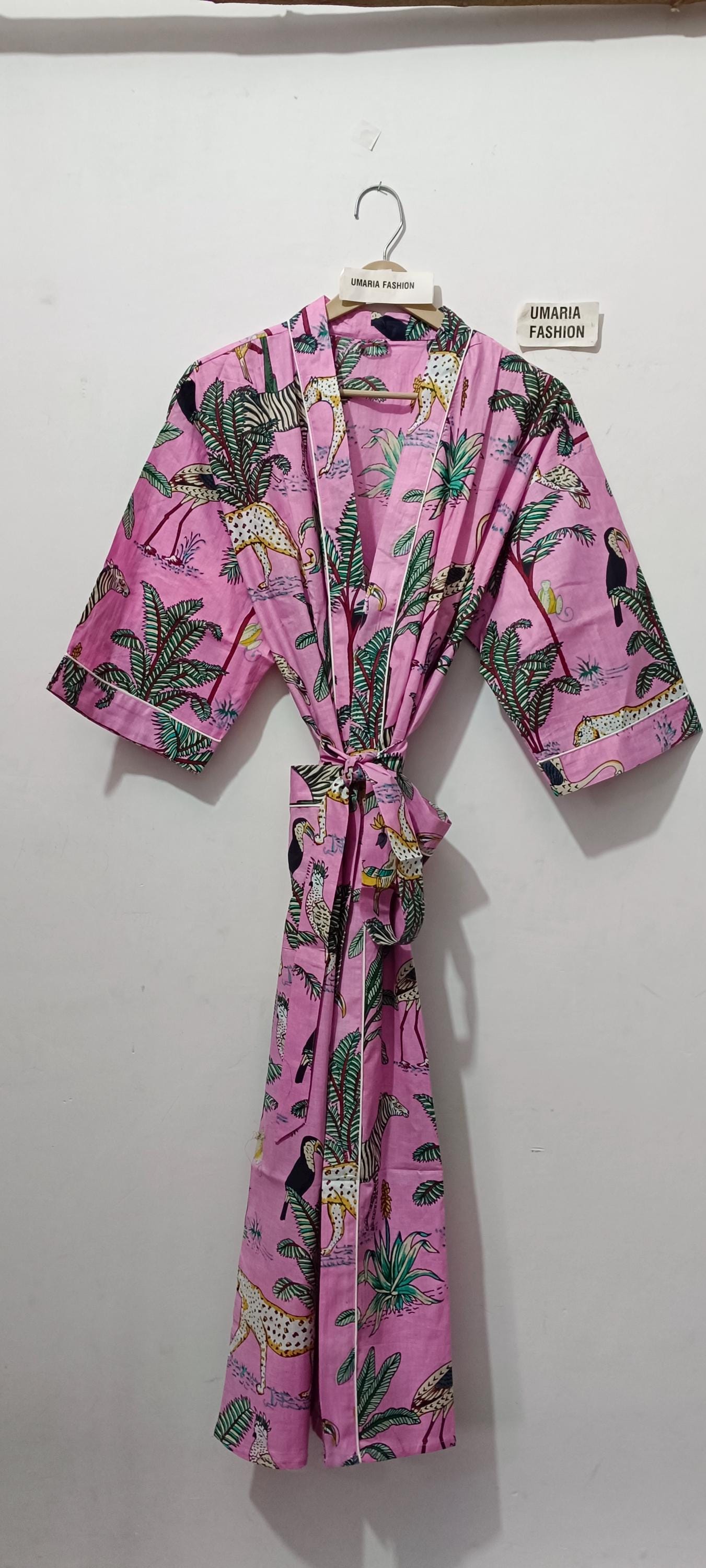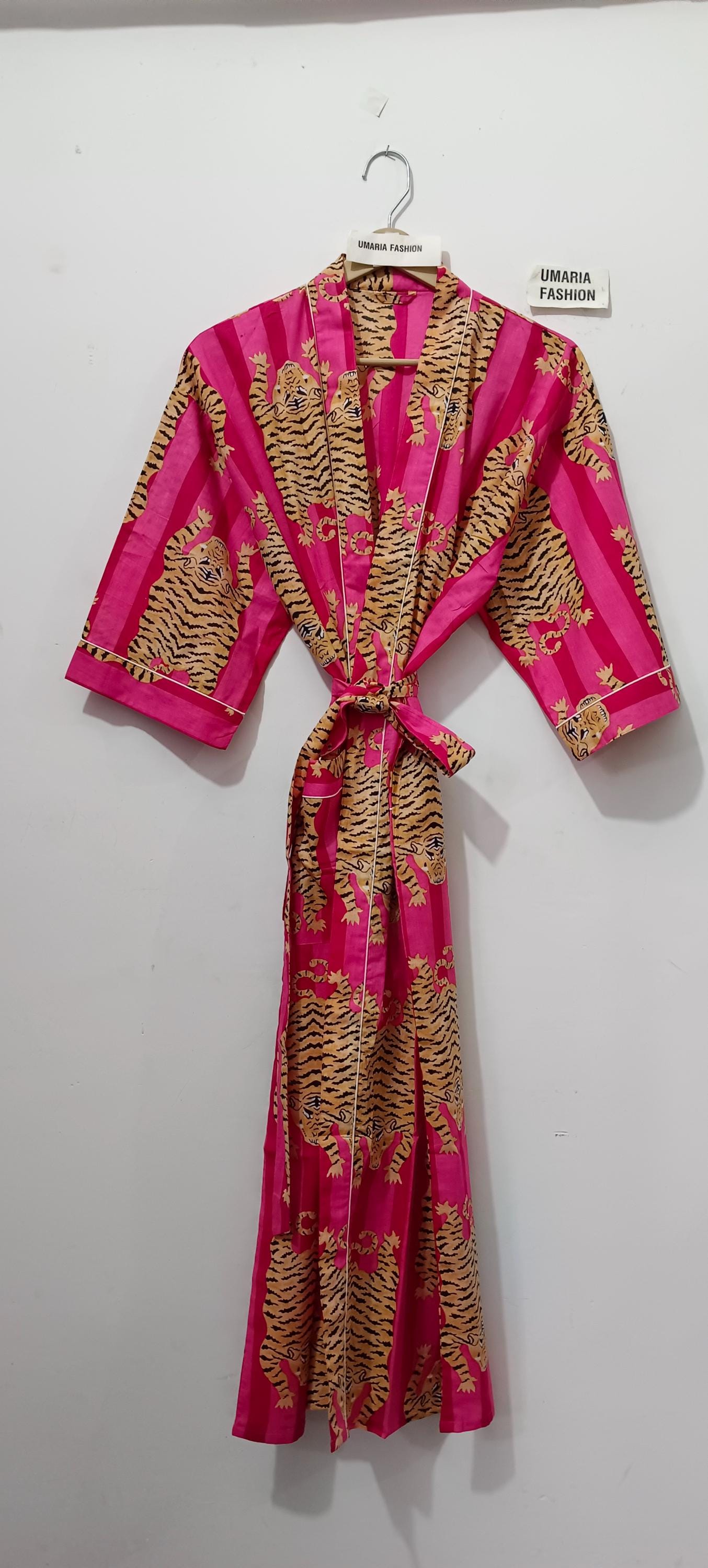 Cotton Kimono Robes Dressing Gown,Block Print Bridesmaid, Summer Nightwear,One Size
