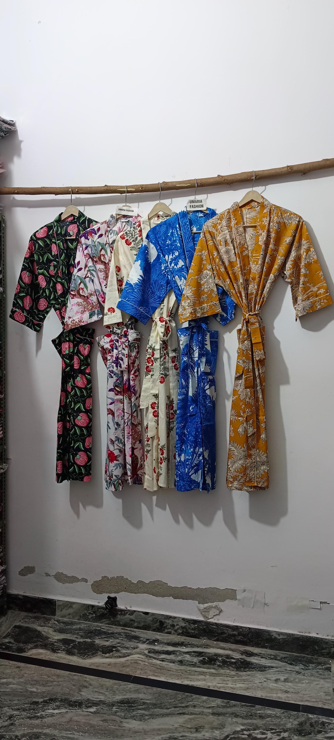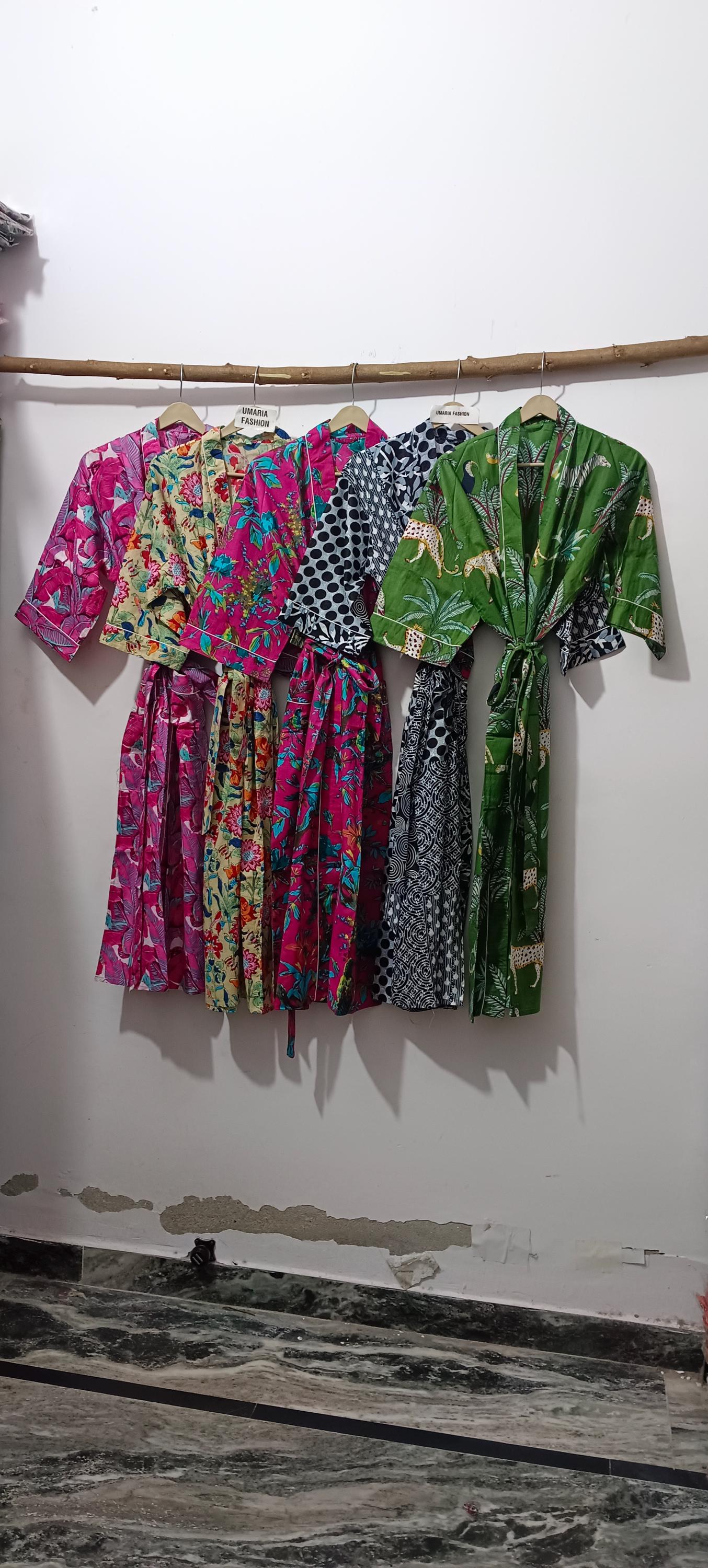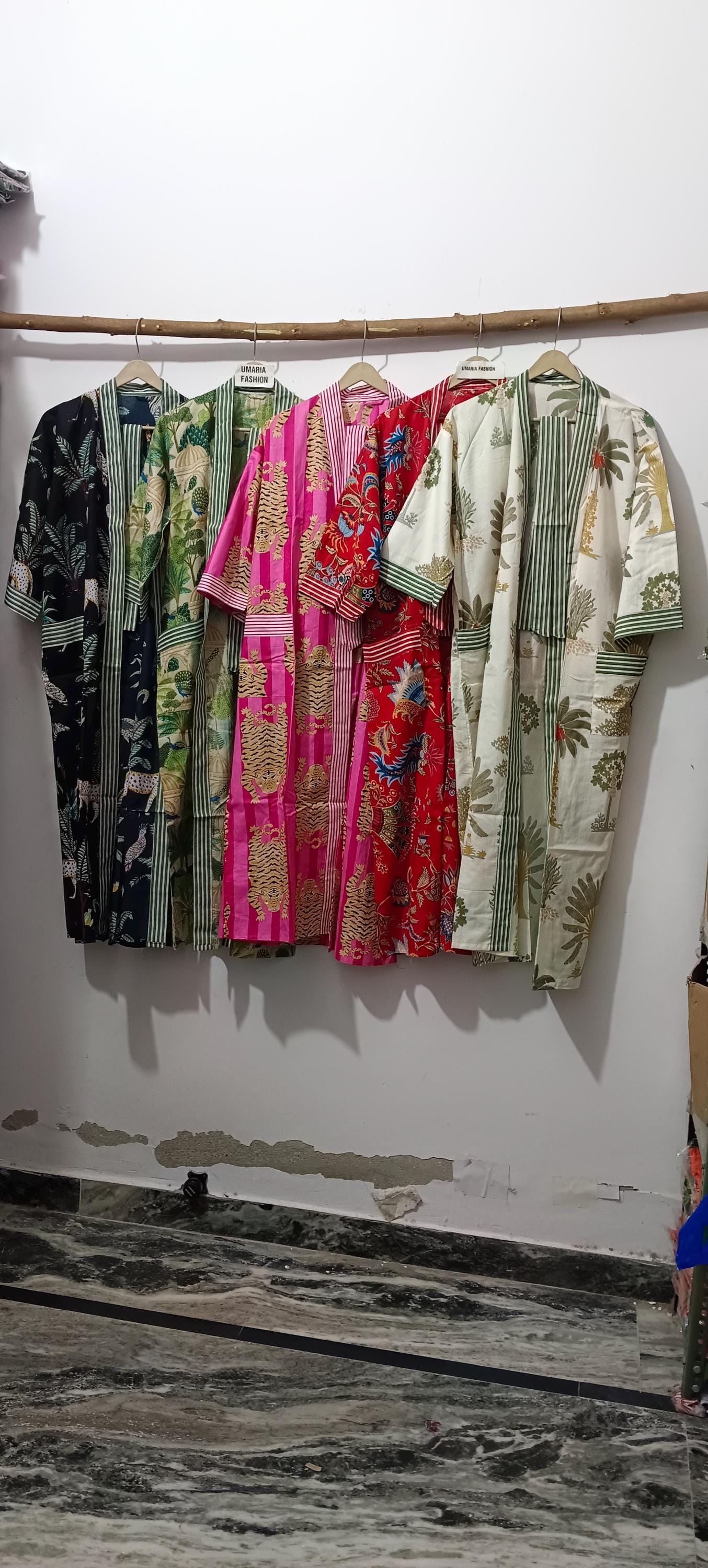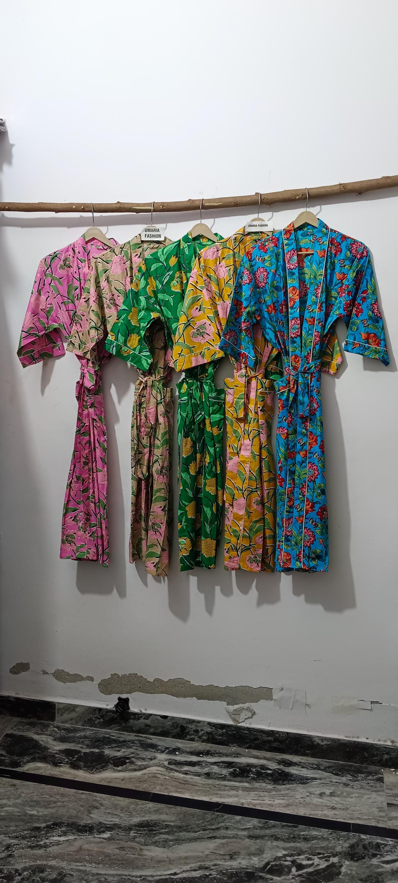 Cotton Kimono Robes Dressing Gown,Block Print Bridesmaid, Summer Nightwear,One Size