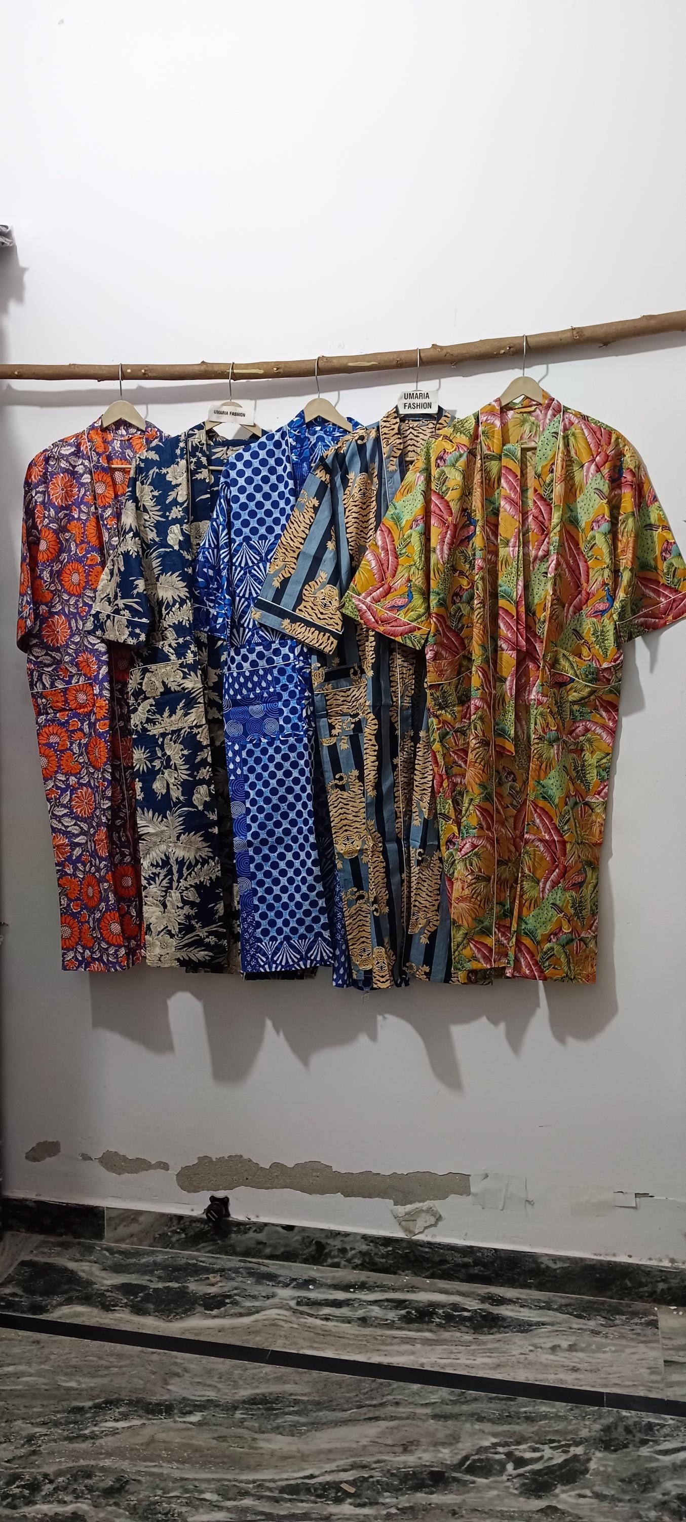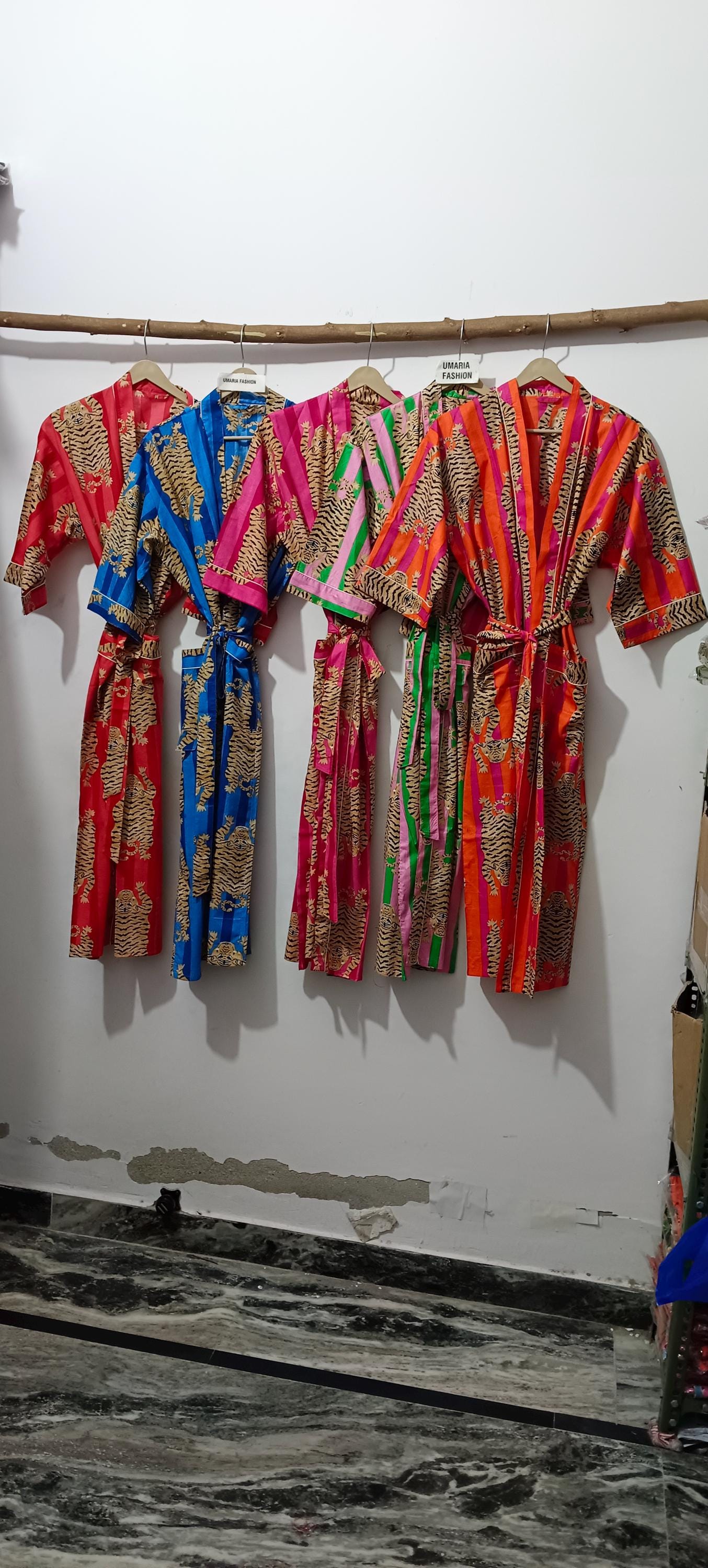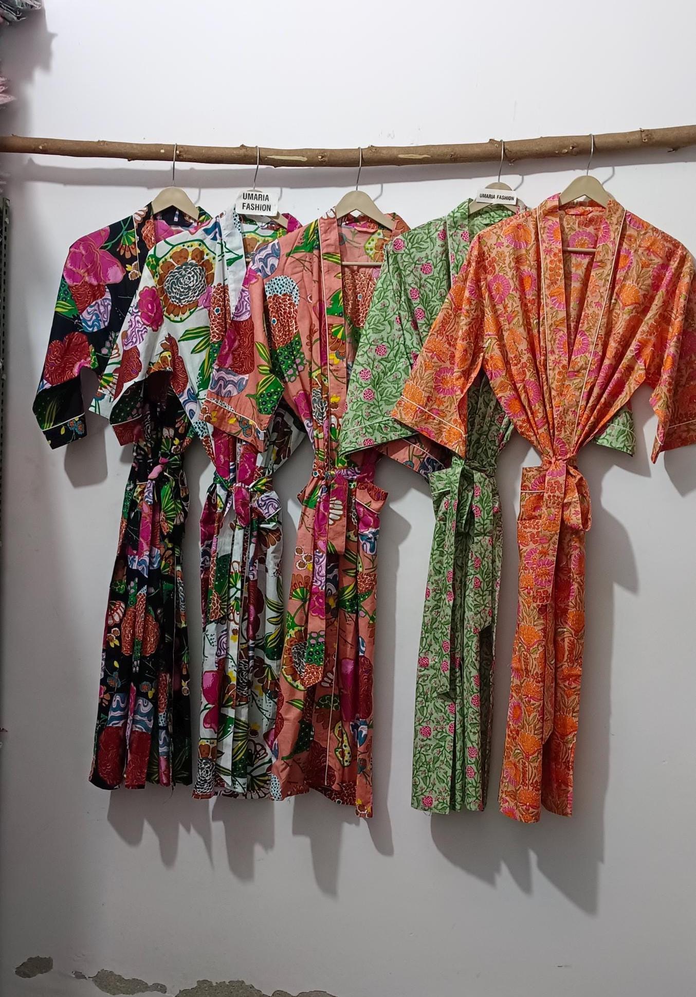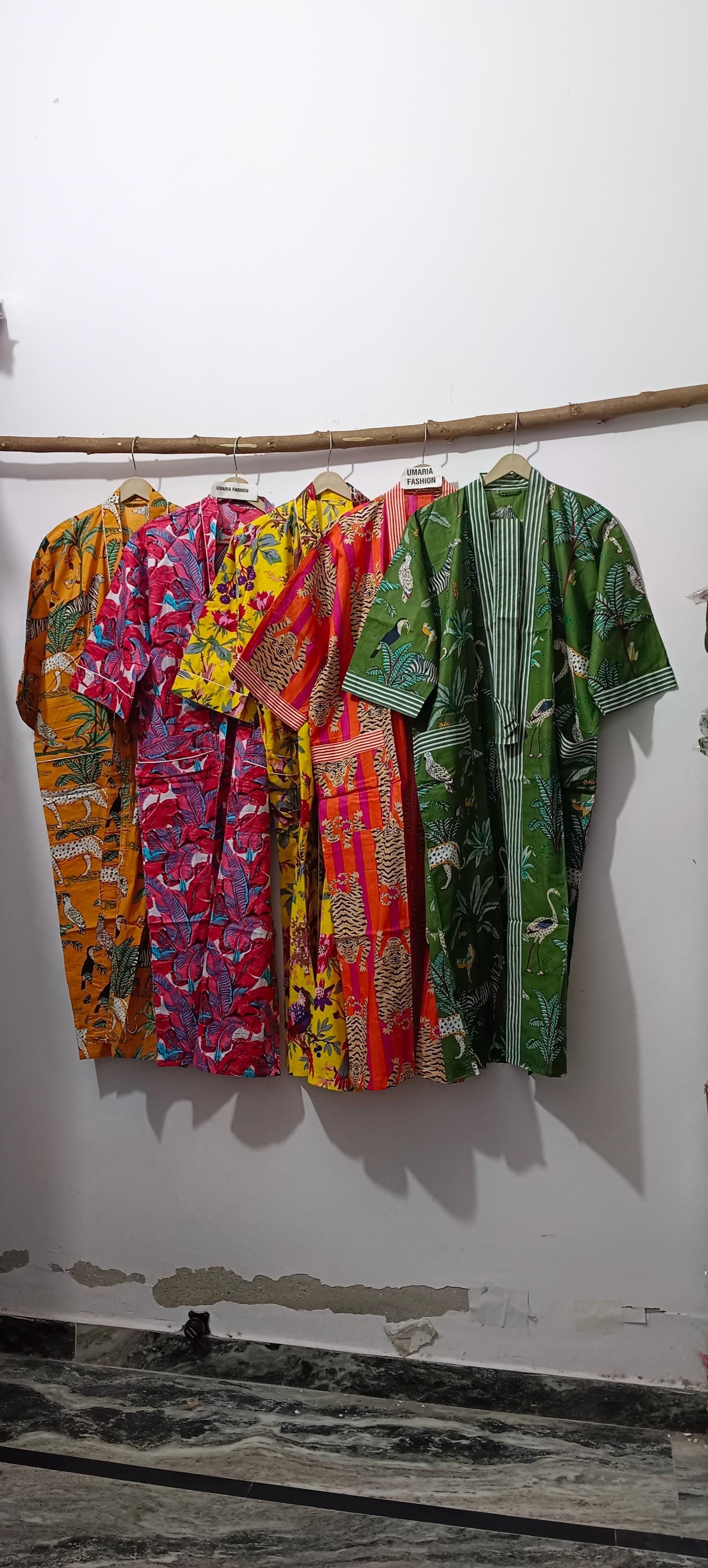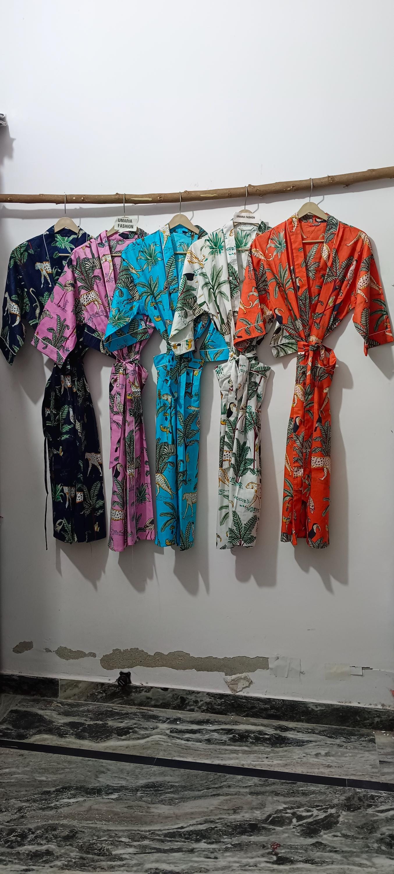 Cotton Kimono Robes Dressing Gown,Block Print Bridesmaid, Summer Nightwear,One Size