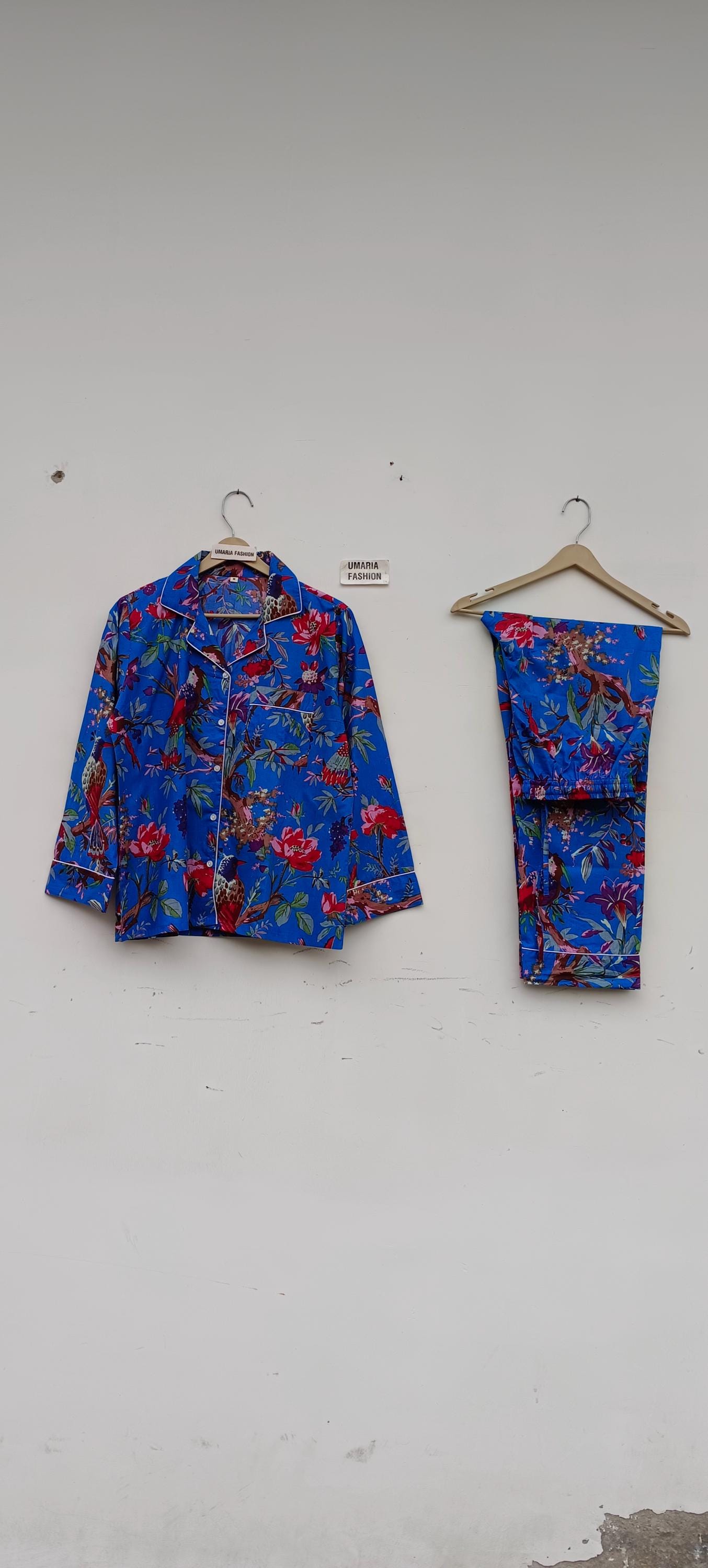 ❤ Indian Cotton Pajama Set, Cotton Hand Block Print Pajama Set, Light Ultra-Soft Night Dress for Women, Cotton Pants Shirt Set, Nightwear Set