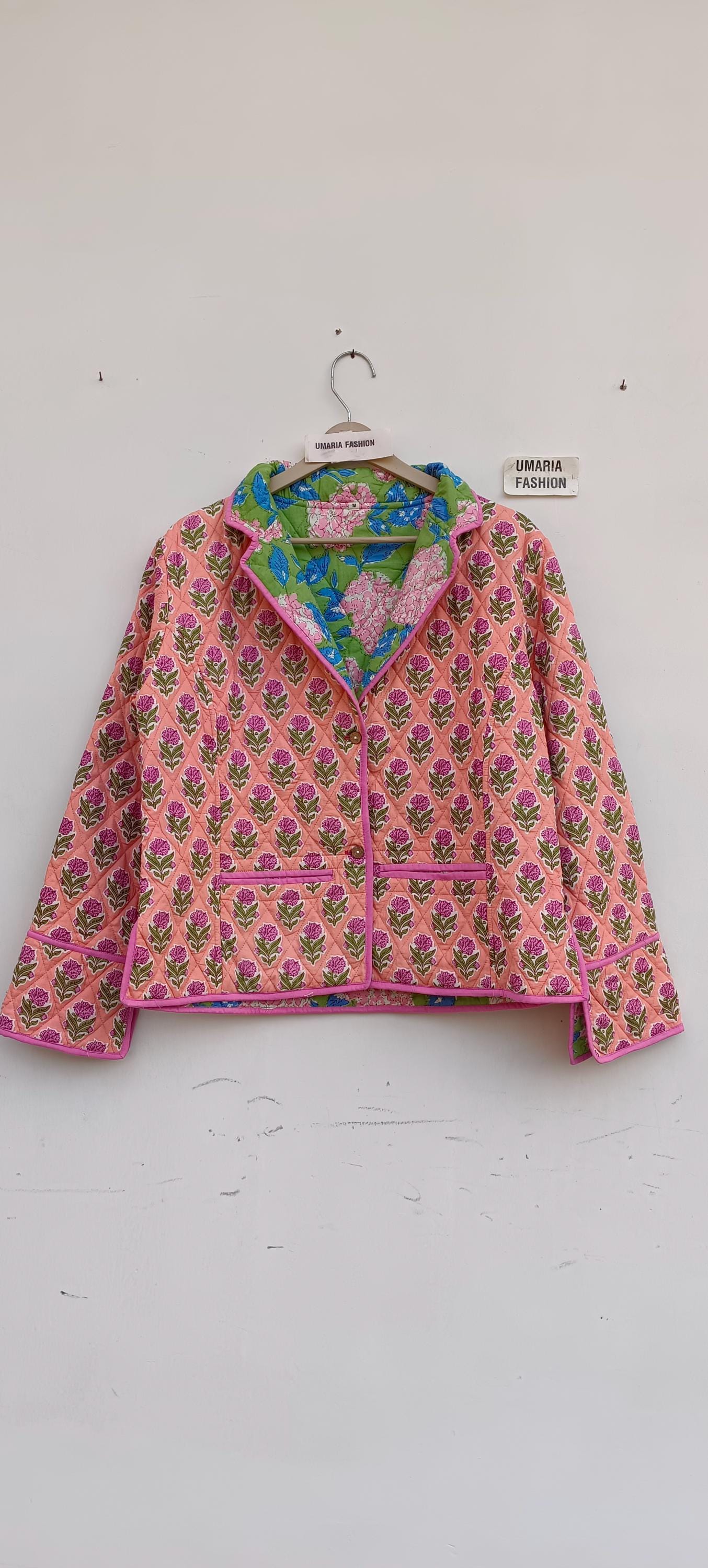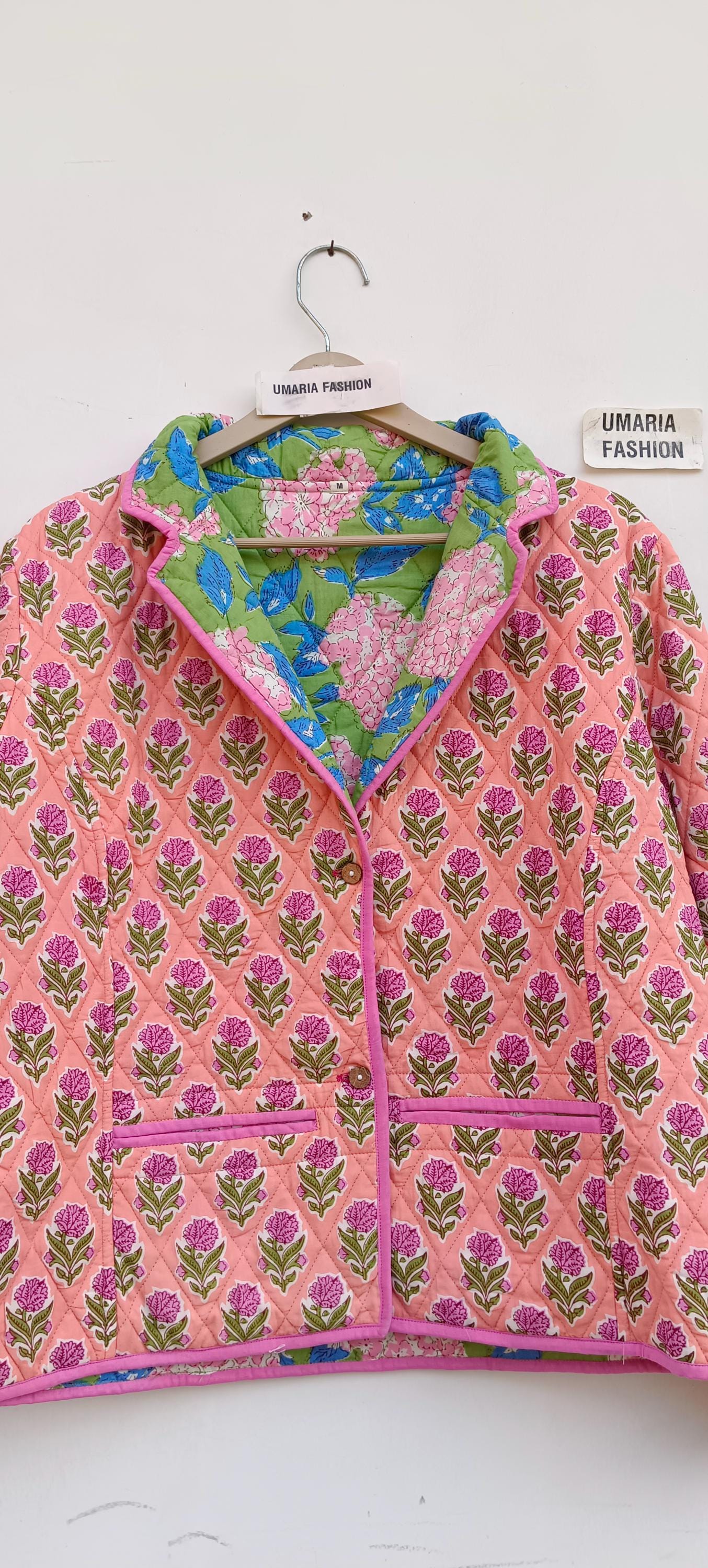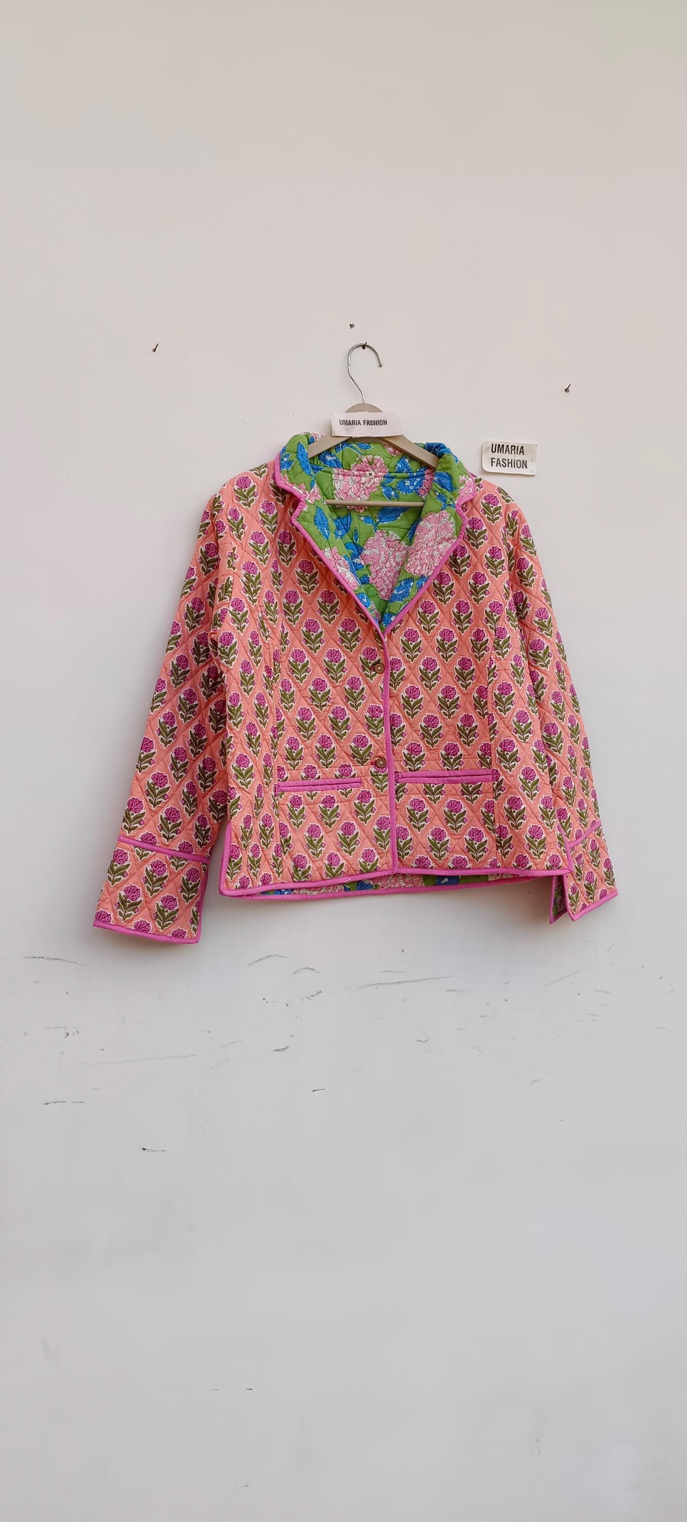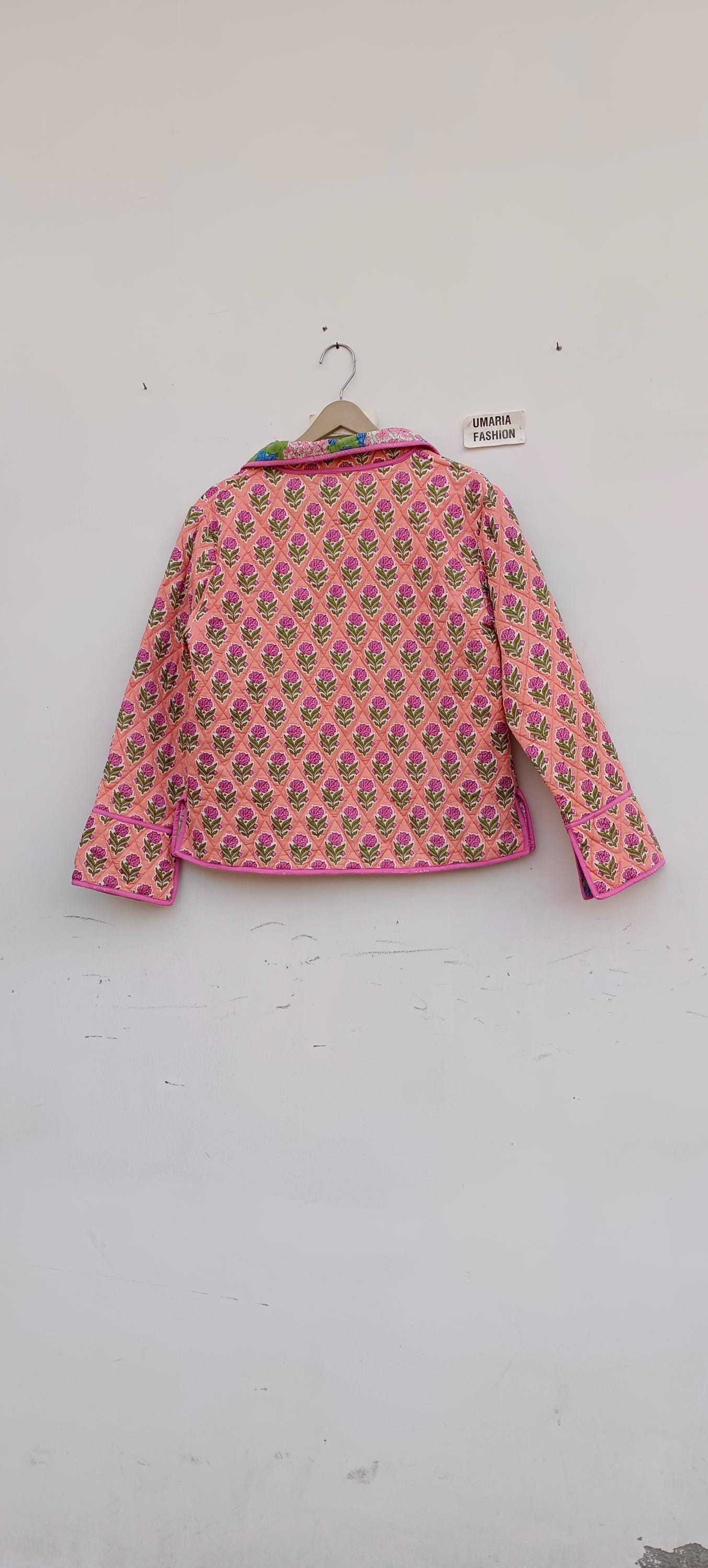 Cotton Quilted Jacket Women Wear Front Open Kimono Stripe piping HandMade Vintage Quilted Jacket , Coats , New Style, Boho Green Rainbow FREE SHIPPING/EXPRESS SHIPPING