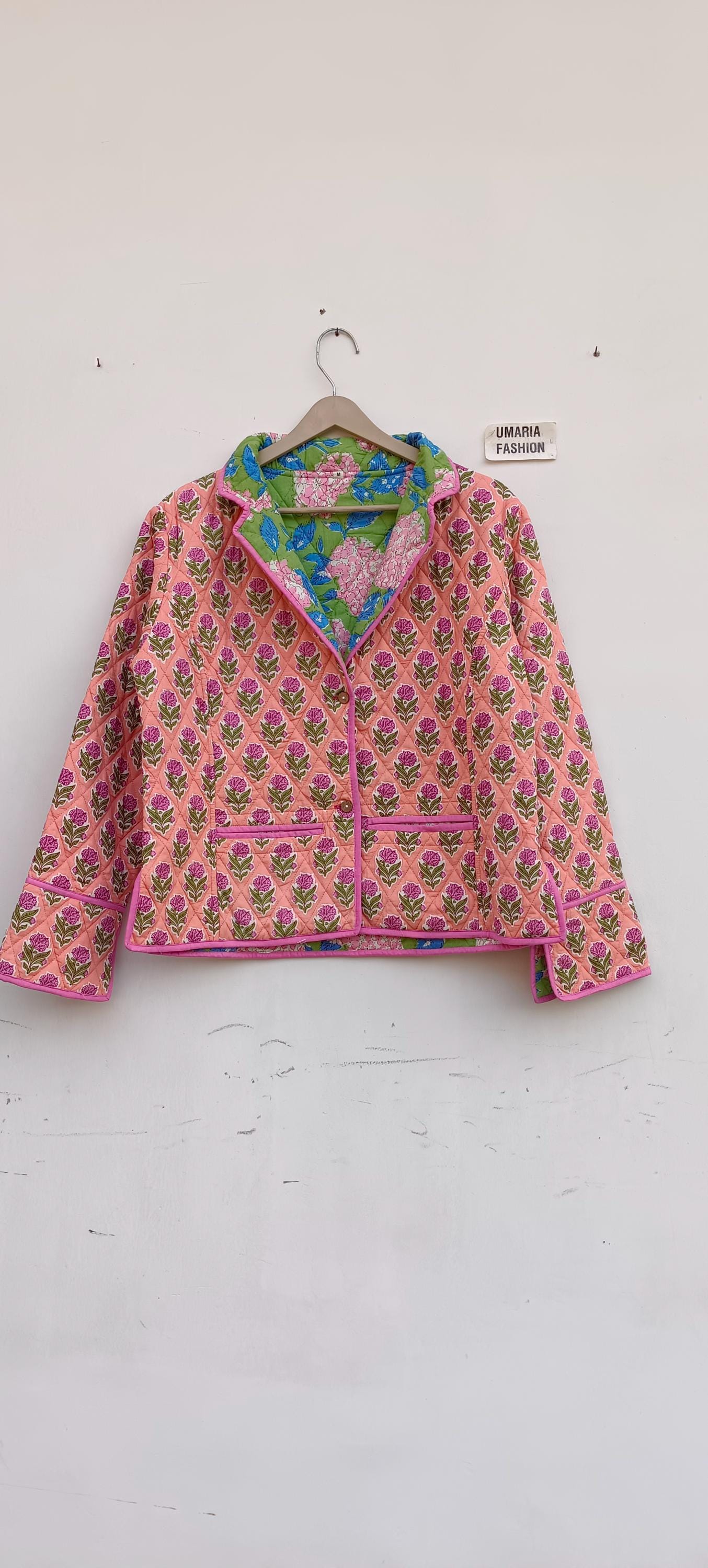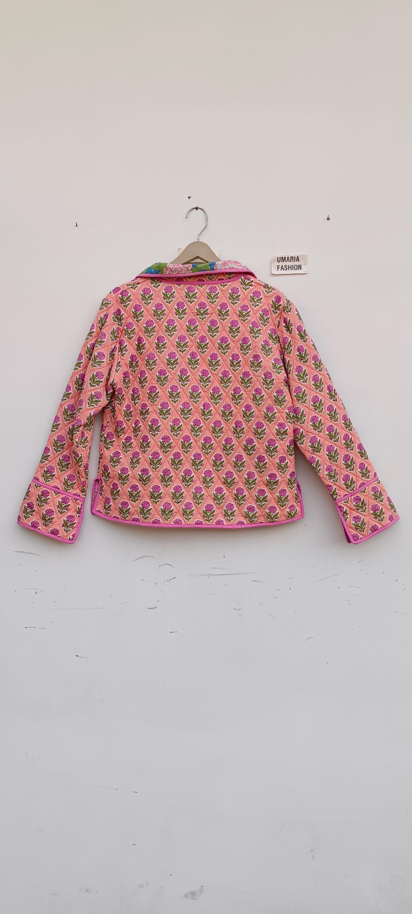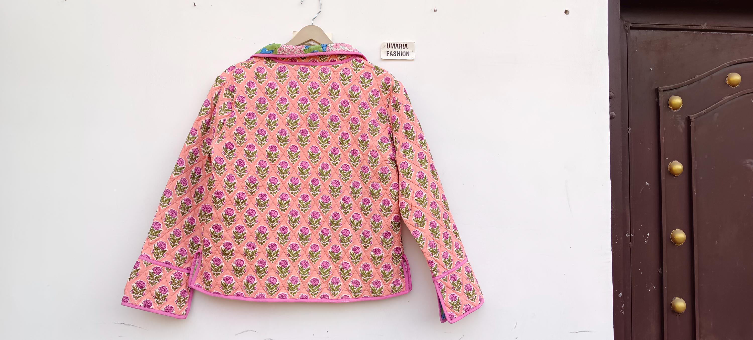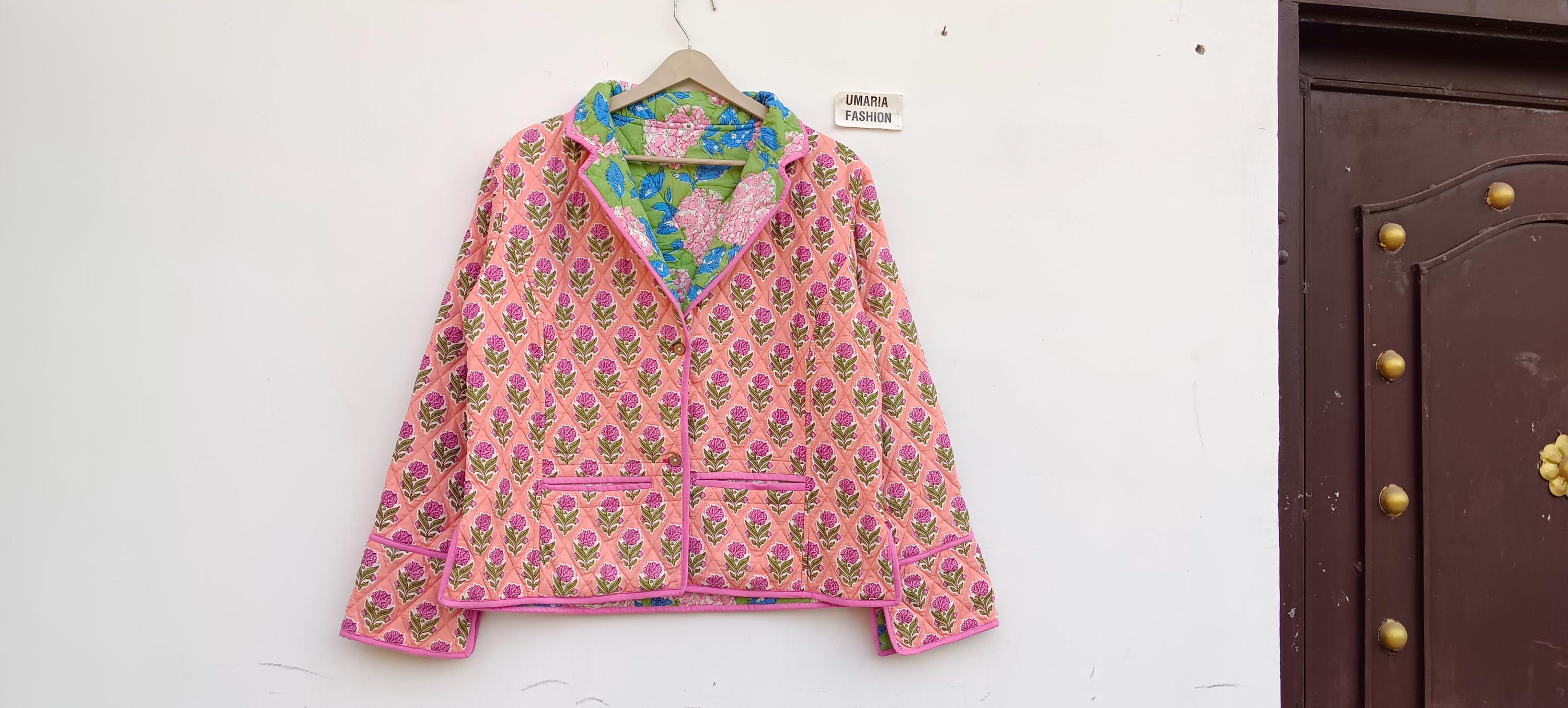Cotton Quilted Jacket Women Wear Front Open Kimono Stripe piping HandMade Vintage Quilted Jacket , Coats , New Style, Boho Green Rainbow FREE SHIPPING/EXPRESS SHIPPING
