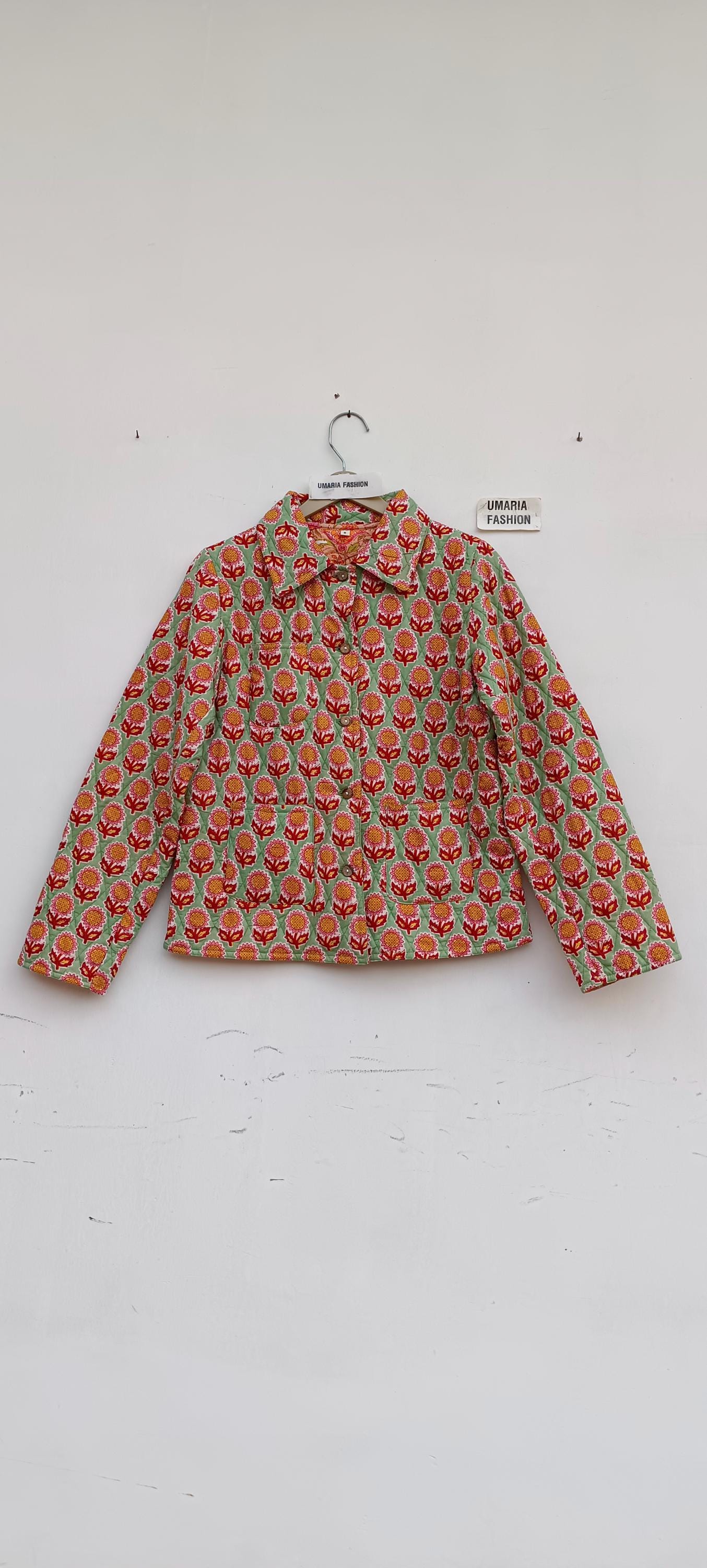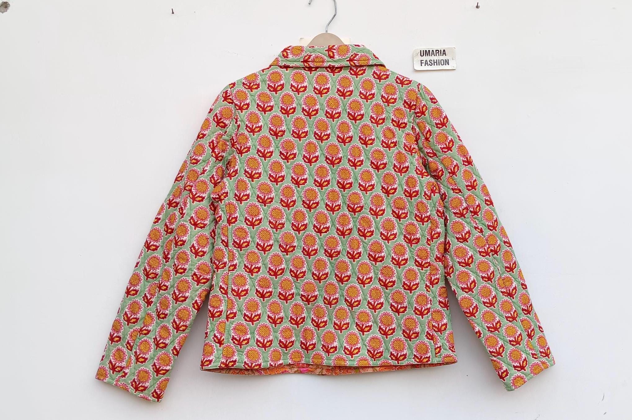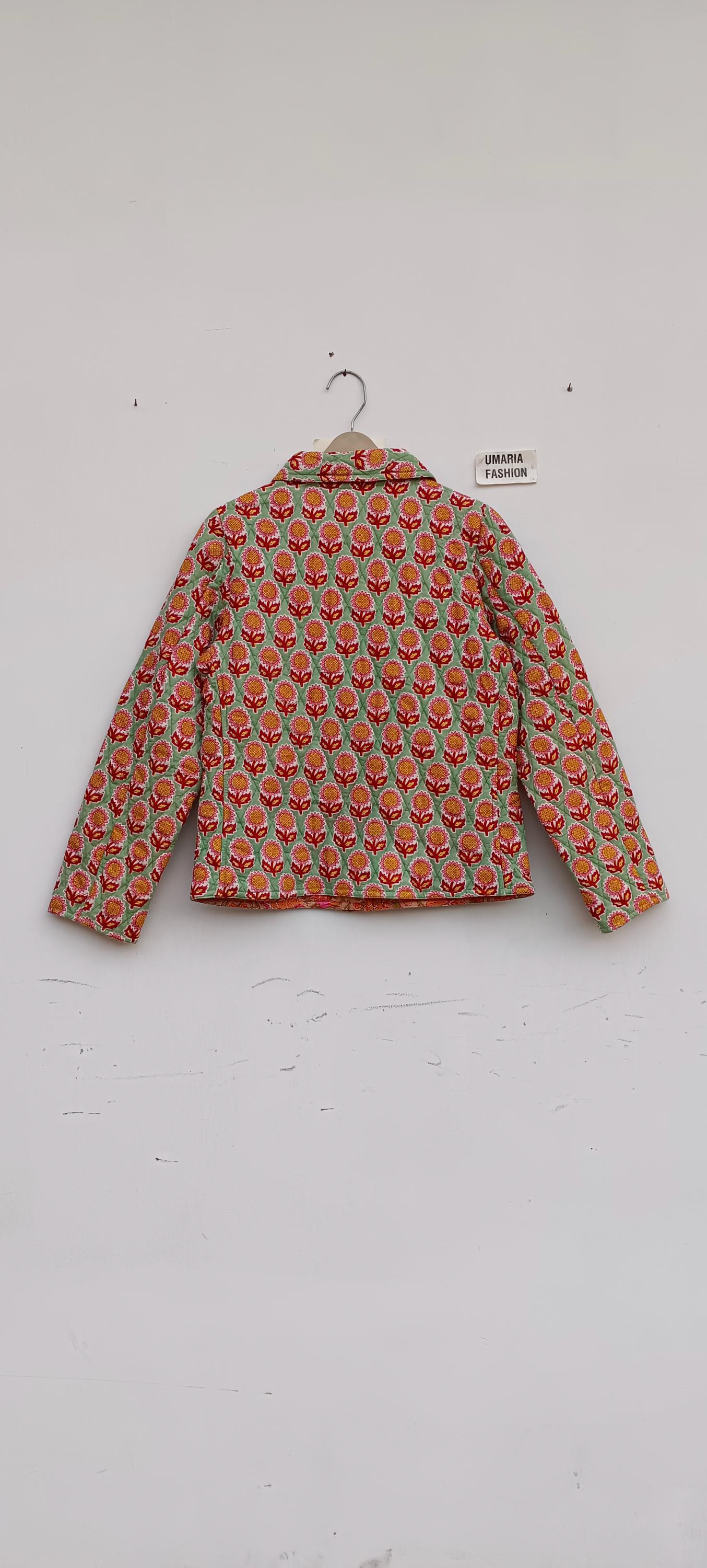Cotton Quilted Jacket Women Wear Front Open Kimono Stripe piping HandMade Vintage Quilted Jacket , Coats , New Style, Boho Green Rainbow FREE SHIPPING/EXPRESS SHIPPING
