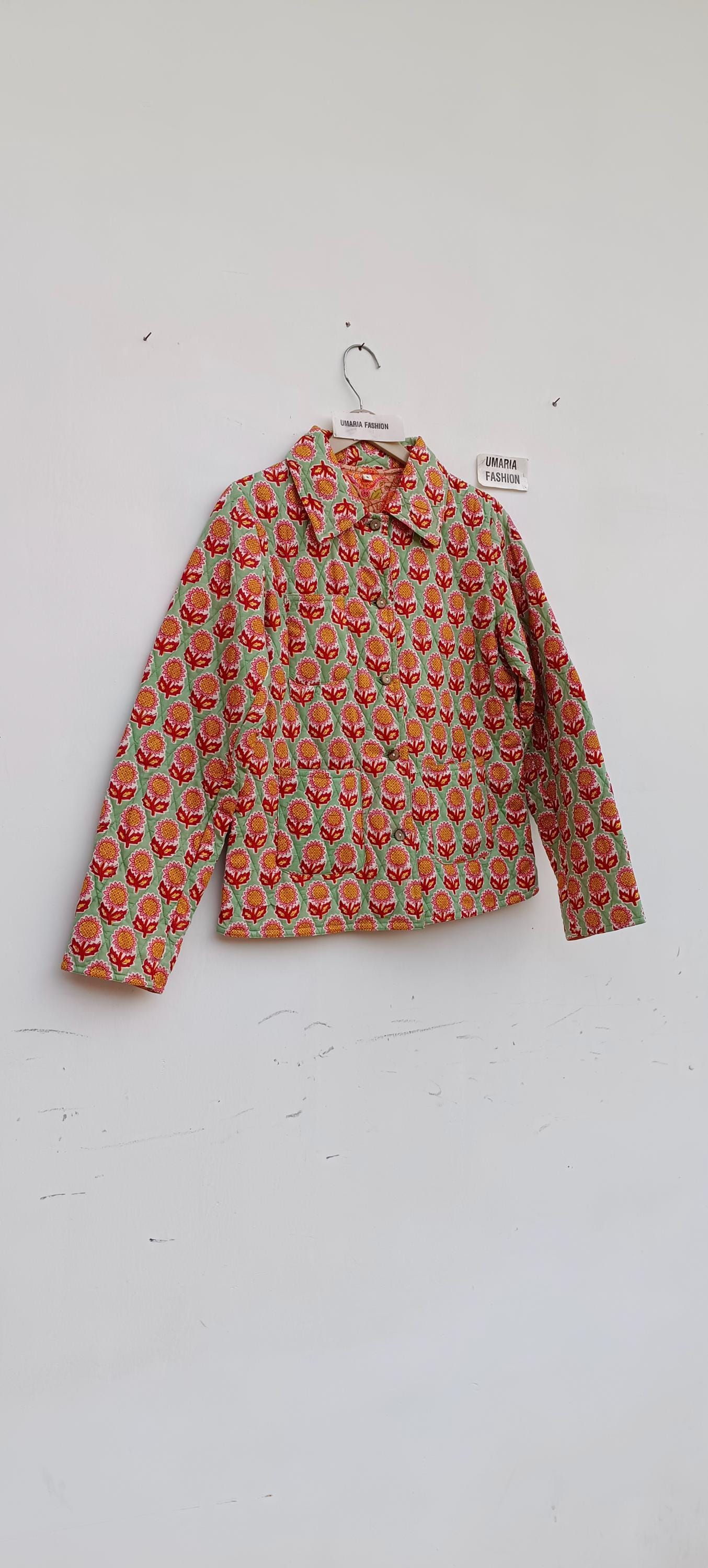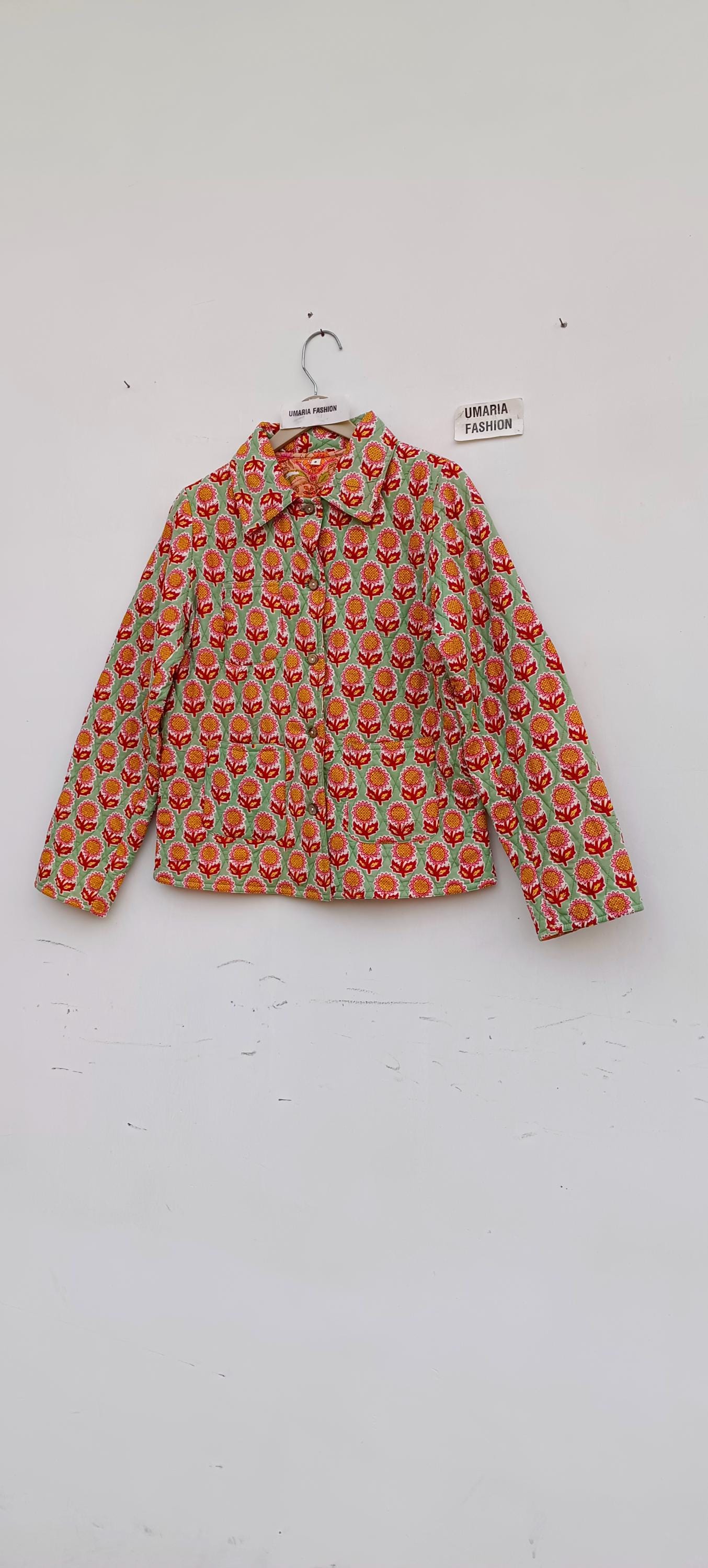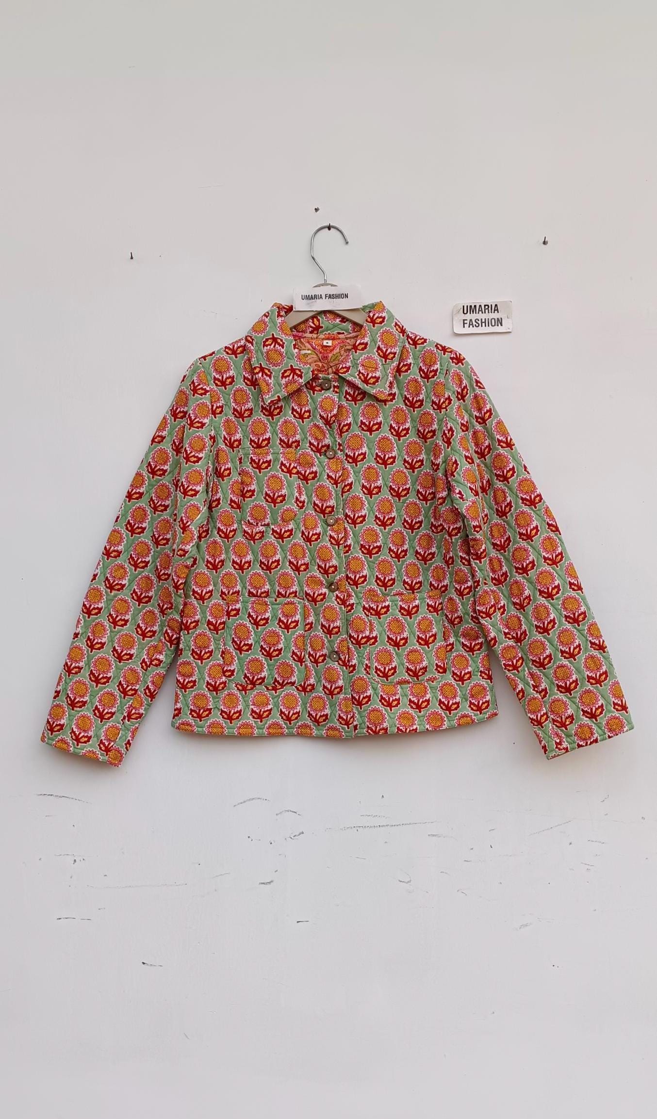 Cotton Quilted Jacket Women Wear Front Open Kimono Stripe piping HandMade Vintage Quilted Jacket , Coats , New Style, Boho Green Rainbow FREE SHIPPING/EXPRESS SHIPPING