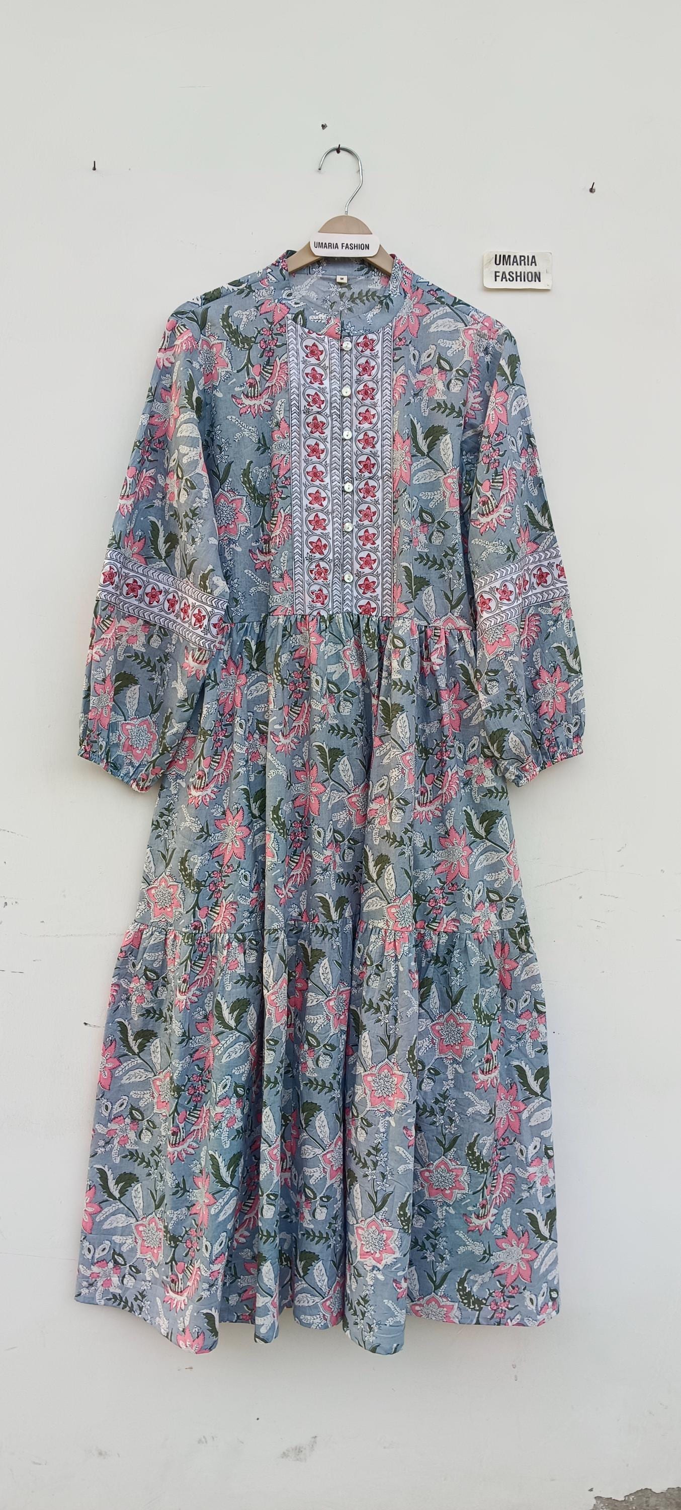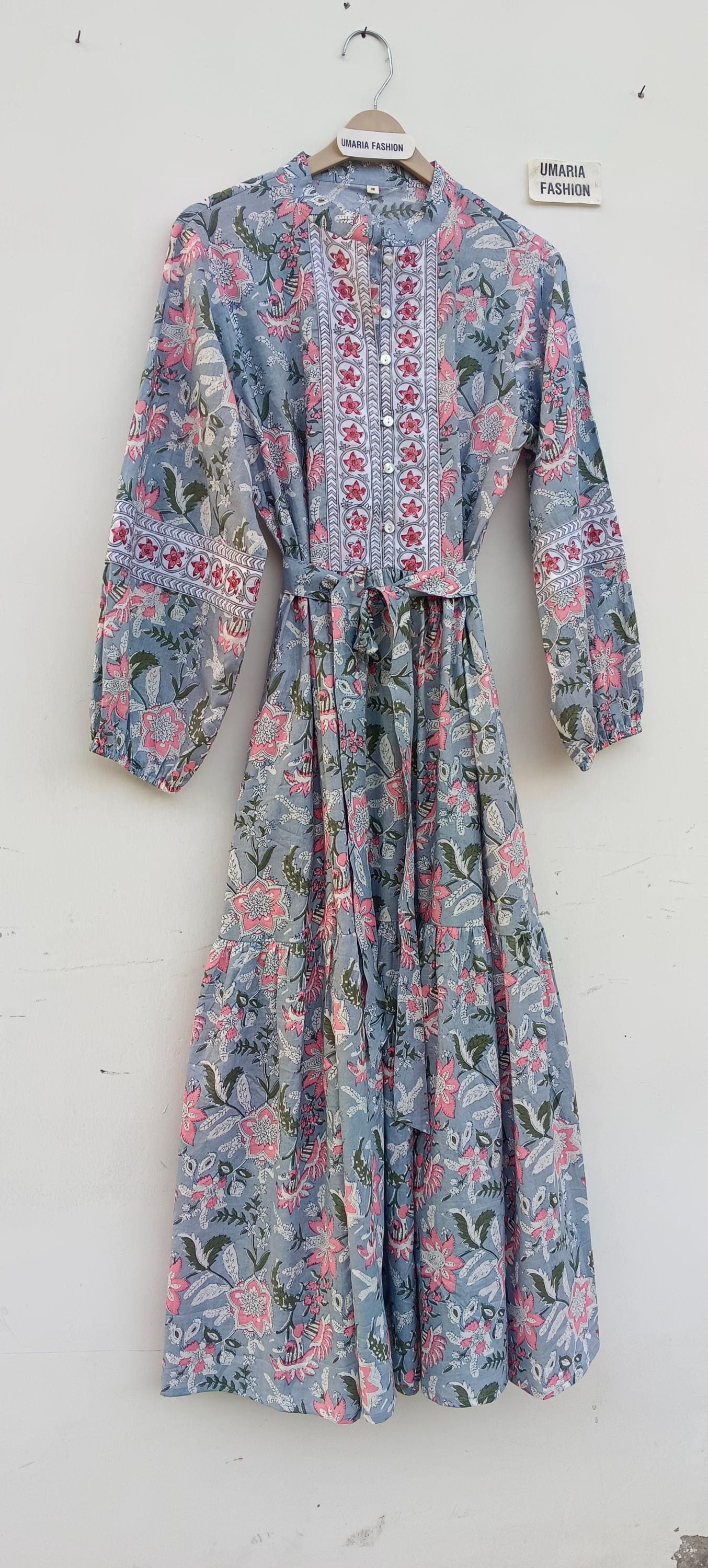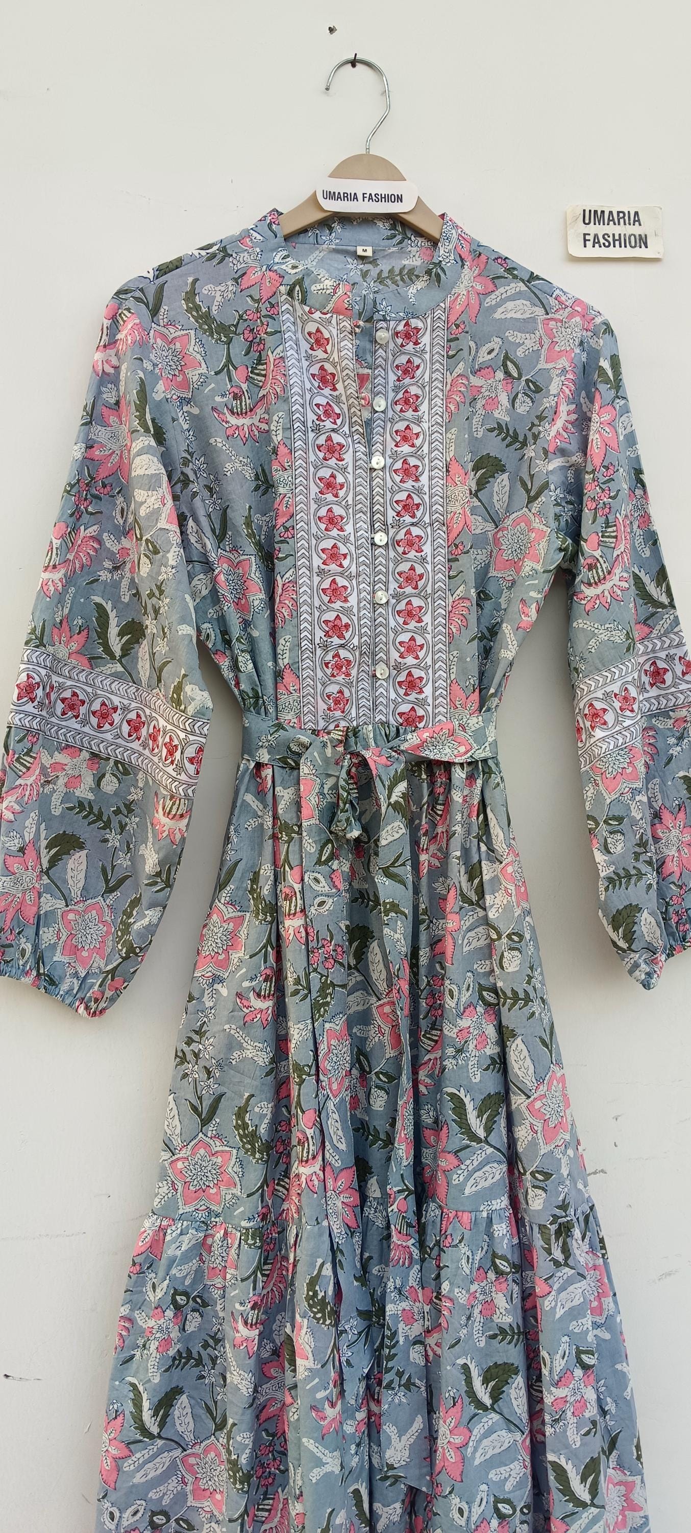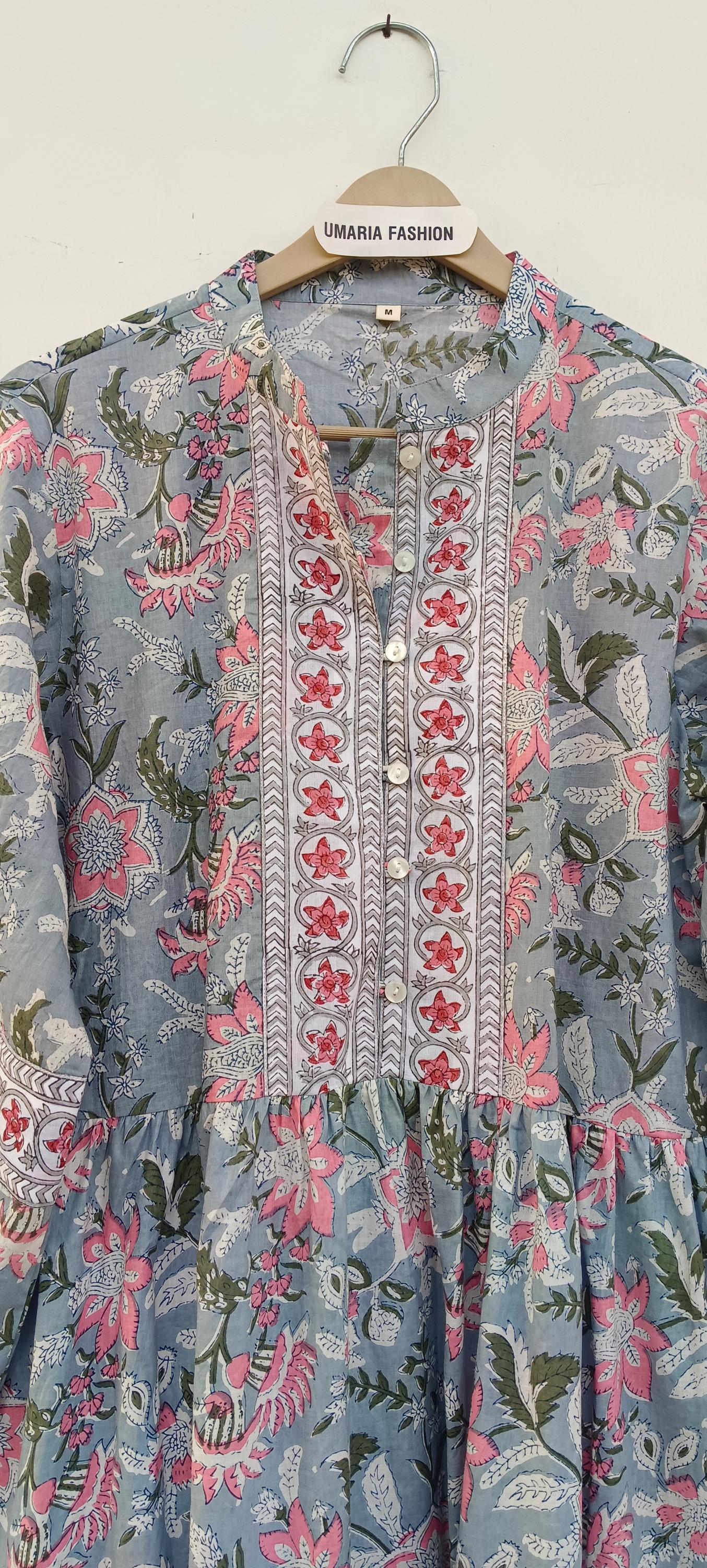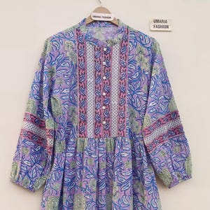 Handmade Floral Cotton Midi Dress: Bohemian Summer Tunic, Indian Dress,