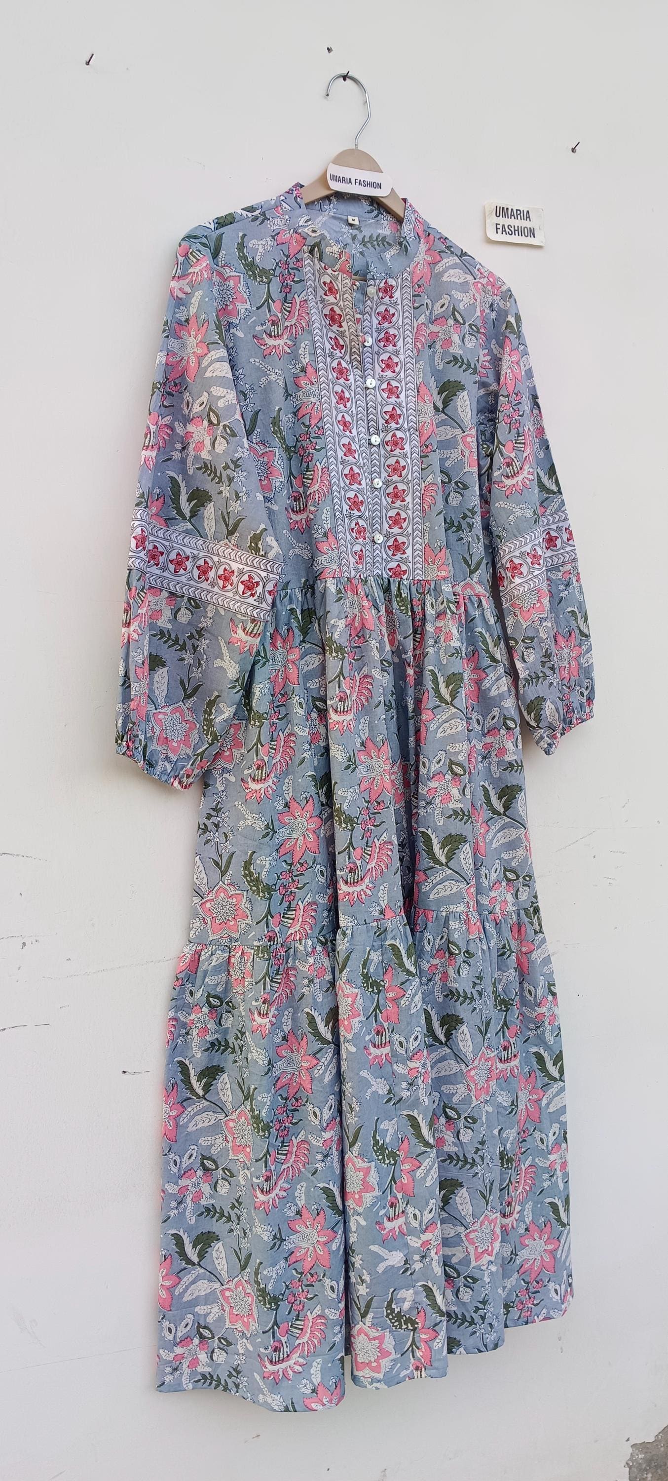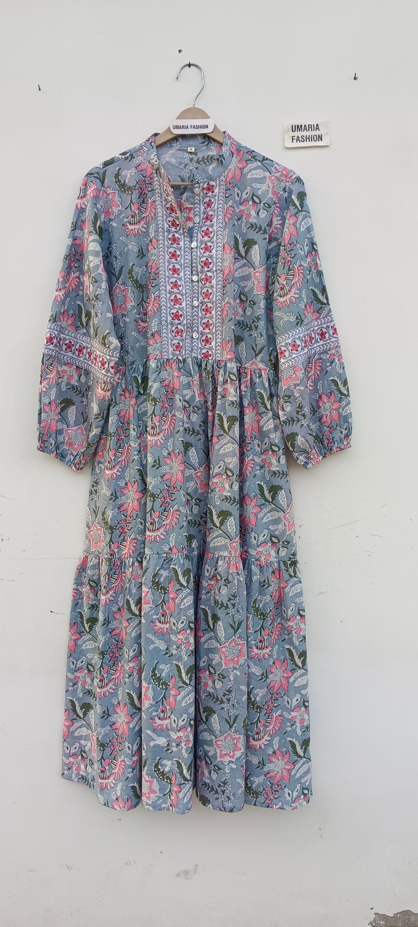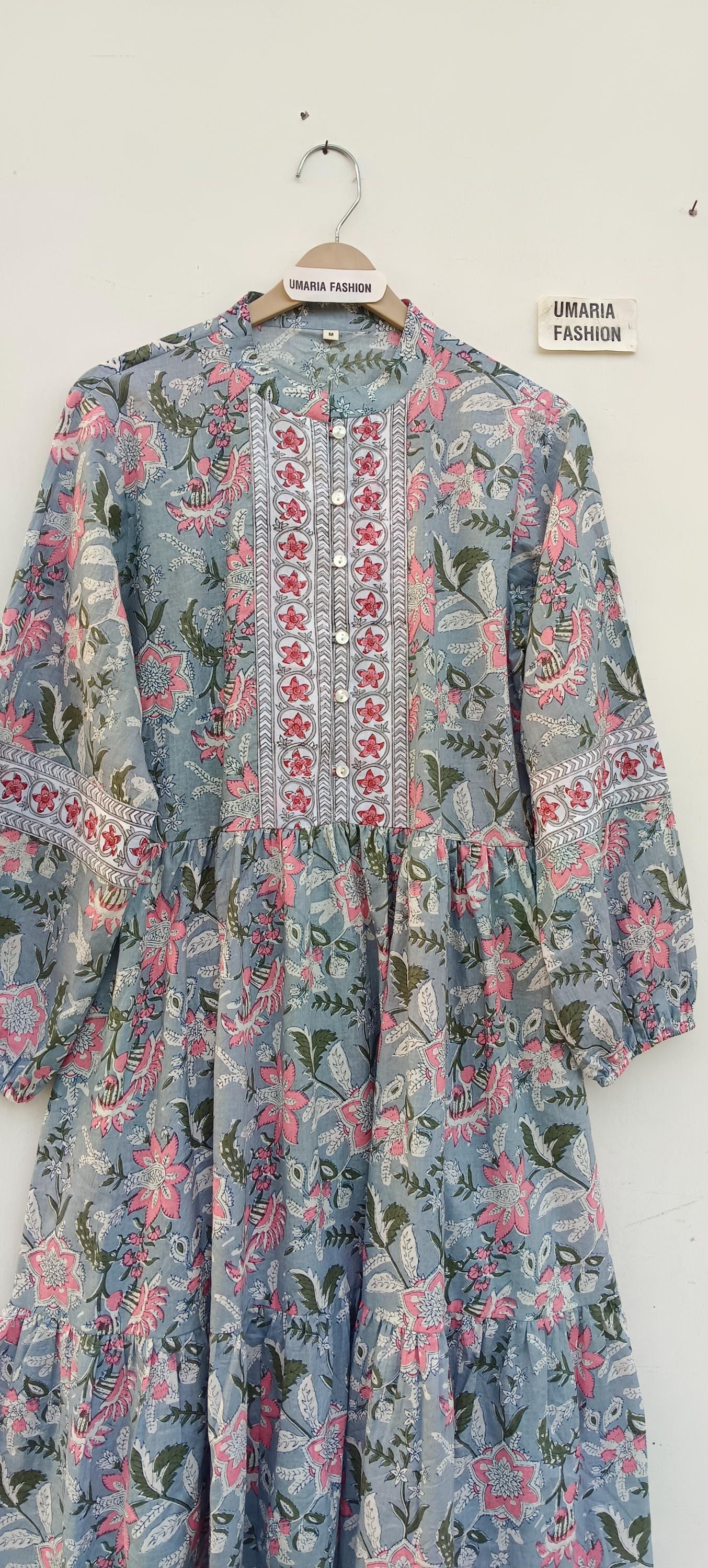 Handmade Floral Cotton Midi Dress: Bohemian Summer Tunic, Indian Dress,