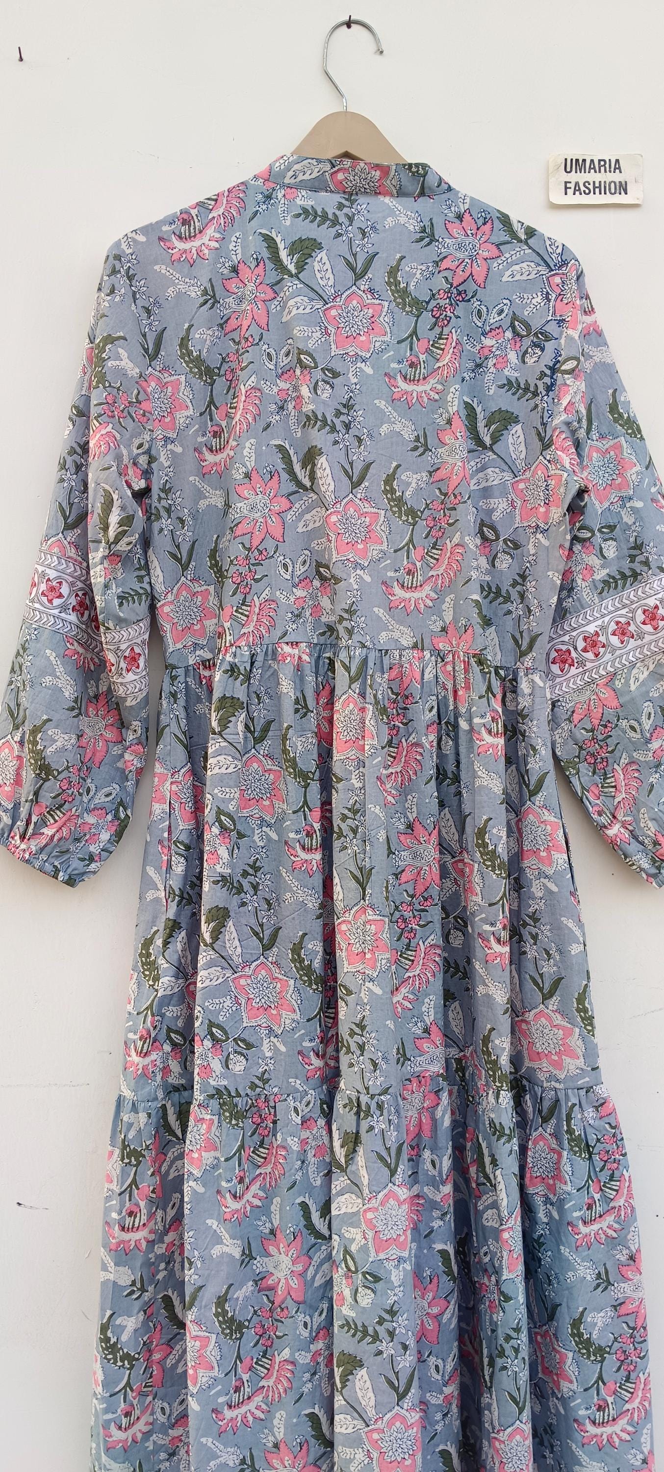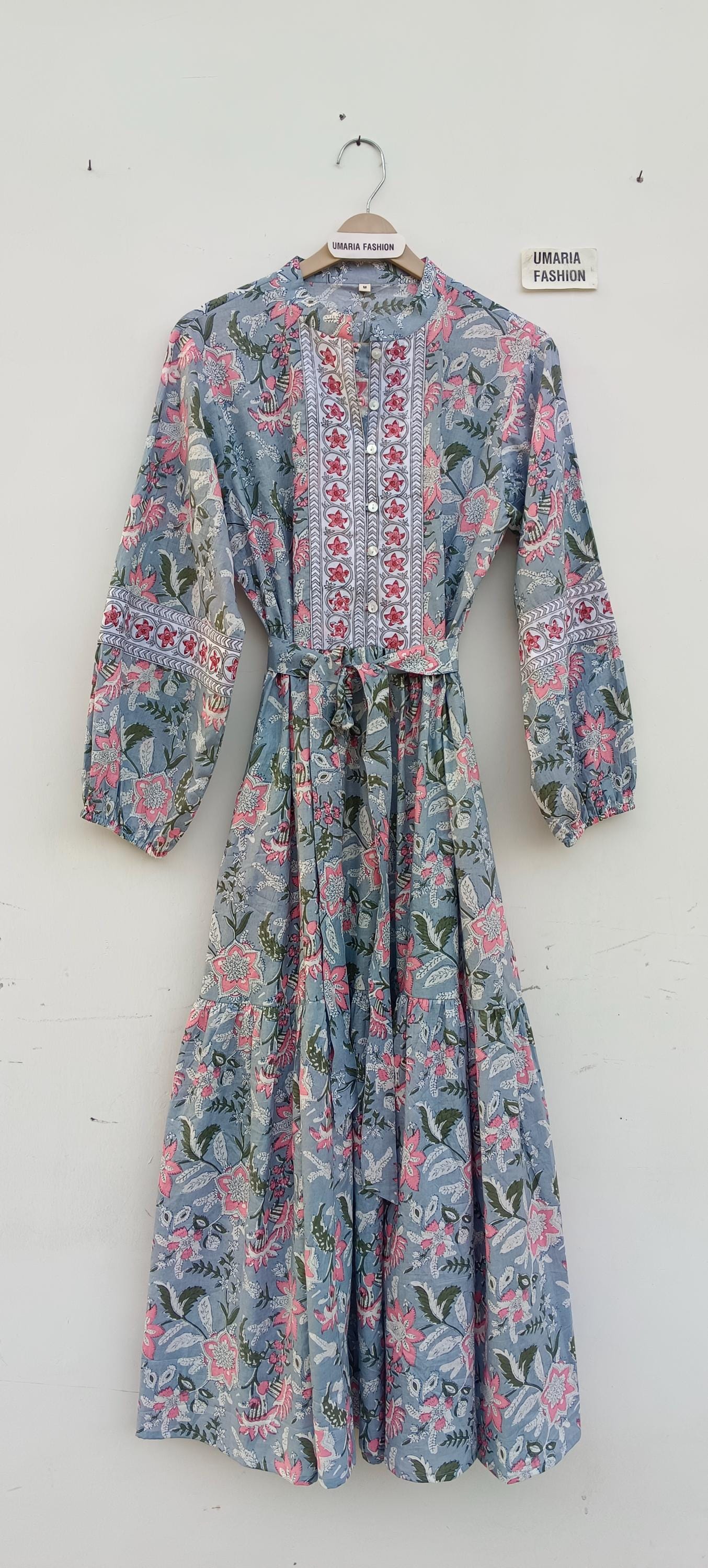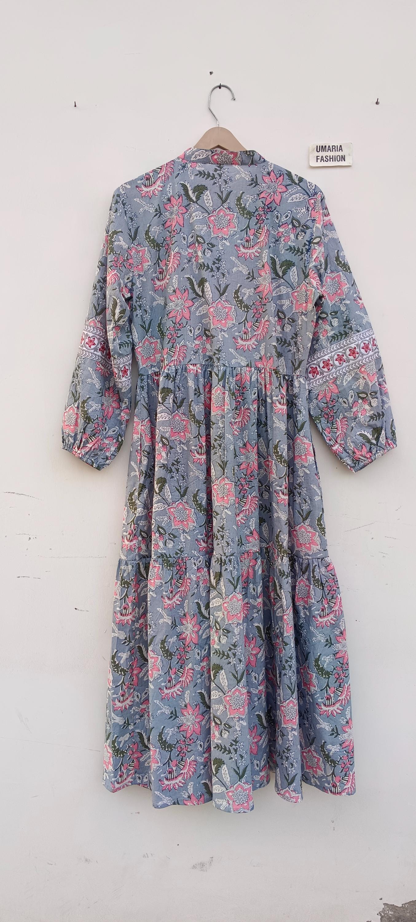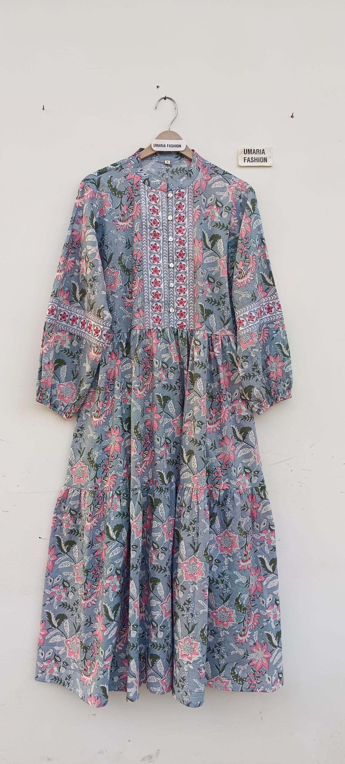 Handmade Floral Cotton Midi Dress: Bohemian Summer Tunic, Indian Dress,