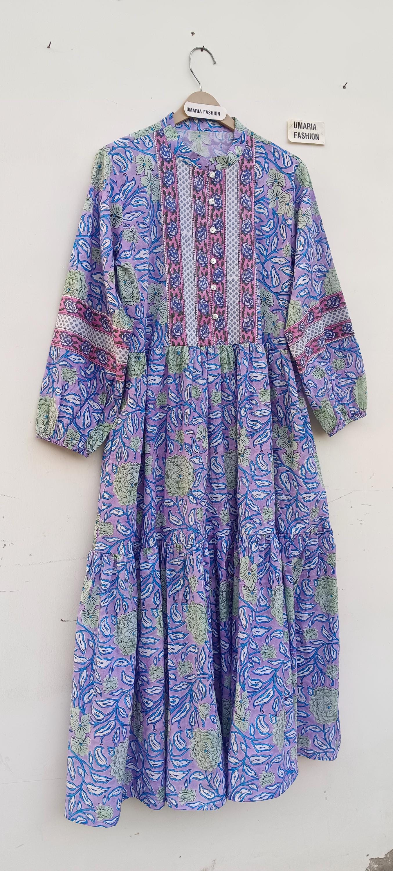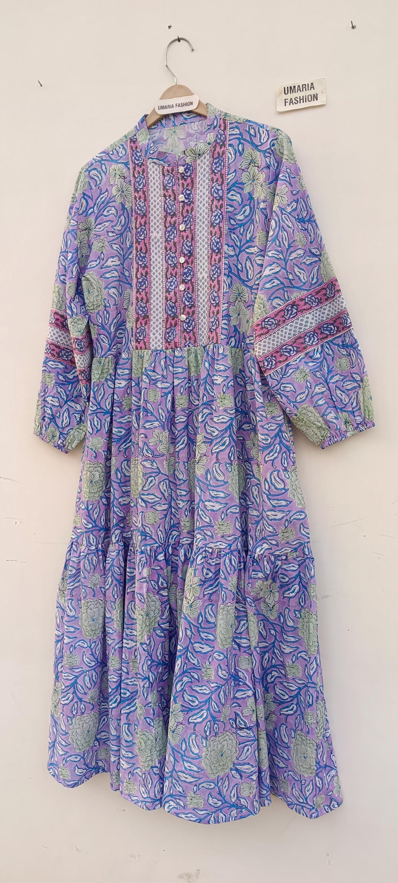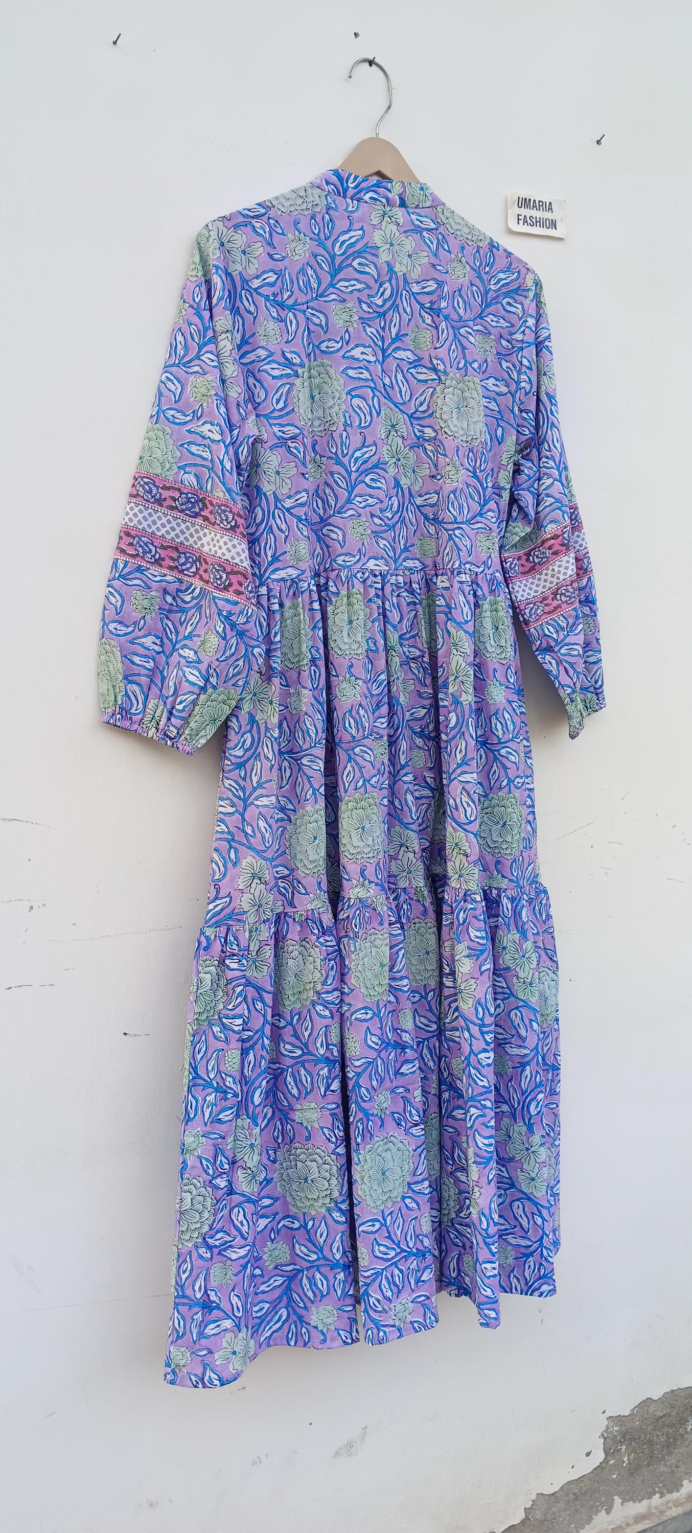 Handmade Floral Cotton Midi Dress: Bohemian Summer Tunic