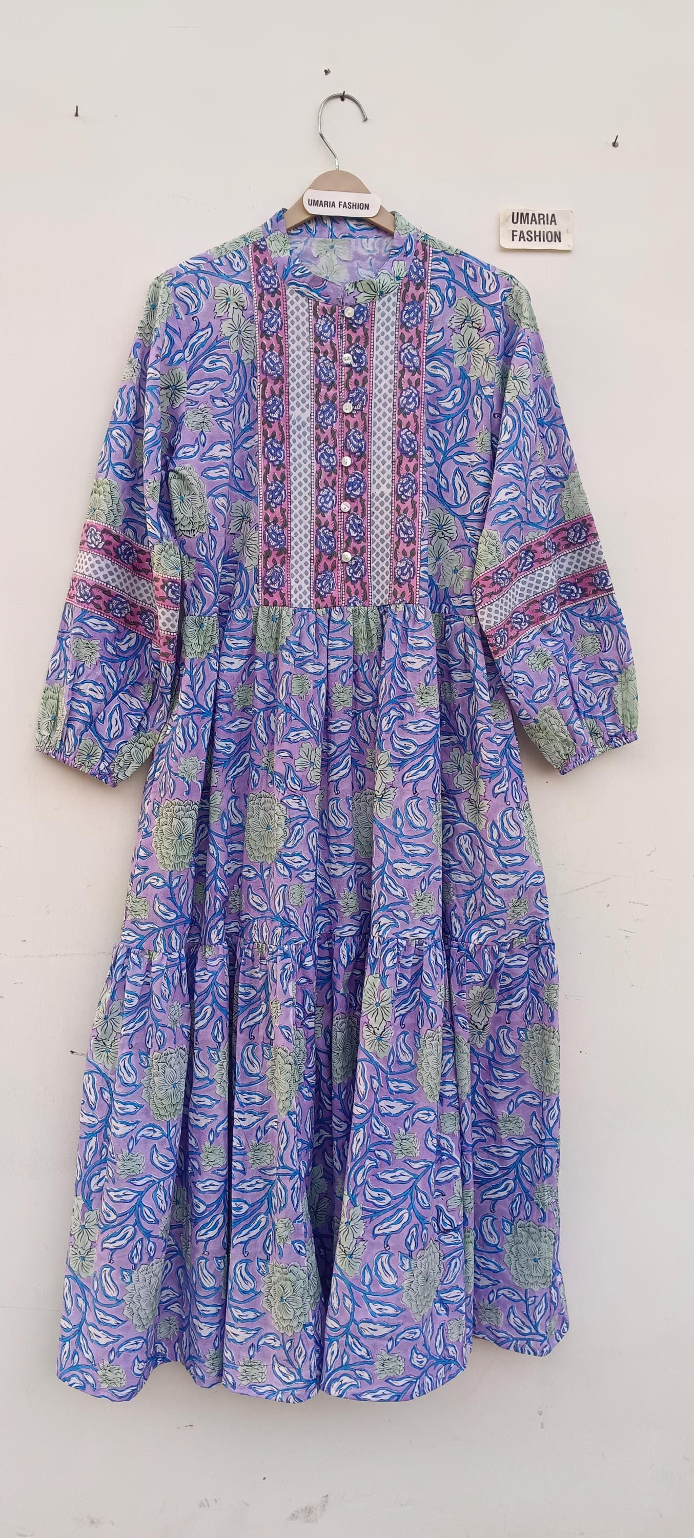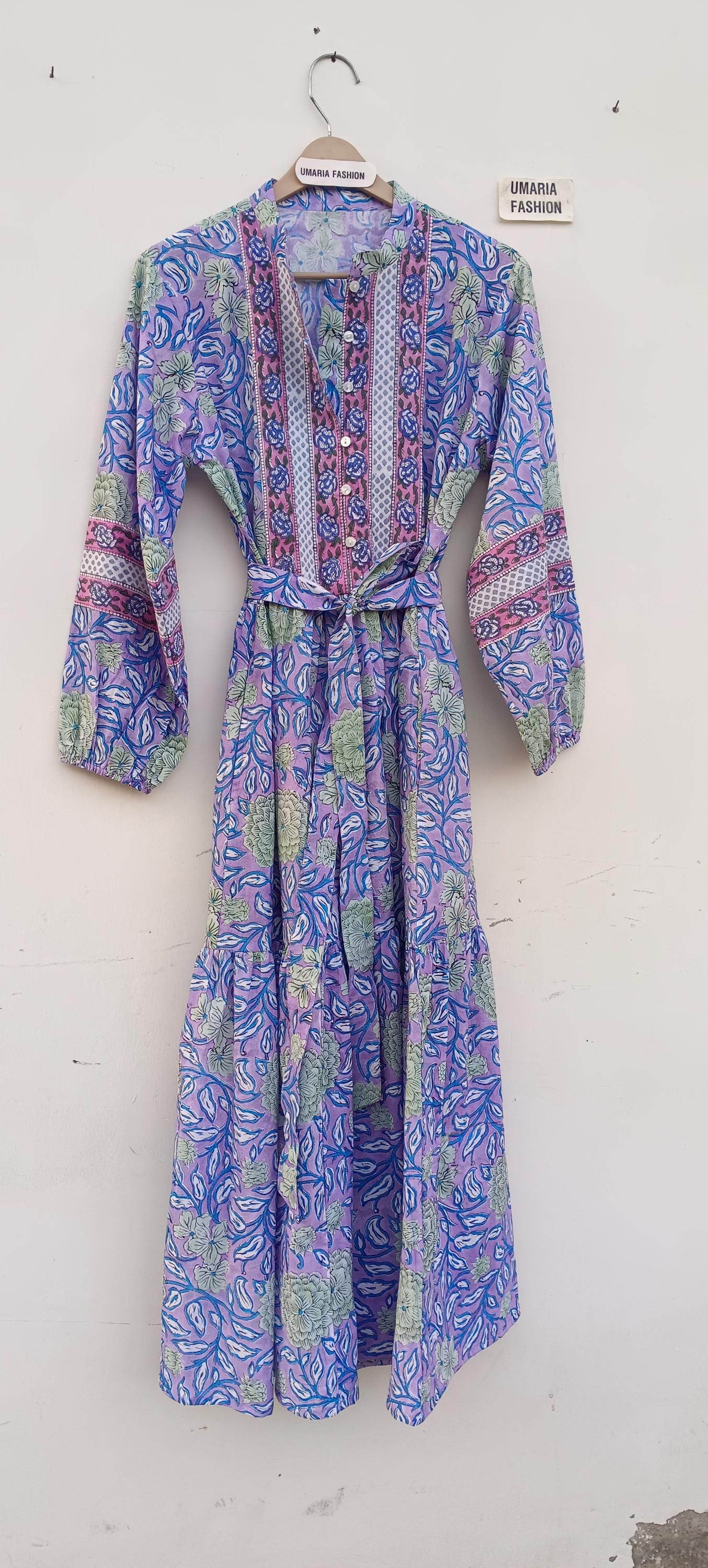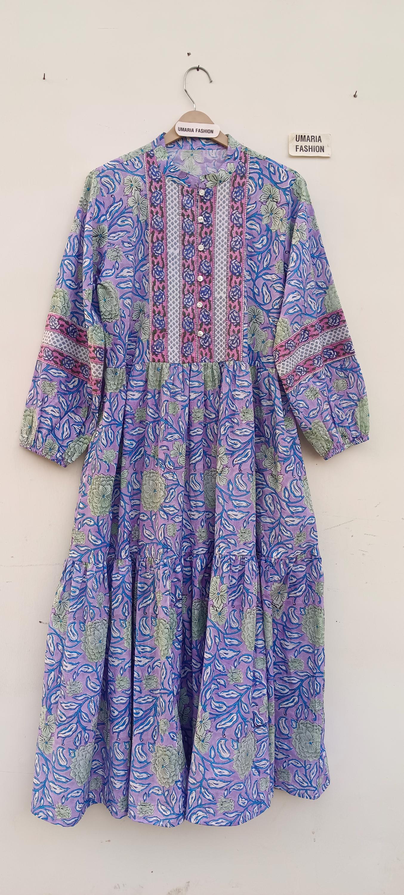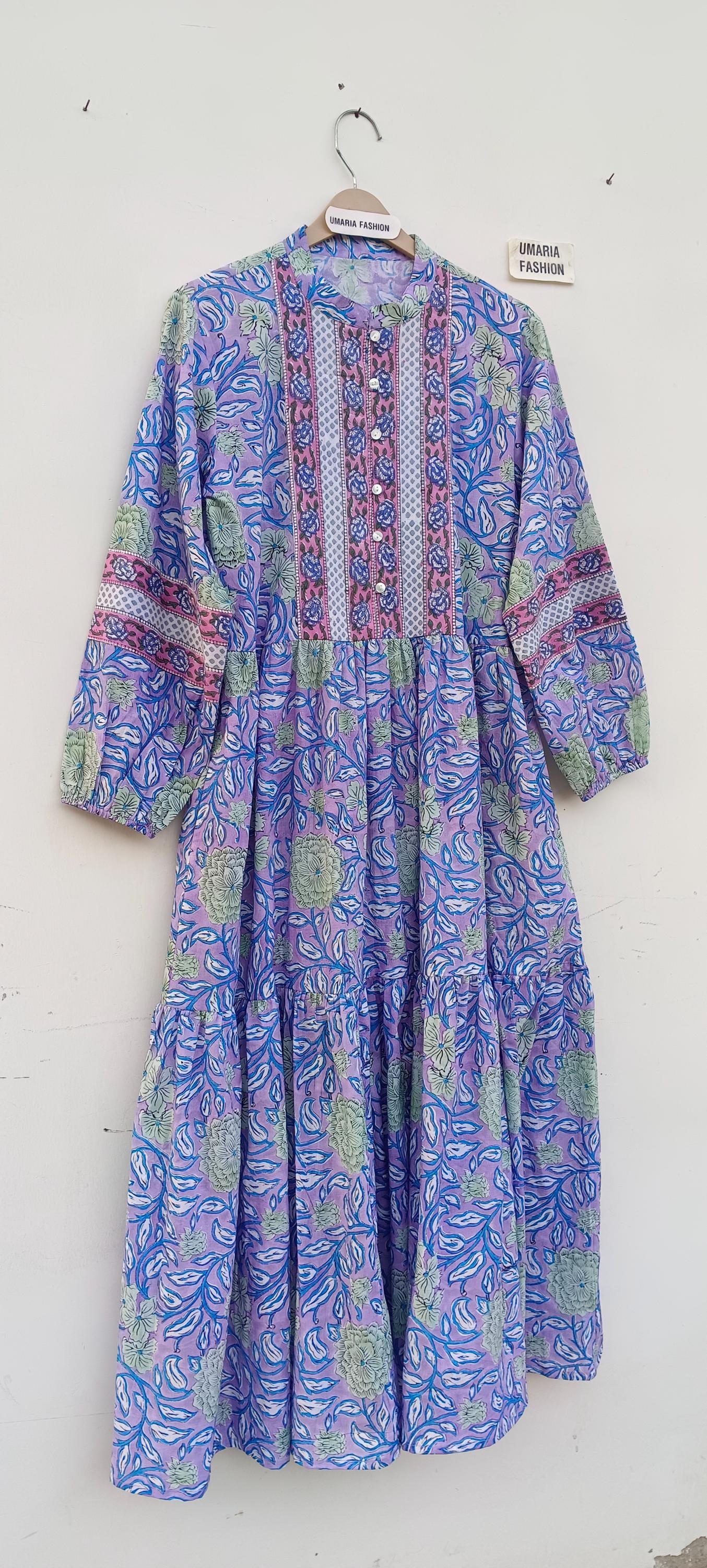 Handmade Floral Cotton Midi Dress: Bohemian Summer Tunic